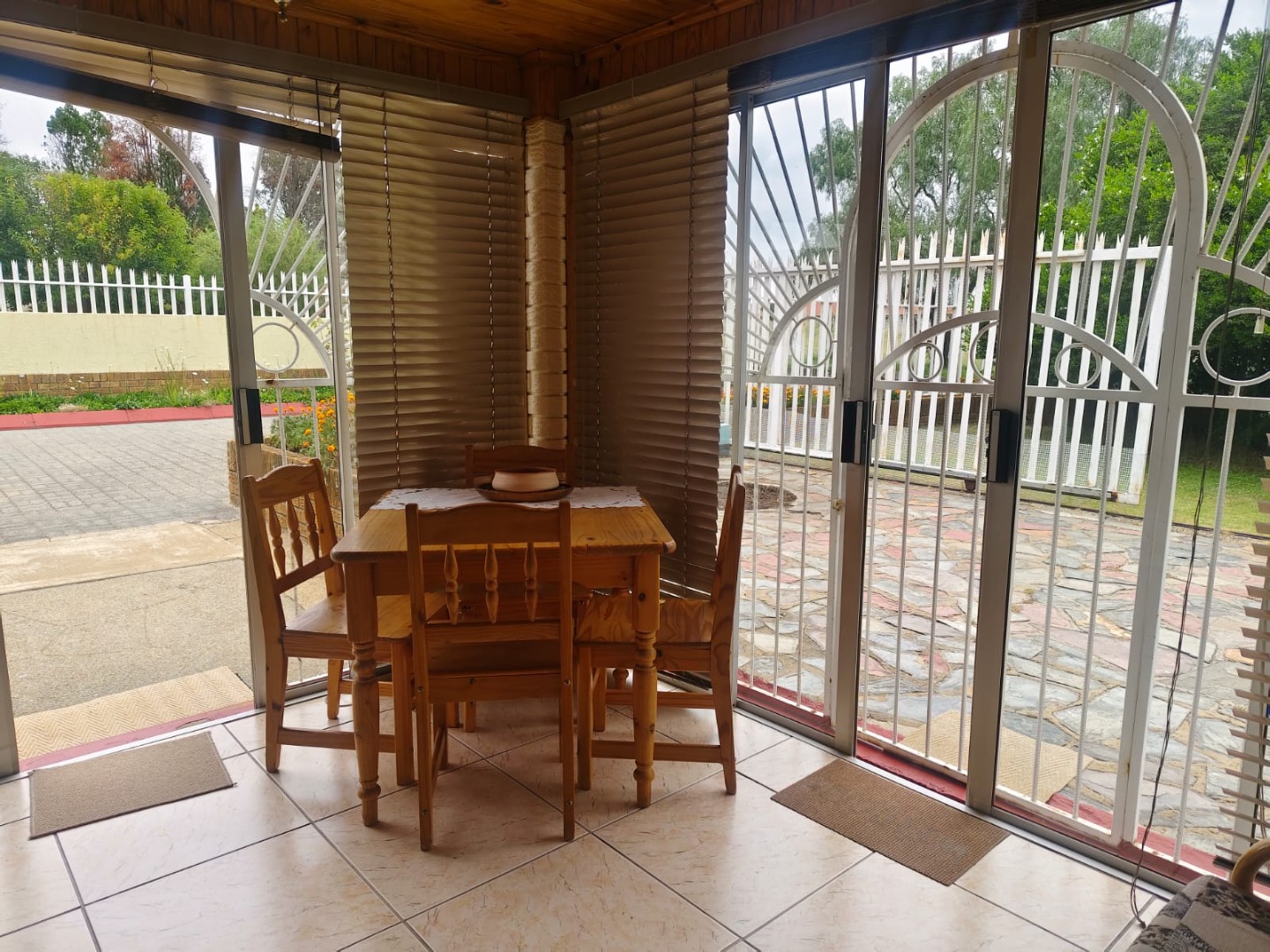 Practical amenities further enhance this home, including a dedicated laundry room, additional storage, staff quarters, a flatlet, outside toilet, and water tanks for efficiency. Parking is well-catered for with a single garage and two additional spaces. Security is enhanced with burglar bars on windows. Nestled in the tranquil Grootvlei area, this property offers a desirable country living experience, combining spaciousness with a peaceful environment.