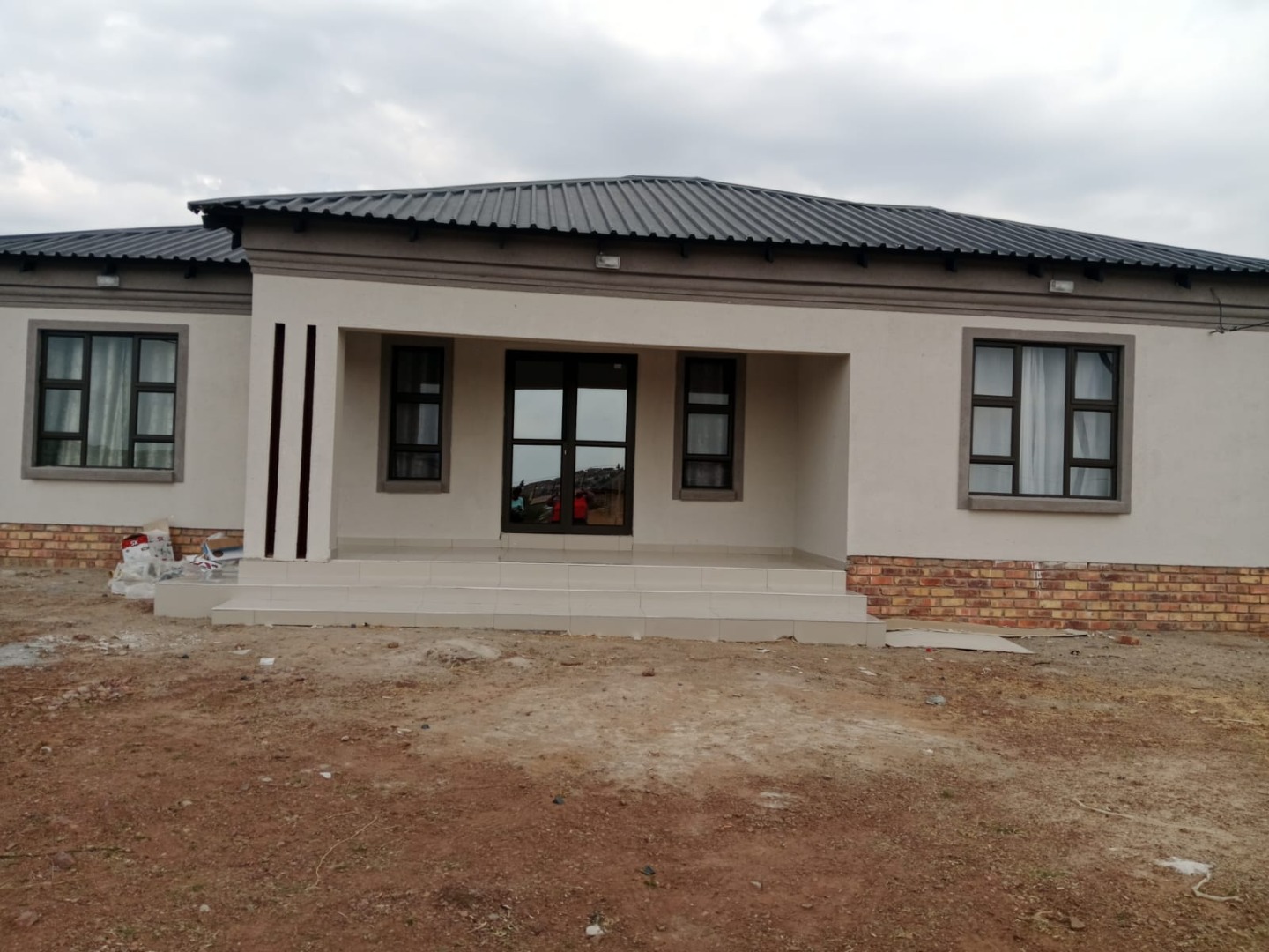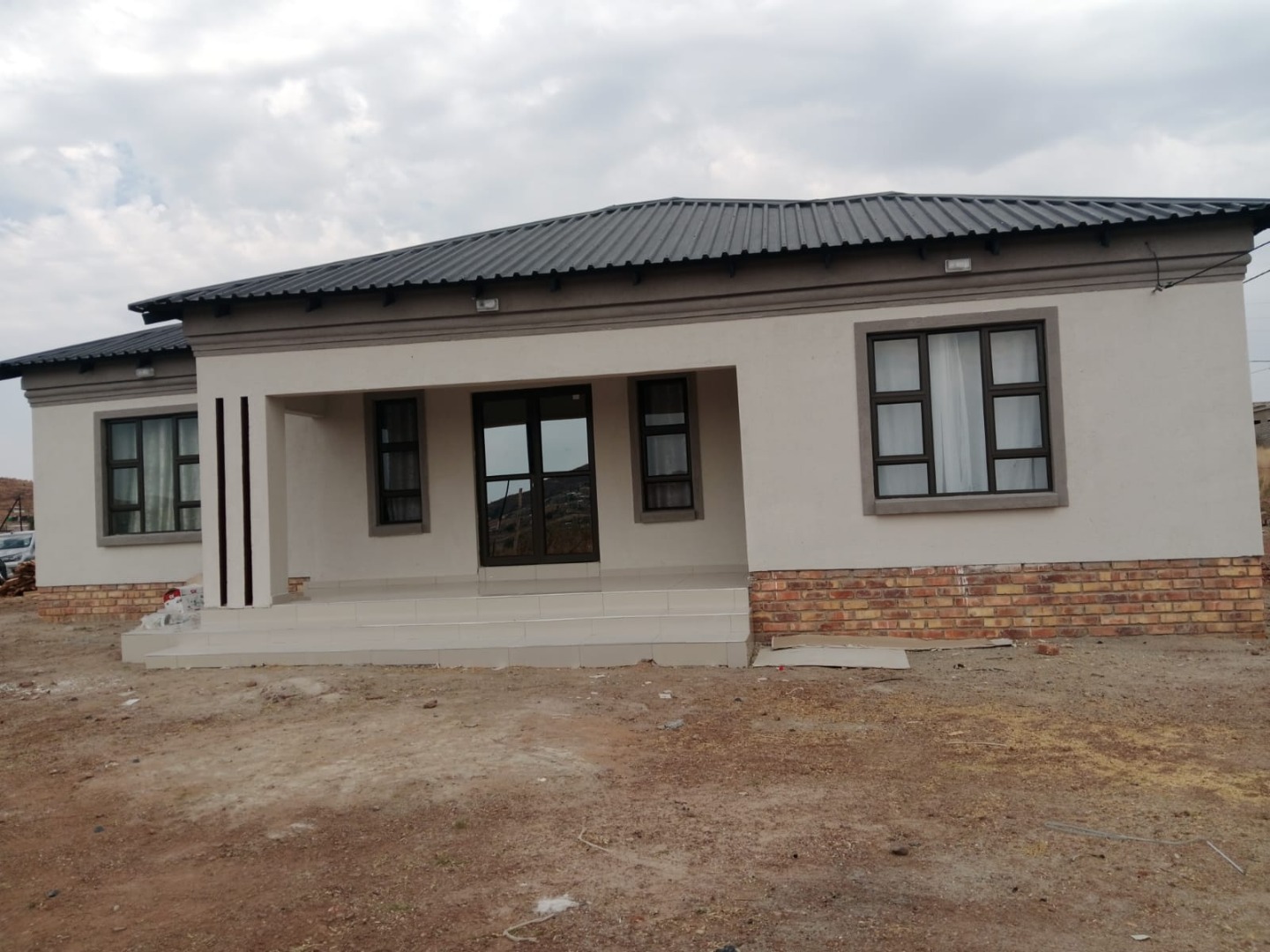 Hey there! Looking for a fresh start in a modern home? This lovely 3-bedroom, 1-bathroom house in Kwamhlanga Rural is just waiting for you to make it your own. With its clean, contemporary look, featuring light-colored stucco walls, stylish dark-framed windows, and a brand-new corrugated metal roof, it really stands out. The recessed entry porch gives it a welcoming feel, and the large 600 sqm erf offers plenty of space to dream up your perfect outdoor oasis. Imagine designing your own garden or creating a fantastic entertainment area – the possibilities are endless! Step inside and you'll find a bright and airy space, thanks to those generous windows letting in loads of natural light. The interiors boast new, glossy tiled flooring throughout, making it super easy to keep clean, and the walls have a cool, textured finish. There's a dedicated dining room, perfect for family meals or hosting friends, and a functional kitchen ready for your culinary adventures. The three bedrooms are comfortable and offer a great foundation for your personal style. The modern bathroom is a real highlight, featuring sleek tiled walls and floors, a convenient pedestal sink, a toilet, and both a separate shower cubicle with frosted glass and a relaxing bathtub. It’s got everything you need for a refreshing start to your day or a relaxing soak in the evening. Outside, you've got ample space with 5 parking spots, so there's always room for guests. The large erf size means you have a blank canvas to create the garden you've always wanted, whether it's a lush green lawn or a vibrant flower bed. This home is all about potential and giving you the freedom to design your ideal living environment. Kwamhlanga Rural offers a peaceful setting, providing a relaxed lifestyle away from the hustle and bustle. It's a great spot to settle down and enjoy a sense of community. Key Features: * Modern 3-bedroom, 1-bathroom home * Stylish exterior with new roof and dark-framed windows * Spacious 600 sqm erf for outdoor dreams * New tiled flooring and textured walls * Modern bathroom with shower and bathtub * Dedicated dining room and kitchen * Plenty of natural light * 5 convenient parking spaces