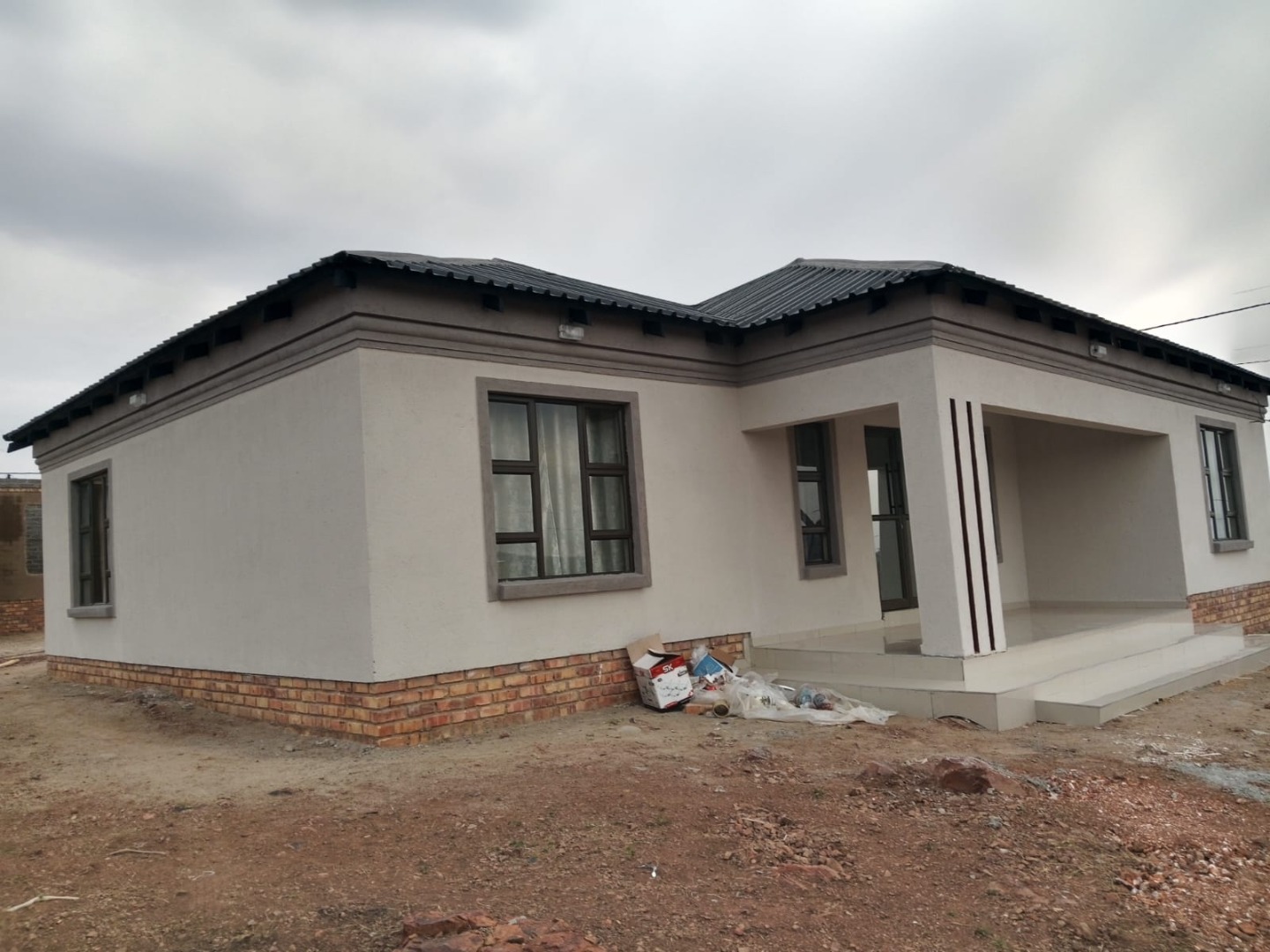 Hey there! Looking for a fresh start in a modern home? This lovely 3-bedroom, 1-bathroom house in Kwamhlanga Rural is just waiting for you to make it your own. With its clean, contemporary look, featuring light-colored stucco walls, stylish dark-framed windows, and a brand-new corrugated metal roof, it really stands out. The recessed entry porch gives it a welcoming feel, and the large 600 sqm erf offers plenty of space to dream up your perfect outdoor oasis. Imagine designing your own garden or creating a fantastic entertainment area – the possibilities are endless! Step inside and you'll find a bright and airy space, thanks to those generous windows letting in loads of natural light. The interiors boast new, glossy tiled flooring throughout, making it super easy to keep clean, and the walls have a cool, textured finish. There's a dedicated dining room, perfect for family meals or hosting friends, and a functional kitchen ready for your culinary adventures. The three bedrooms are comfortable and offer a great foundation for your personal style. The modern bathroom is a real highlight, featuring sleek tiled walls and floors, a convenient pedestal sink, a toilet, and both a separate shower cubicle with frosted glass and a relaxing bathtub. It’s got everything you need for a refreshing start to your day or a relaxing soak in the evening. Outside, you've got ample space with 5 parking spots, so there's always room for guests. The large erf size means you have a blank canvas to create the garden you've always wanted, whether it's a lush green lawn or a vibrant flower bed. This home is all about potential and giving you the freedom to design your ideal living environment. Kwamhlanga Rural offers a peaceful setting, providing a relaxed lifestyle away from the hustle and bustle. It's a great spot to settle down and enjoy a sense of community. Key Features: * Modern 3-bedroom, 1-bathroom home * Stylish exterior with new roof and dark-framed windows * Spacious 600 sqm erf for outdoor dreams * New tiled flooring and textured walls * Modern bathroom with shower and bathtub * Dedicated dining room and kitchen * Plenty of natural light * 5 convenient parking spaces