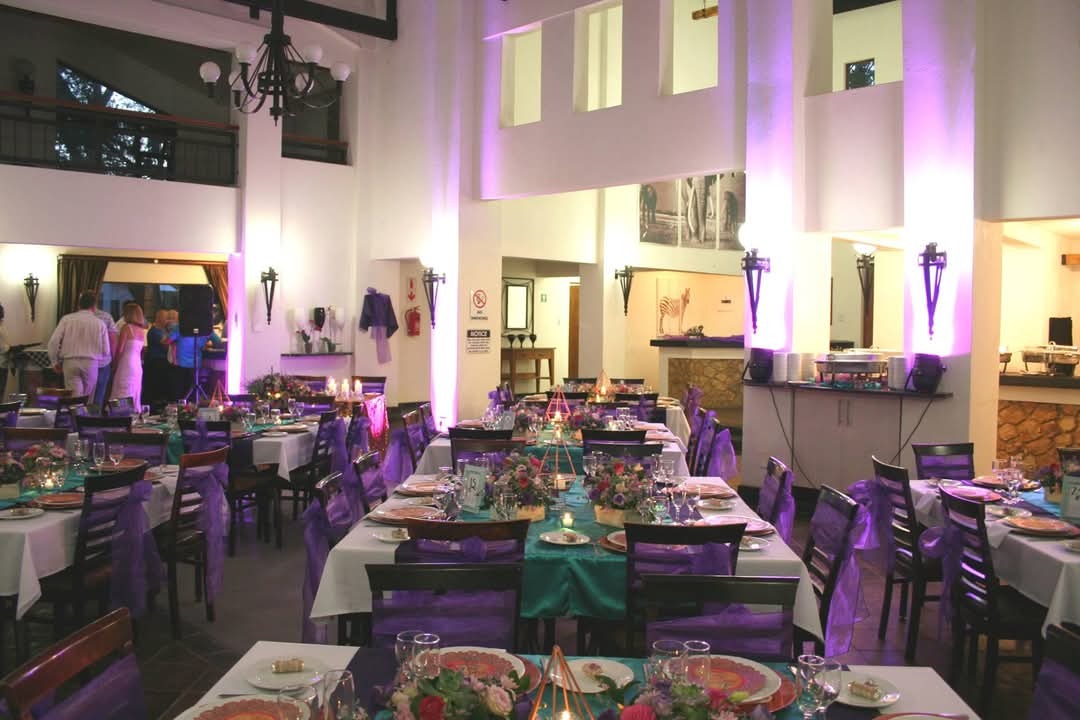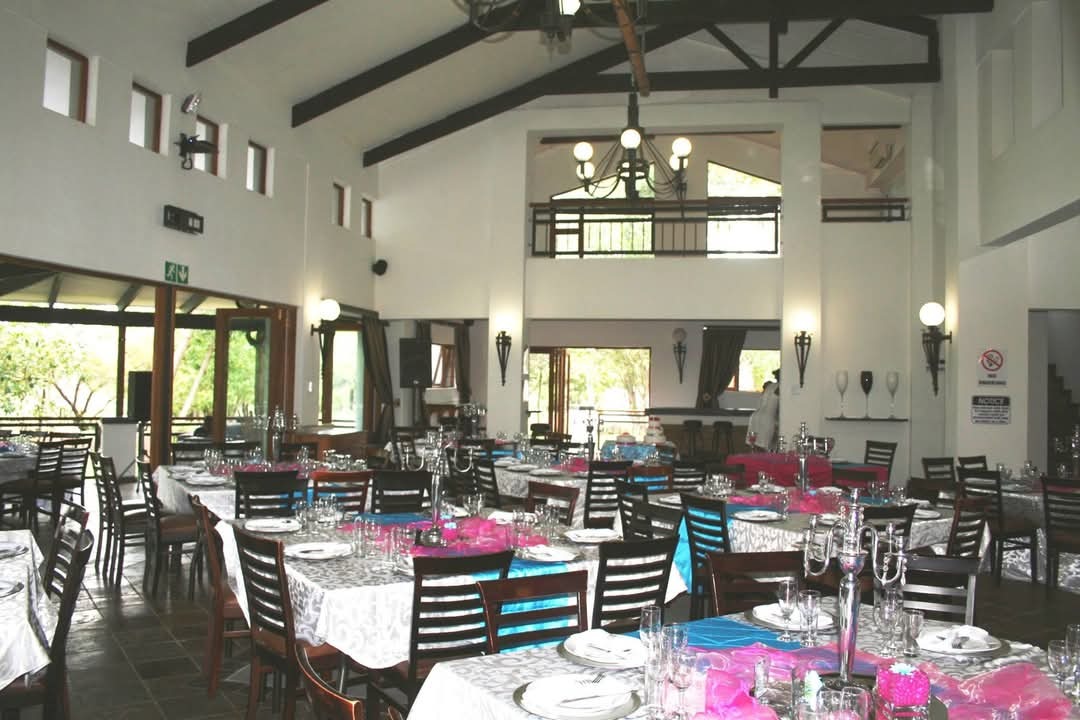 This property is an ideal location for weddings, special events, and corporate functions. The venue offers spectacular views of an internal lake, framed by picturesque landscaped gardens and large indigenous trees, creating a serene and romantic setting. Features include