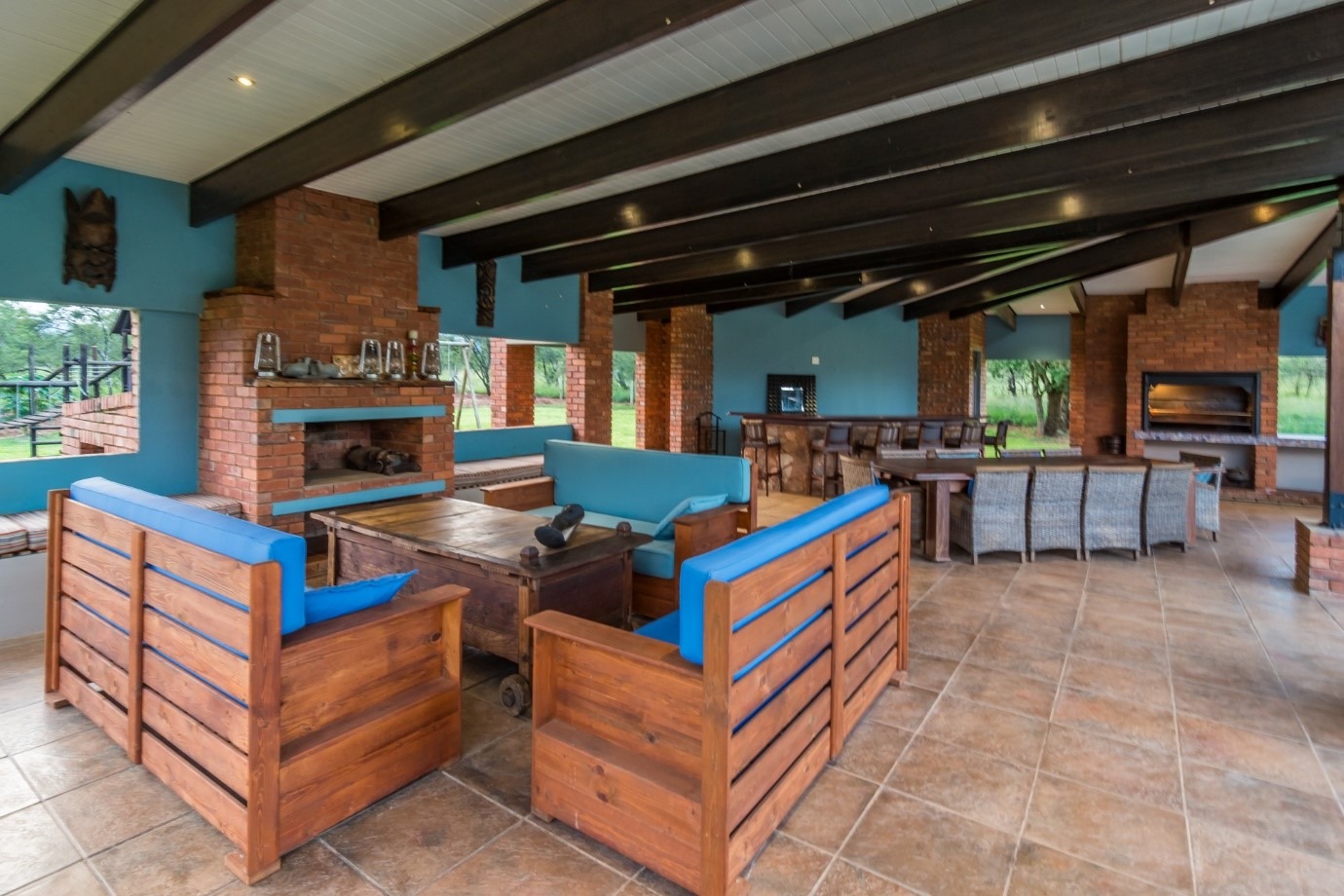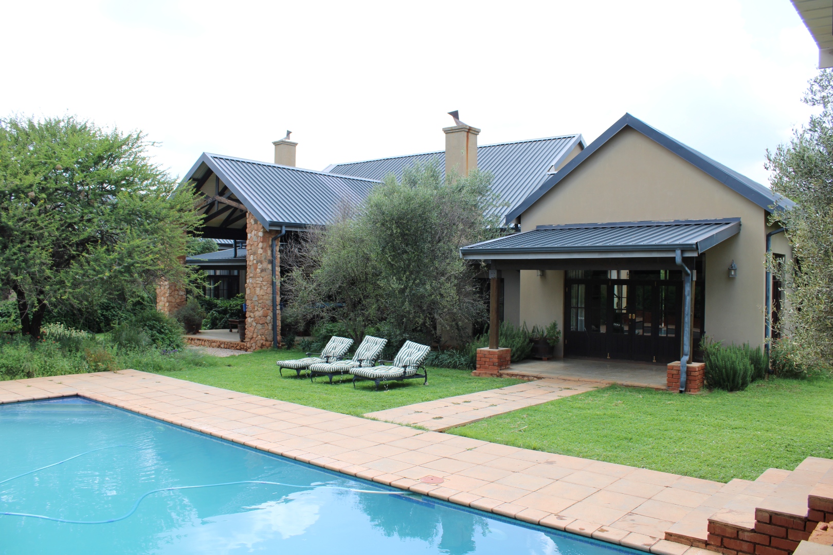 Experience refined country living in this luxurious homestead of 8.5ha set within the exclusive BlueBird Private Game Estate, where wildlife such as kudu, eland, nyala, giraffe, zebra, and more roam freely across 311 ha stretching to the scenic Magaliesburg Mountain Range.