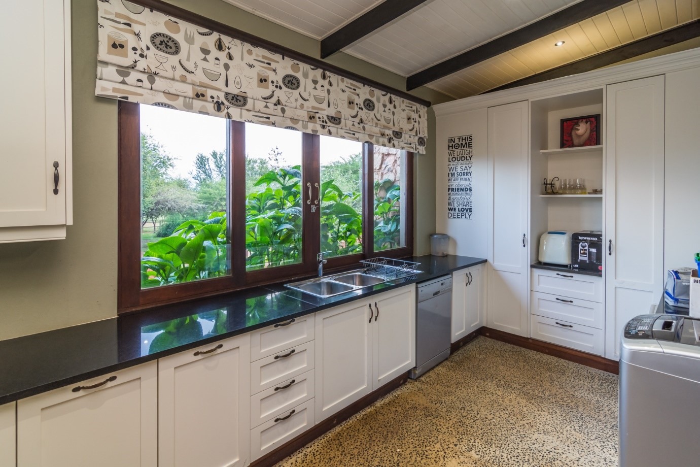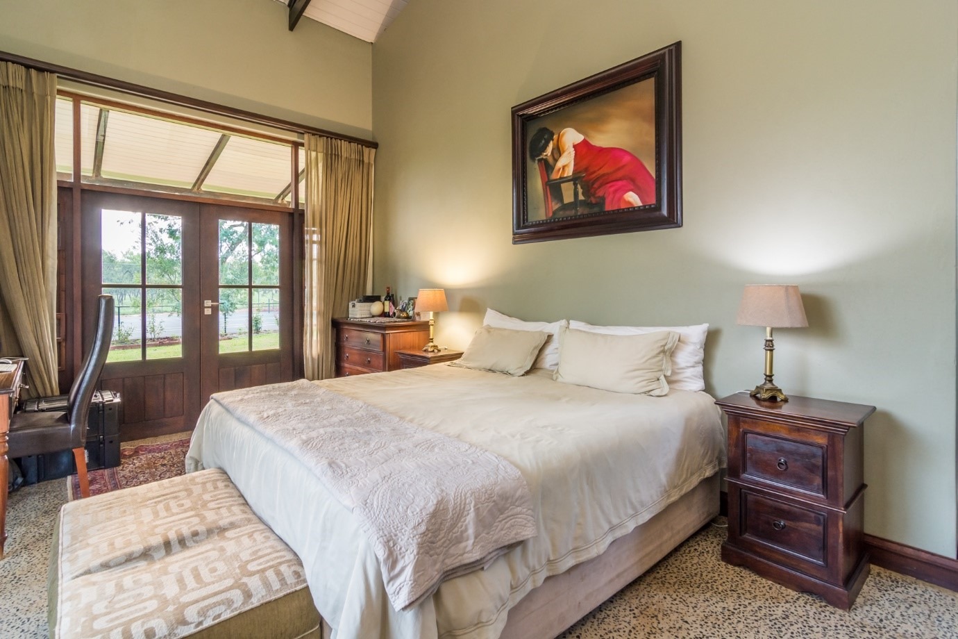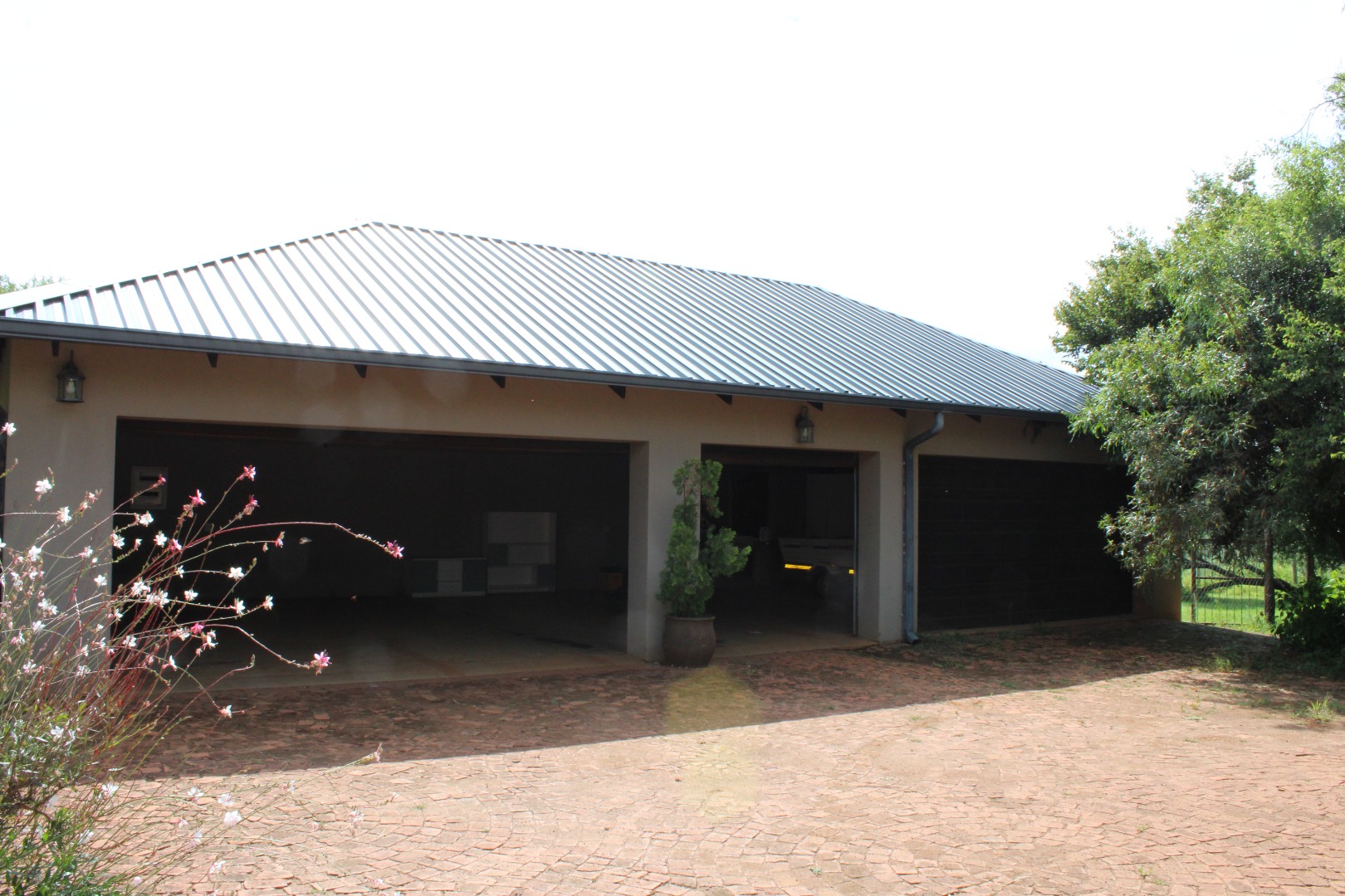 Beyond the main home, the estate features a 2-bedroom guest cottage, an unfinished 3-bedroom cottage, and extensive amenities such as borehole water, solar geysers, garages, workshop, staff quarters, and horse facilities.