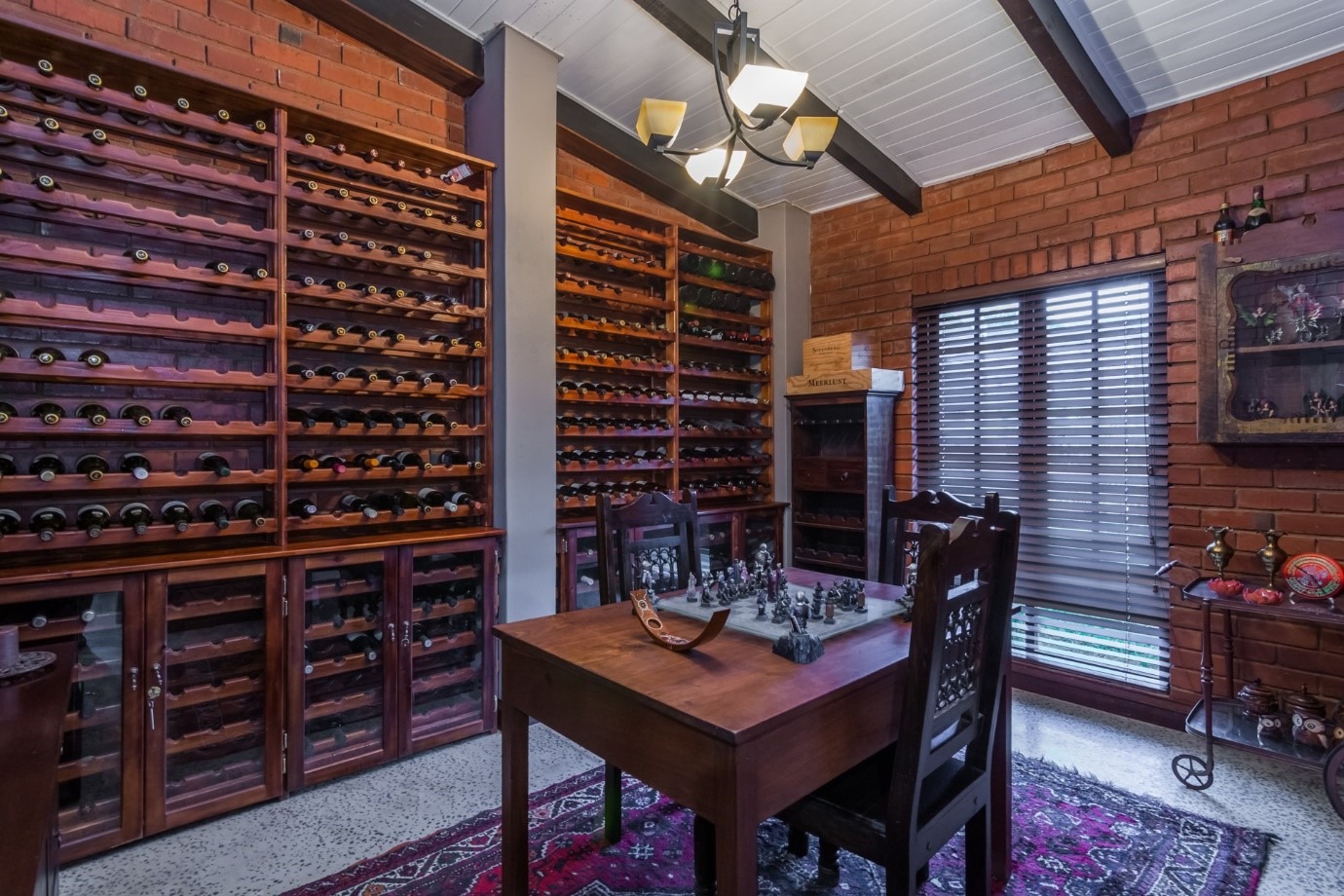 Perfect for entertaining, the 120 sqm thatched lapa includes a lounge, dining area, built-in braai, bar, pizza oven, and fireplace, overlooking a sparkling swimming pool and a floodlit tennis court - built 2016.