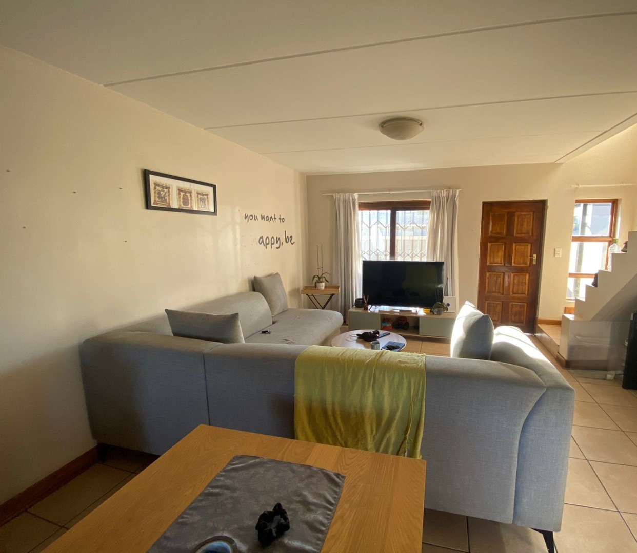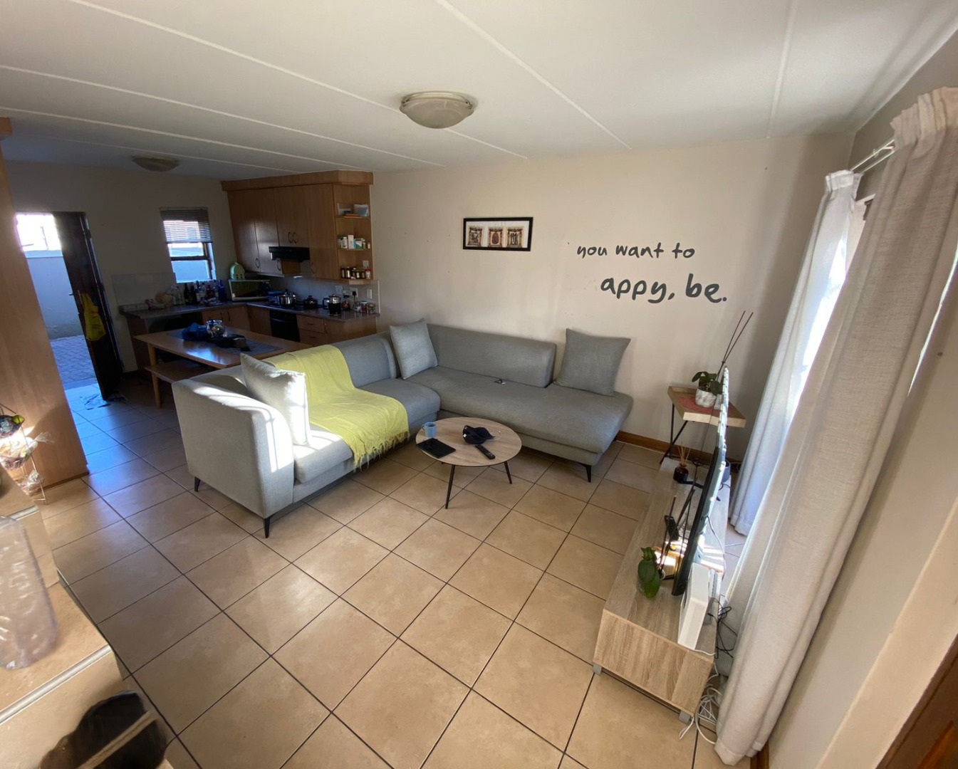 Downstairs - a private yard, where you can unwind. The sliding door invite you into the comfort of an open plan fully tiled area, to relax. The wood-fitted kitchen has ample cupboards, space for fridge. A dishwasher or washing machine fitting, under counter. The hob and under counter stove invite you to do cooking and baking, while the open plan, ensure family time - fun time!! Also a guest loo. The back door leads to another private back yard and equipped with washing lines - so convenient!