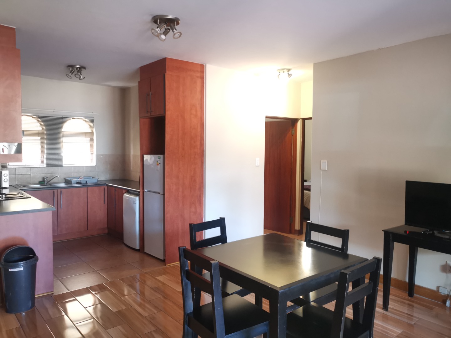 A small private courtyard welcomes you, to a veranda where you can relax and unwind, overlooking the small garden. The sliding door invites you to a open plan living area and lovely wood-fitted modern kitchen. Enough cupboards and well-designed to make your meal preparation fun, to prepare those scrumptious meals and baking...