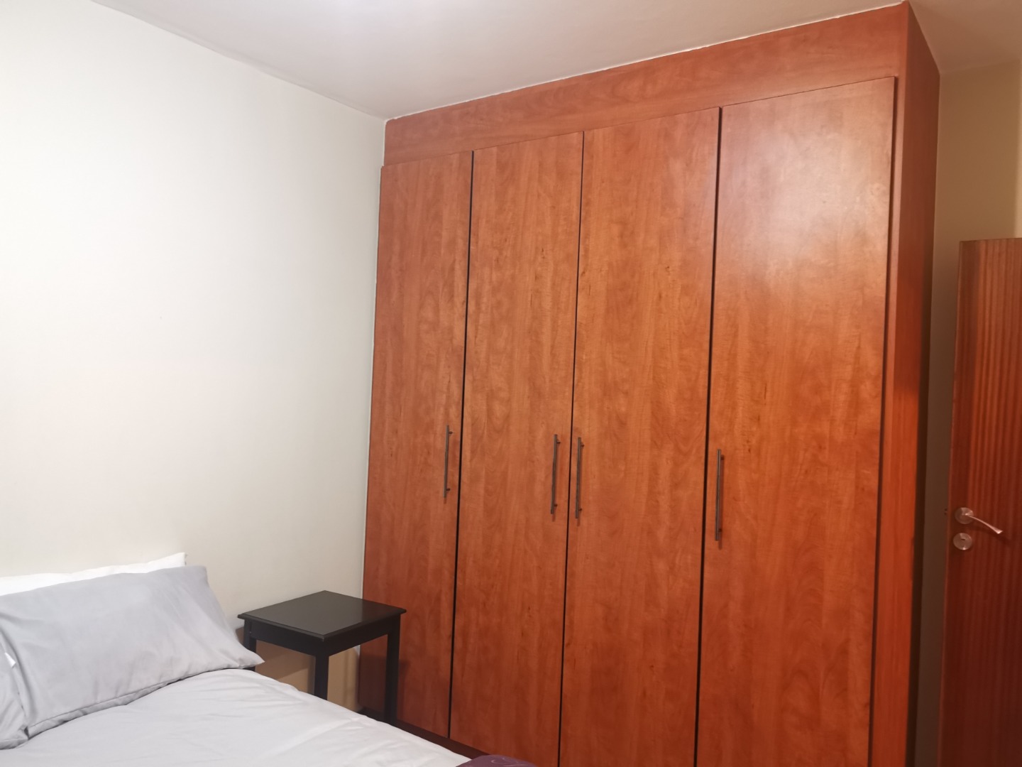 A small private courtyard welcomes you, to a veranda where you can relax and unwind, overlooking the small garden. The sliding door invites you to a open plan living area and lovely wood-fitted modern kitchen. Enough cupboards and well-designed to make your meal preparation fun, to prepare those scrumptious meals and baking...