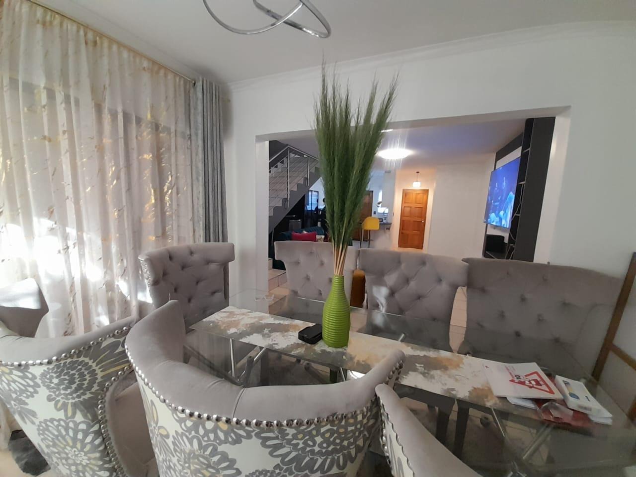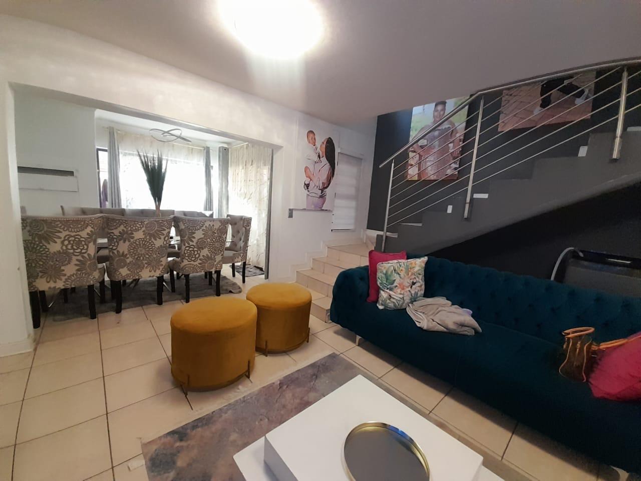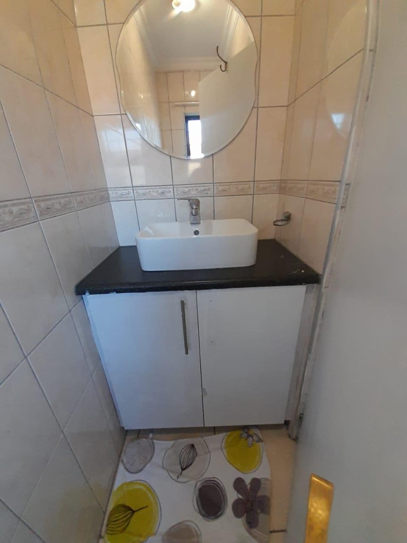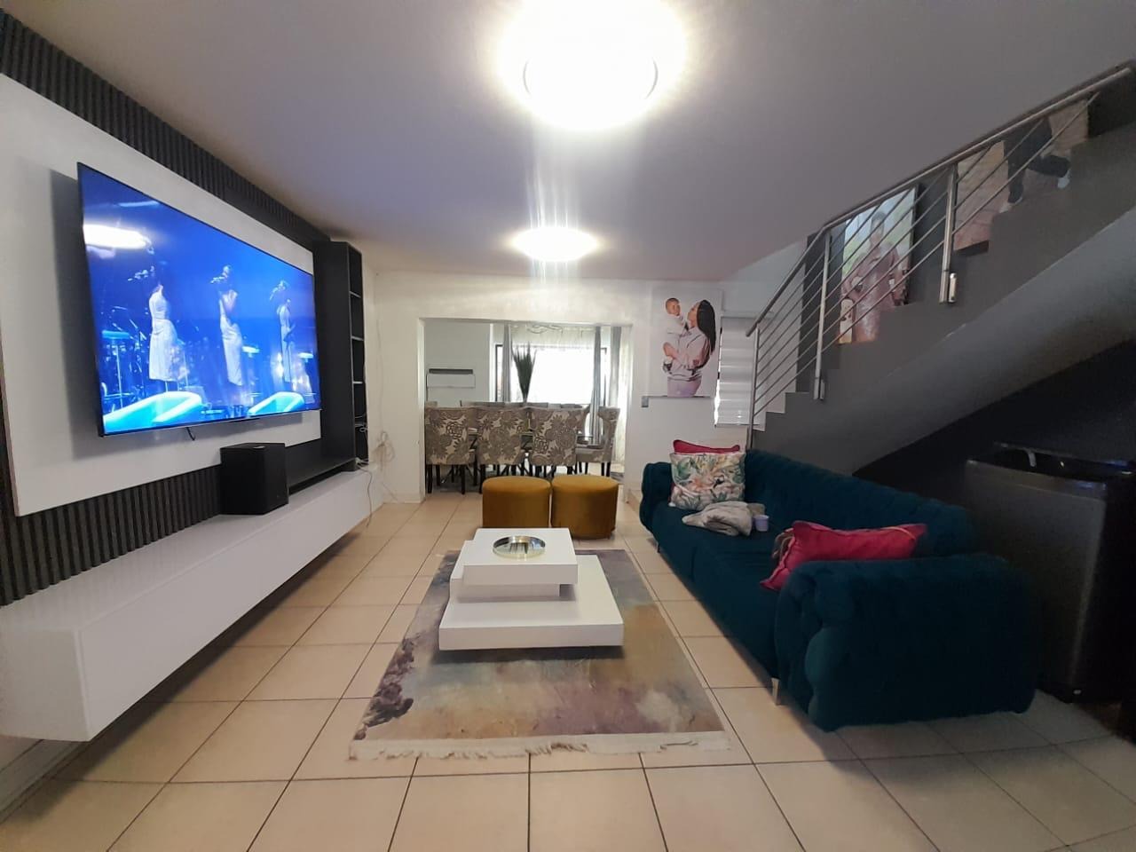 Upon entering you are walking into an open-plan living area, with a modern TV unit mounted on the wall. The kitchen has lots of cupboard space and a brand new stove, double sink and taps. A guest loo for convenience to you and your guests. The center piece of this home, is the built-in braai, closed with sliding doors, to add another living space, while entertaining friends and family.