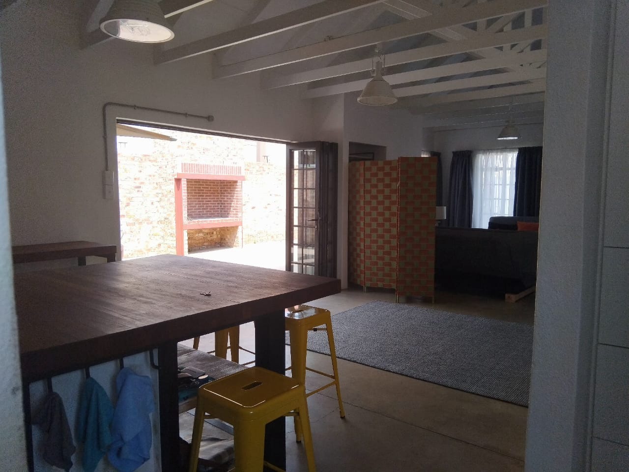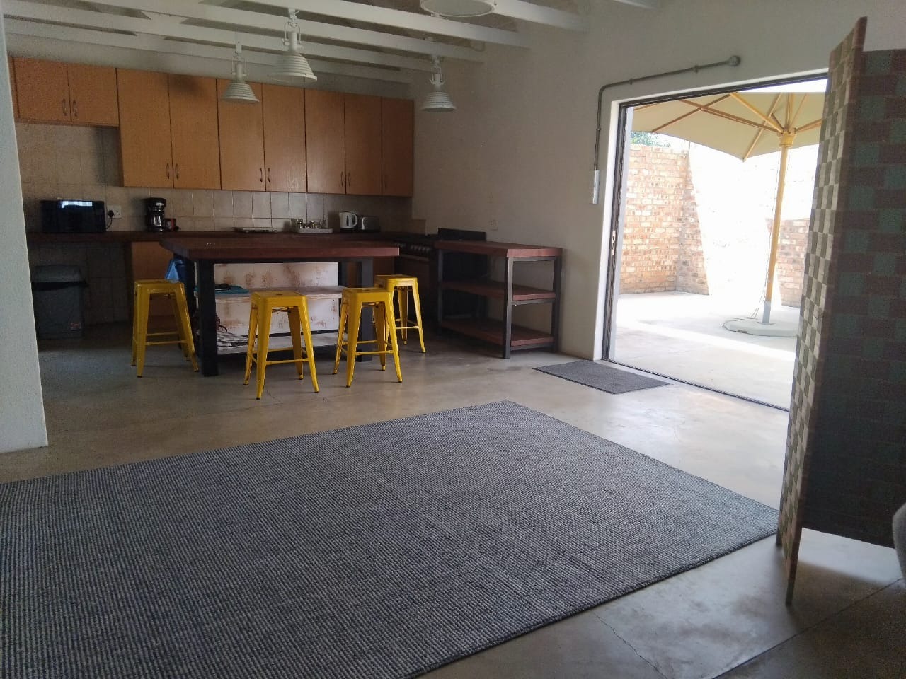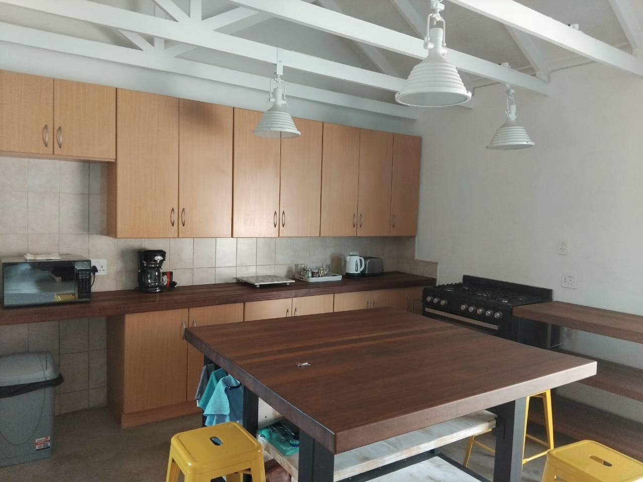 Discover comfortable living in this modern 2-bedroom, 2-bathroom rental home located within a secure complex in Heidelberg Central. Spanning 159.29 sqm, this residence boasts an inviting open-plan layout, seamlessly connecting the living, dining, and kitchen areas. The spacious kitchen is a highlight, featuring ample cabinetry, dark countertops, a large central island perfect for dining or entertaining, and a modern gas range. High vaulted ceilings with exposed beams enhance the sense of space and light throughout the main living areas, complemented by durable concrete flooring. Both bedrooms offer comfortable accommodation, with two well-appointed bathrooms ensuring convenience. The property extends its appeal outdoors with a private patio area, complete with a built-in braai, ideal for relaxed entertaining. A well-maintained garden provides a tranquil green space, and the property is pet-friendly, catering to residents with furry companions. A single garage offers secure parking and additional storage. Residents will appreciate the enhanced security features, including an alarm system, burglar bars, and a security gate, all within this secure complex environment. Practical amenities such as water tanks contribute to efficient living. This home is perfectly suited for individuals or small families seeking a blend of modern comfort and peace of mind. Situated in the heart of Heidelberg, this property offers convenient access to local amenities, schools, and transport routes, making it an ideal location for a balanced lifestyle. Key Features: * 2 Bedrooms, 2 Bathrooms * 1 Garage * Open-plan living with high ceilings * Spacious kitchen with island and gas range * Private patio with built-in braai * Pet-friendly with a private garden * Alarm system, burglar bars, security gate * Water tanks for efficiency * Located in a secure complex