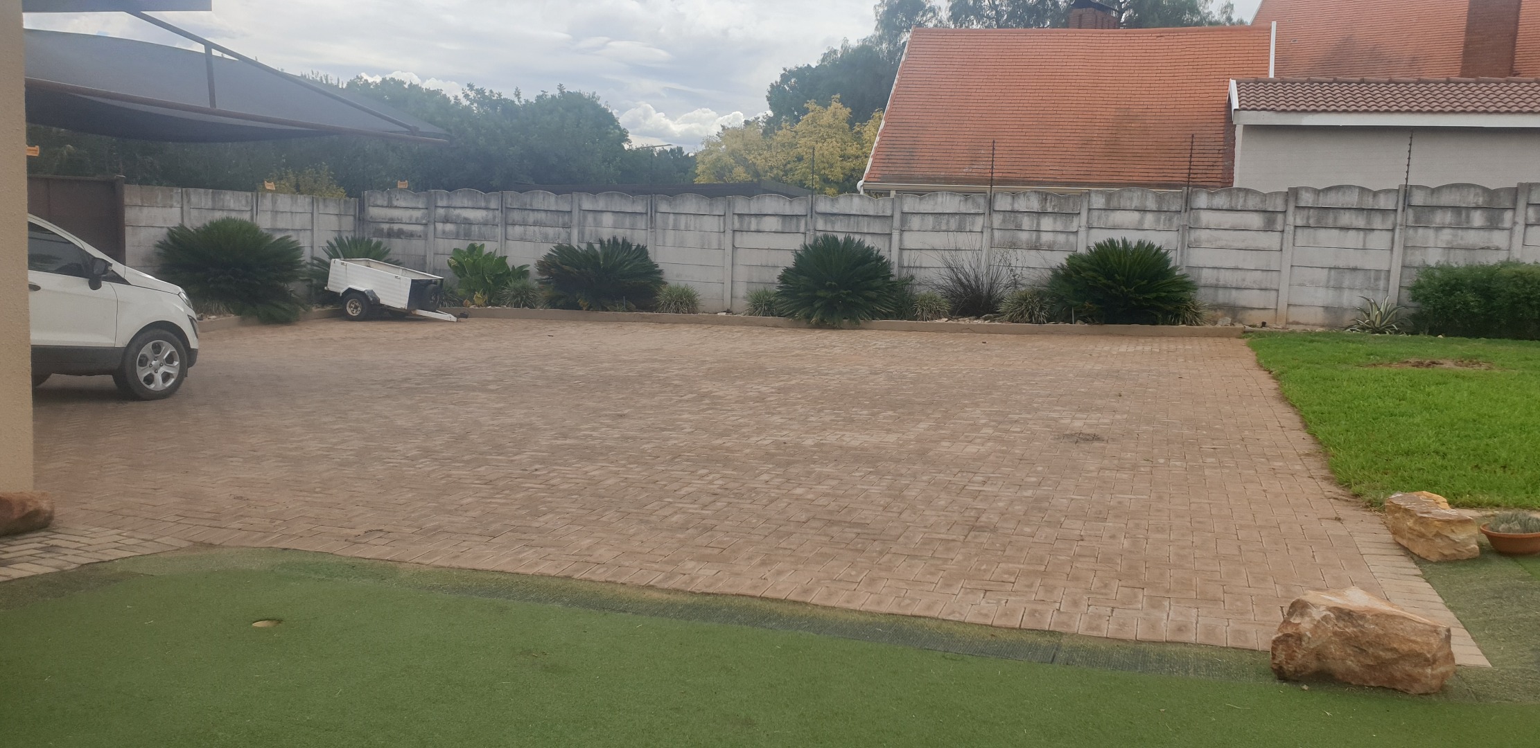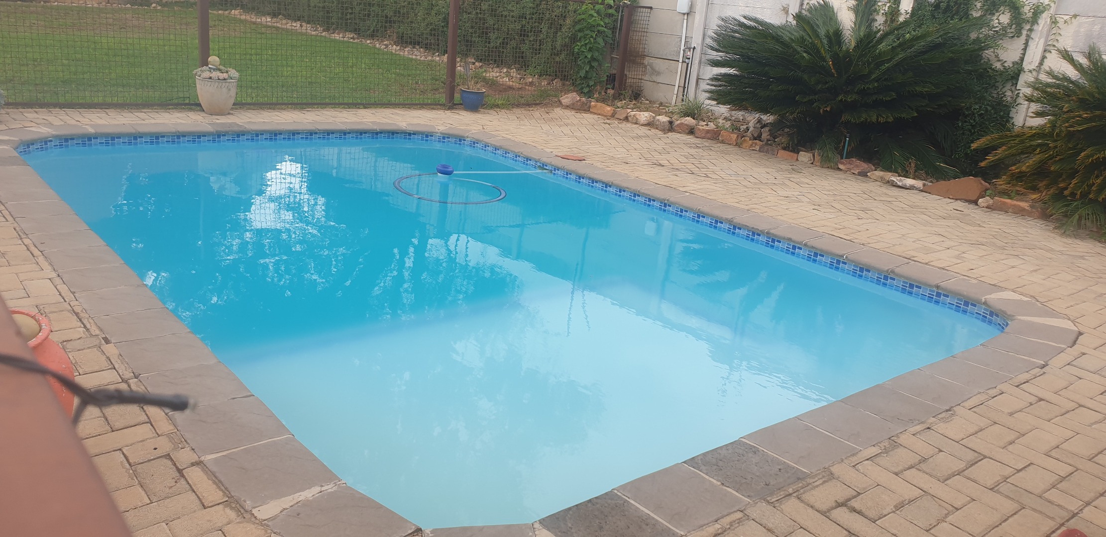Step outside to a private, totally walled garden, perfect for outdoor activities and relaxation. Enjoy warm days by the swimming pool or entertain guests on the patio. The property also benefits from practical amenities such as a laundry room, storage facilities, and water tanks. Parking is abundant with a double garage and three additional paved parking spaces, ensuring ample room for vehicles. Security is enhanced with burglar bars and a security gate, offering peace of mind. Pets are welcome, making this an ideal home for the entire family.