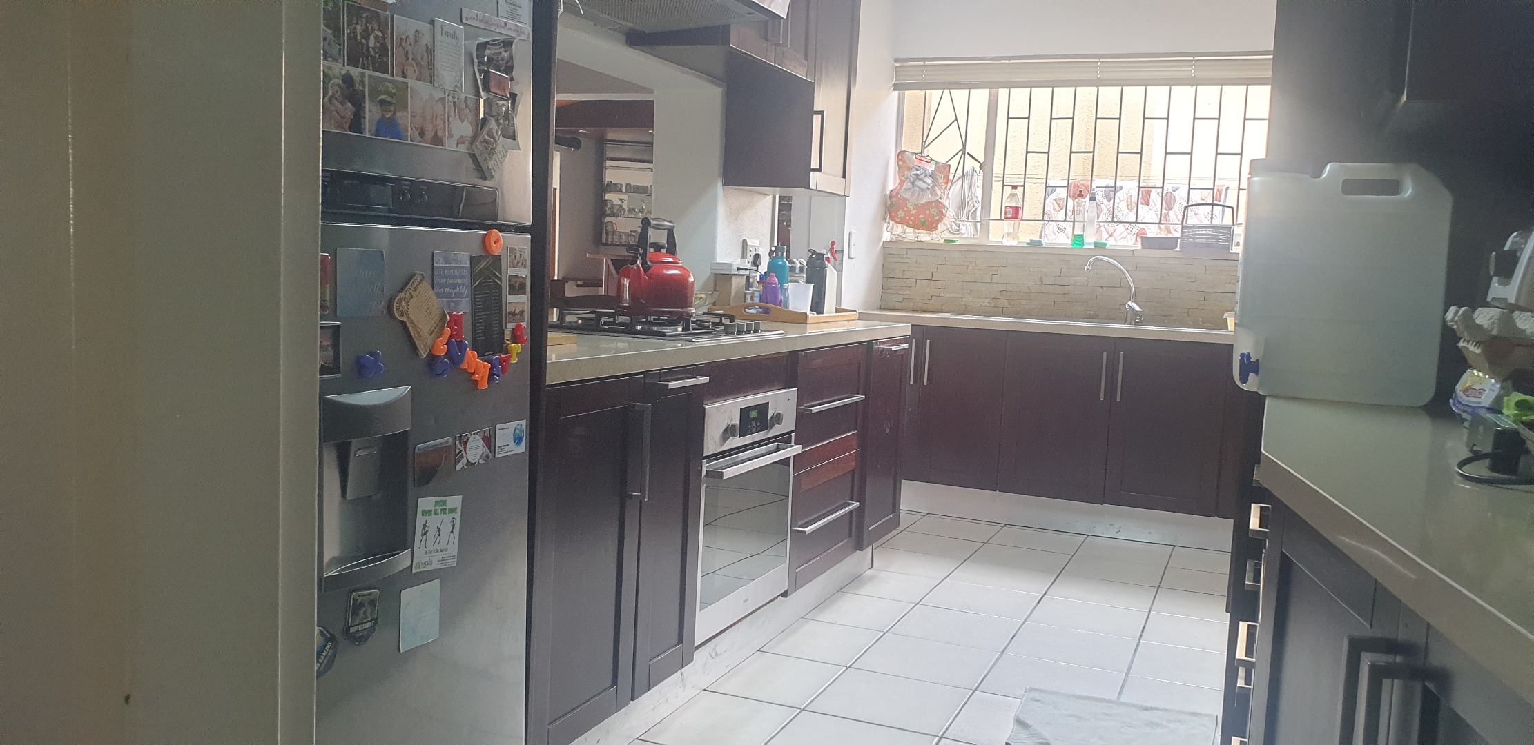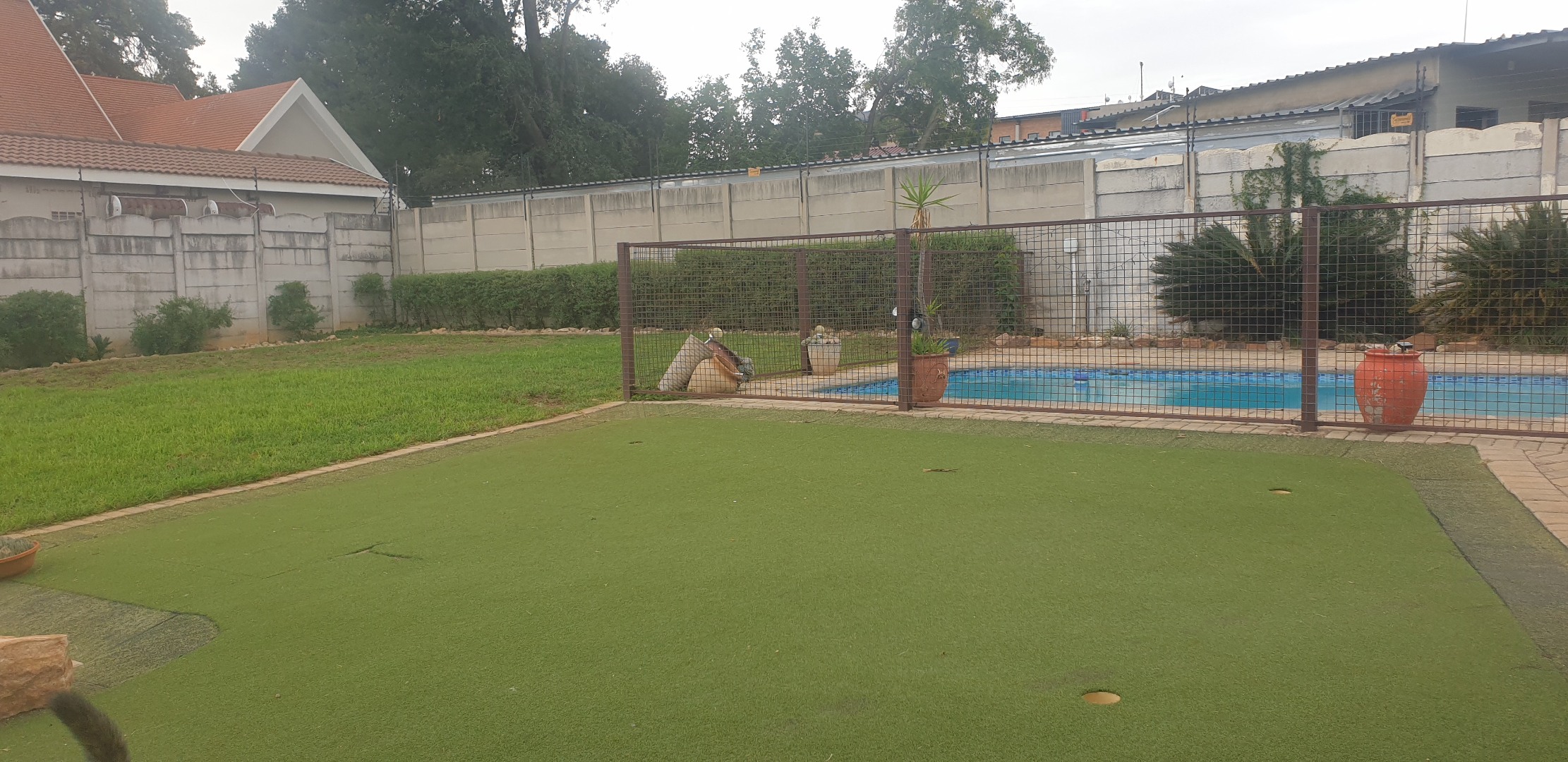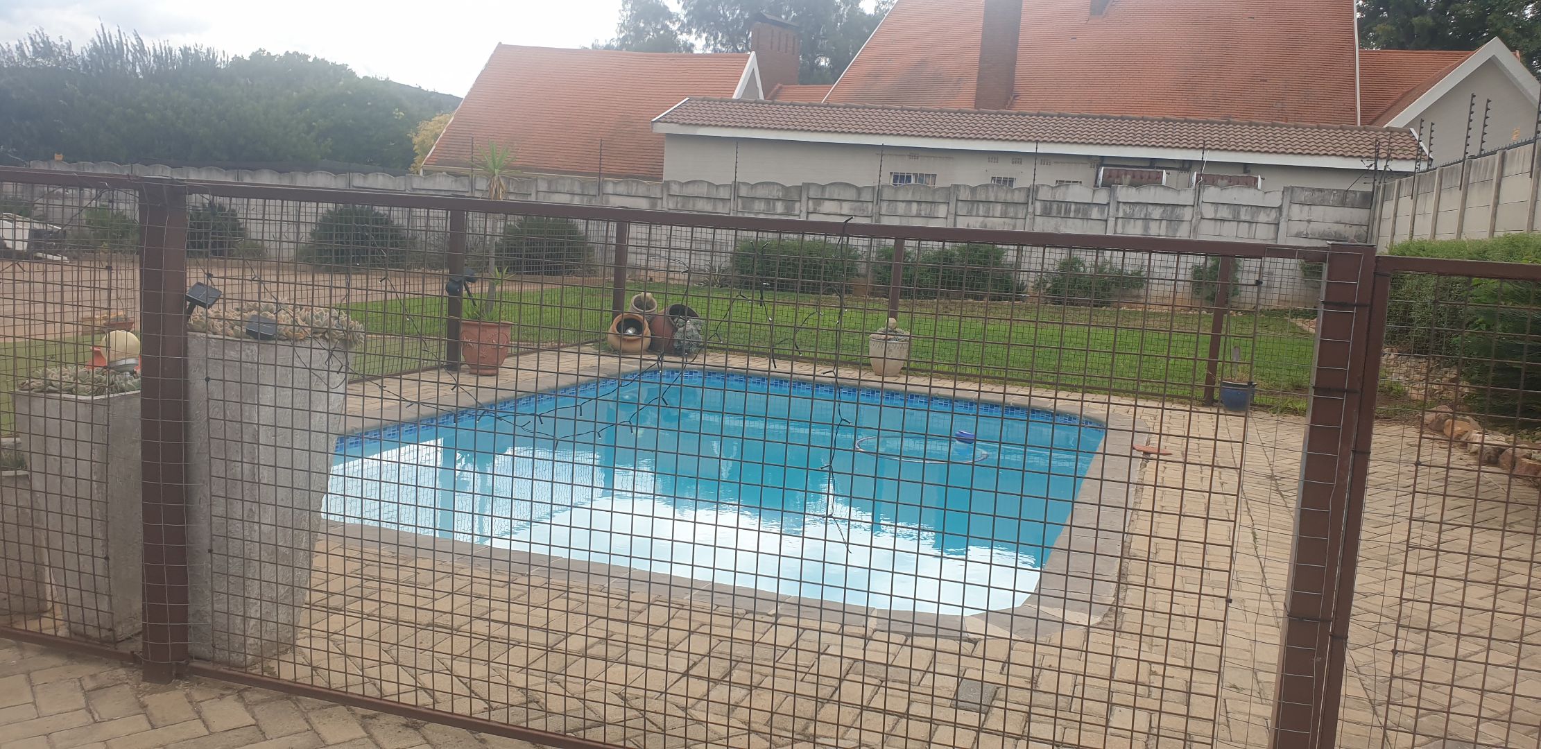 Step outside to a private, totally walled garden, perfect for outdoor activities and relaxation. Enjoy warm days by the swimming pool or entertain guests on the patio. The property also benefits from practical amenities such as a laundry room, storage facilities, and water tanks. Parking is abundant with a double garage and three additional paved parking spaces, ensuring ample room for vehicles. Security is enhanced with burglar bars and a security gate, offering peace of mind. Pets are welcome, making this an ideal home for the entire family.
