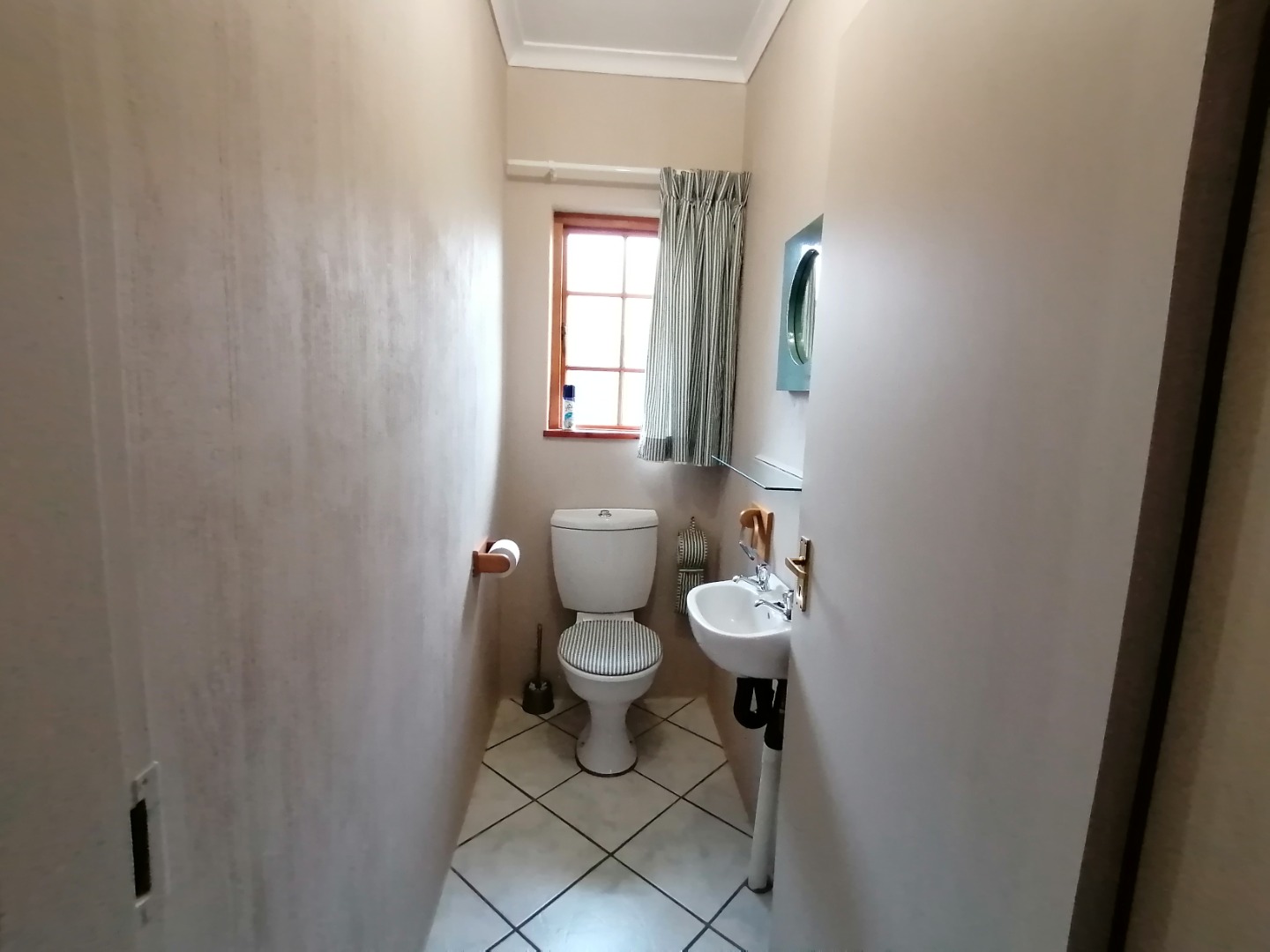 Two carpeted bedrooms with built-in cupboards. Main bedroom is furnished with a double bed, side tables and dresser. Second bedroom is furnished with a single bed. There is a full bathroom, plus a guest toilet.