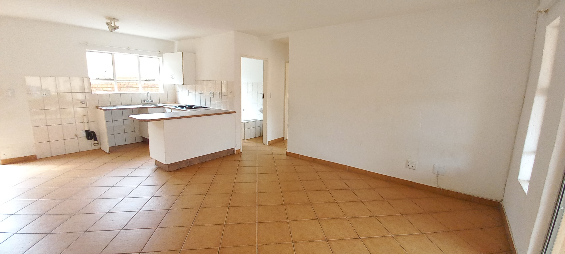 Spacious open plan lounge and kitchen with a patio and built in braai.