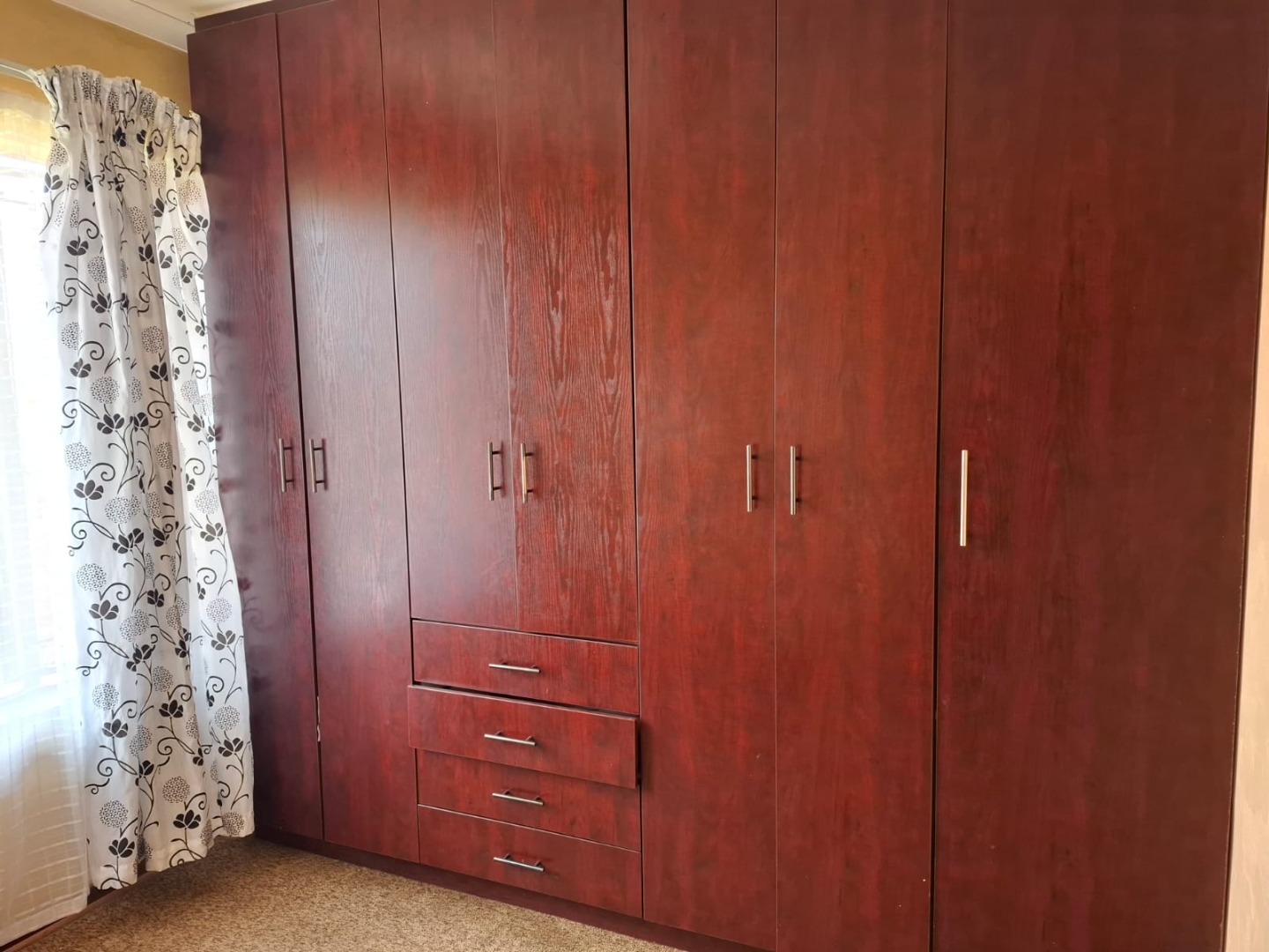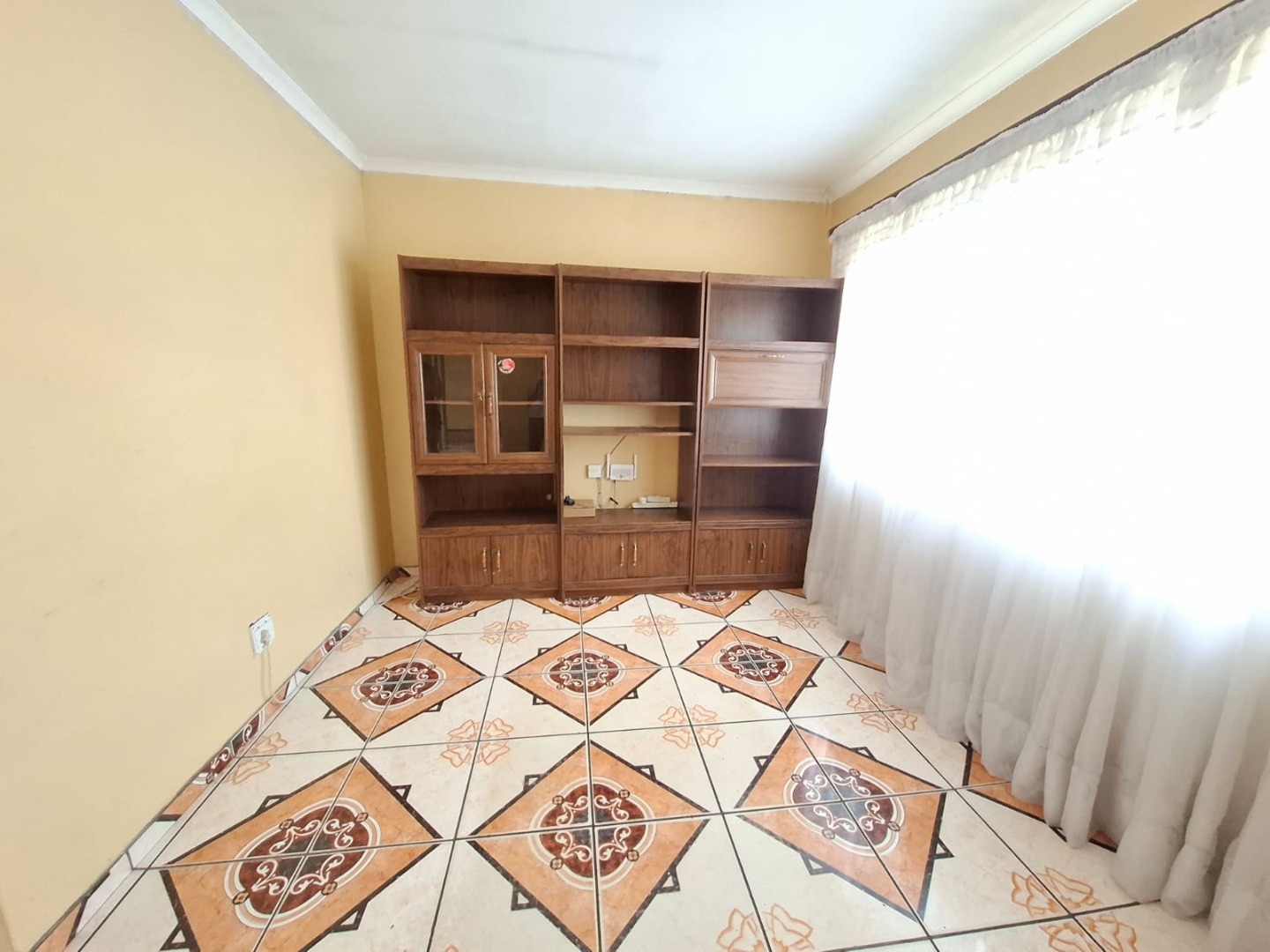 Externally, the house is constructed from durable brick and features a large, well-maintained grassy yard with established garden beds, perfect for outdoor activities. A paved stoep provides a pleasant spot for enjoying the garden. Security is a key feature, with an access gate, burglar bars, and gate spikes contributing to a secure living environment. Shalimar Ridge in Heidelberg offers a tranquil suburban setting, ideal for those seeking a peaceful residential lifestyle.