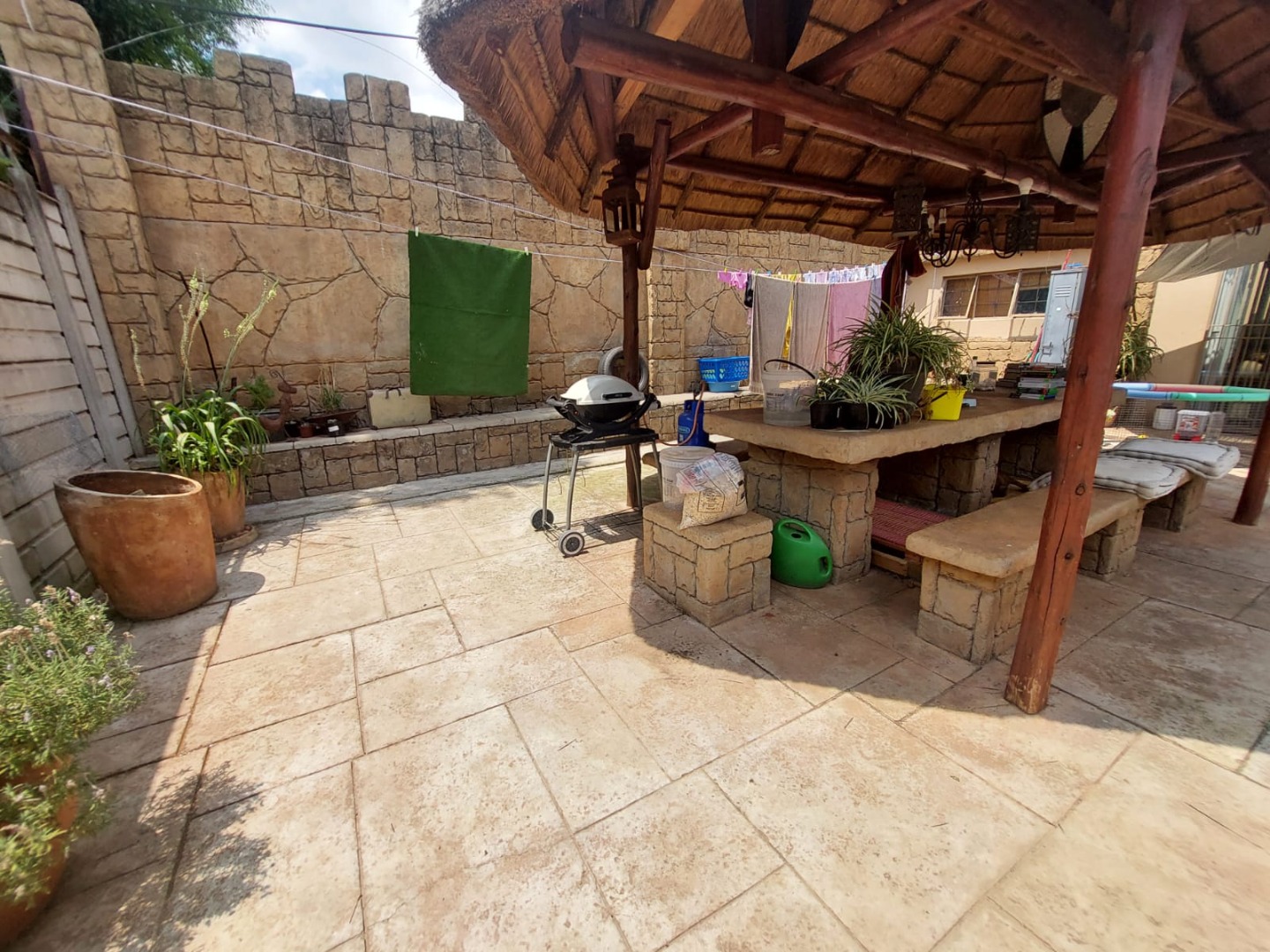 The main house offers 3 spacious bedrooms, 2 modern bathrooms, and a dedicated entertainment area with a built in bar, perfect for hosting family and friends. A separate cottage adds excellent versatility for guests or granny and grandpa. Outdoors, the expansive garden includes an inviting undercover fire pit, ideal for year round gatherings. With ample parking space and standout natural finishes, this home blends comfort, character, and lifestyle appeal, for only R13500 excluding water, electricity, refuse and waste services.