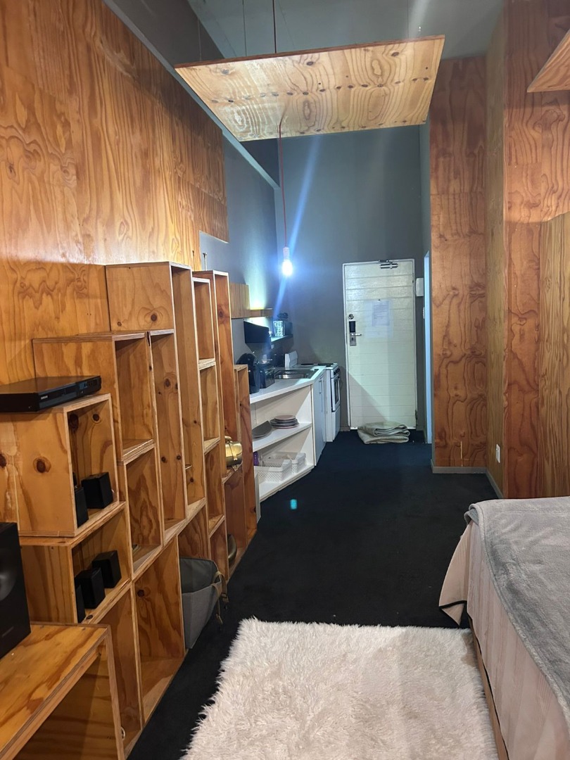 Discover an unparalleled urban sanctuary within the vibrant heart of Maboneng, Johannesburg. This exquisitely furnished 1-bedroom, 1-bathroom studio apartment redefines contemporary living with its distinctive design and thoughtful amenities. Step into a realm where high ceilings amplify space, complemented by bespoke light-wood plywood paneling and integrated shelving that offer both aesthetic appeal and practical storage solutions. The living area seamlessly transitions into a dedicated workspace, featuring a custom-built desk and a pre-installed TV mount, perfect for the discerning professional or creative.
