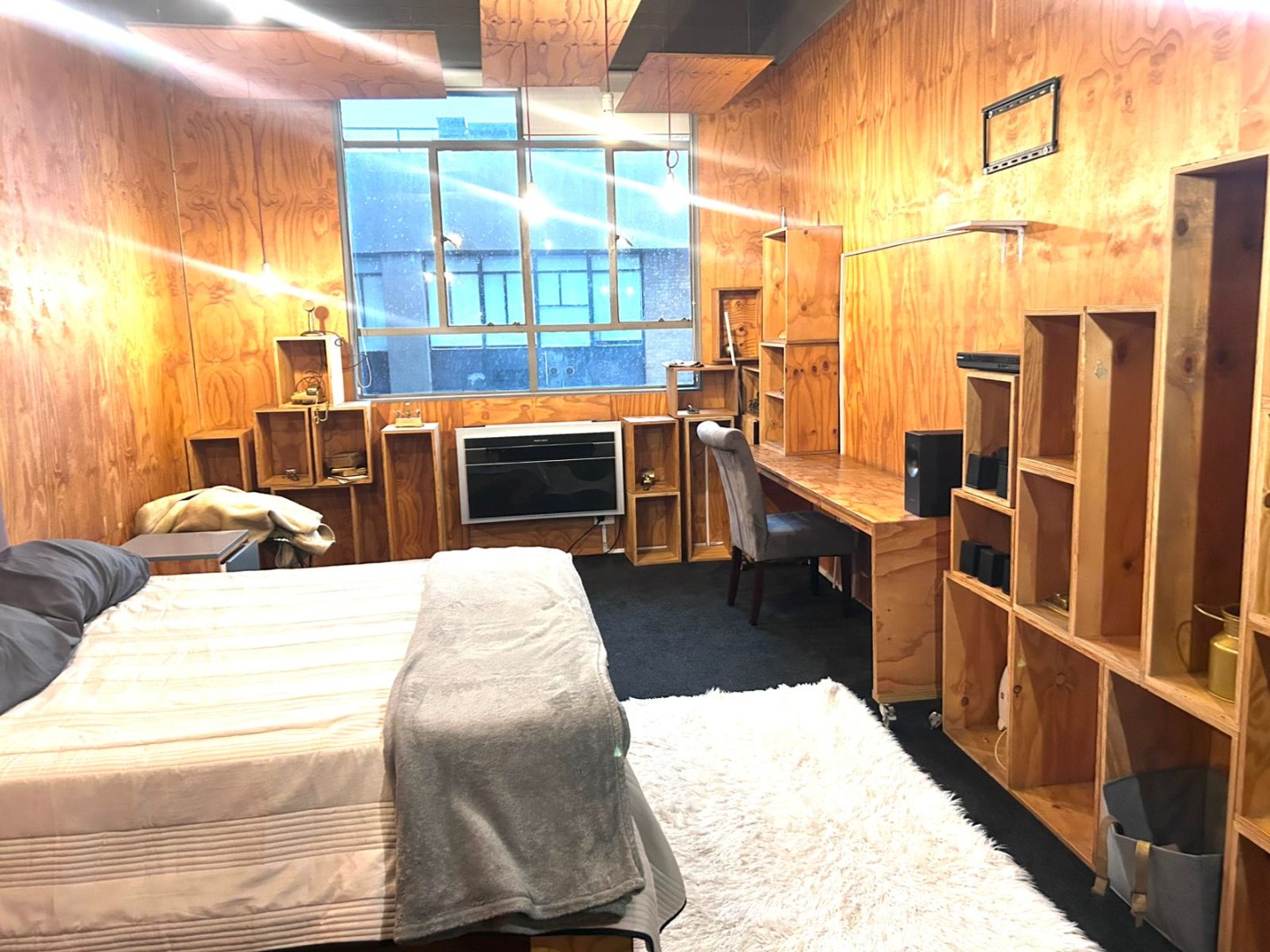 * Unique plywood aesthetic with high ceilings