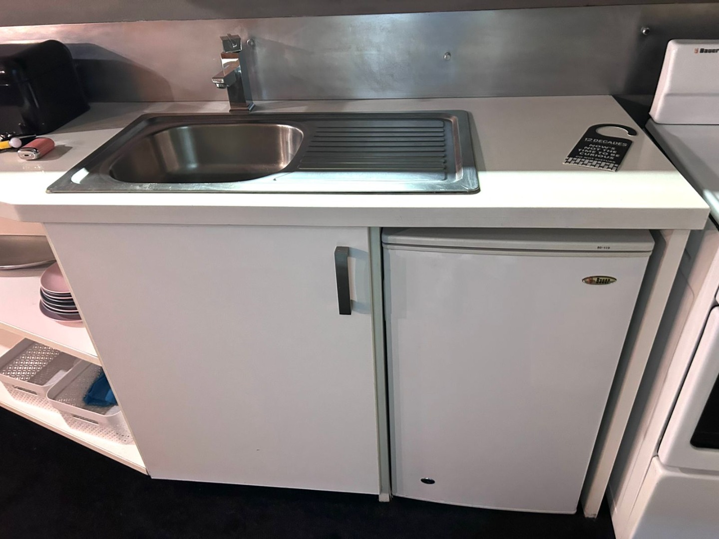 * Compact kitchen with essential appliances