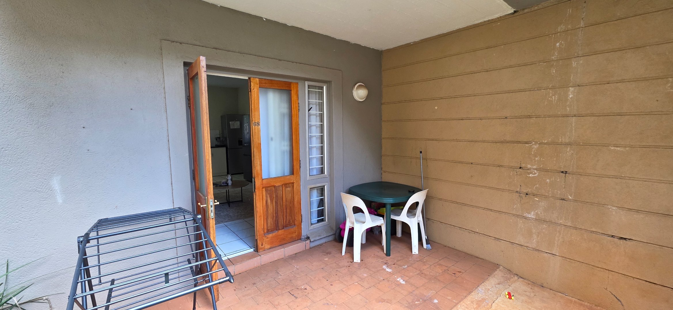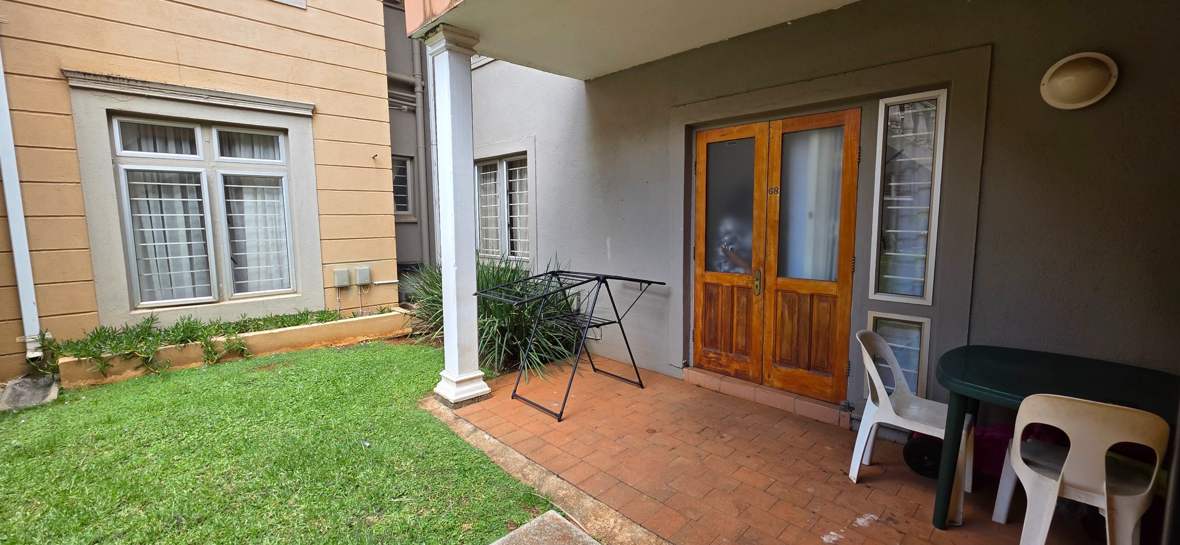 A standout feature is the private paved patio leading to a small garden area — ideal for relaxing or enjoying some outdoor space within a secure complex environment.