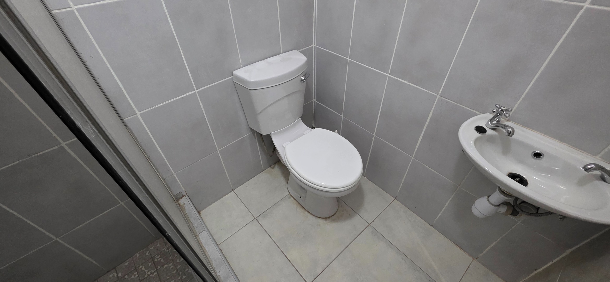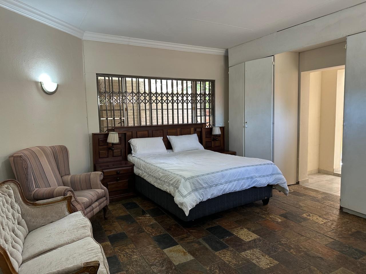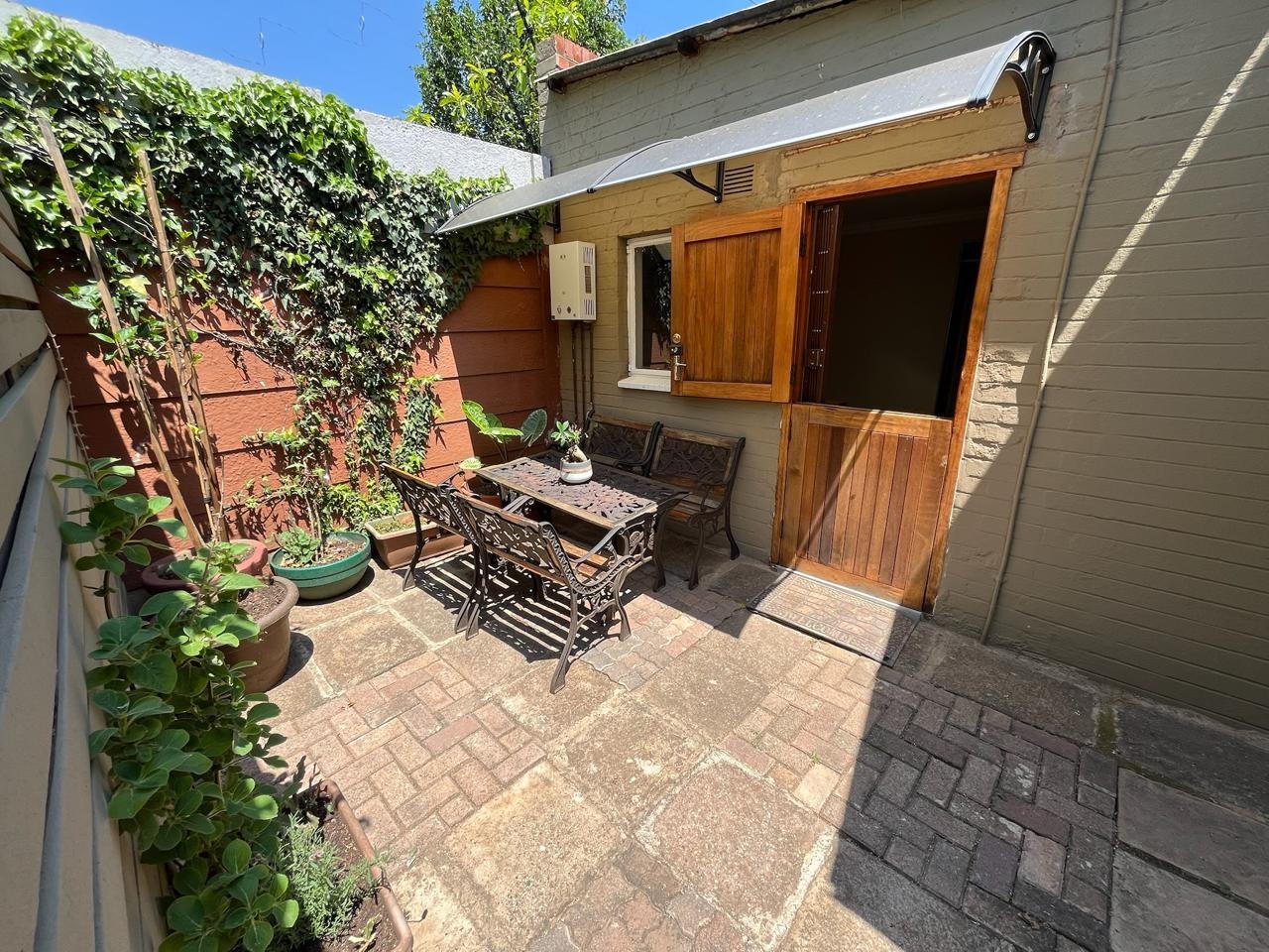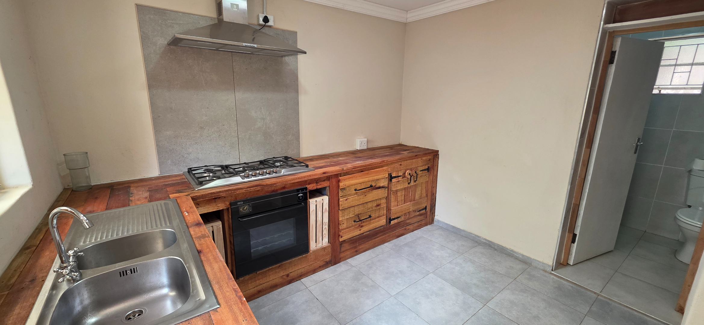The spacious bedroom suite offers built-in cupboards, soft lighting, and timeless vintage seating. The neat bathroom includes a shower, basin, and toilet in modern neutral tones. A single lock-up garage provides secure parking, with a private side entrance ensuring total independence.