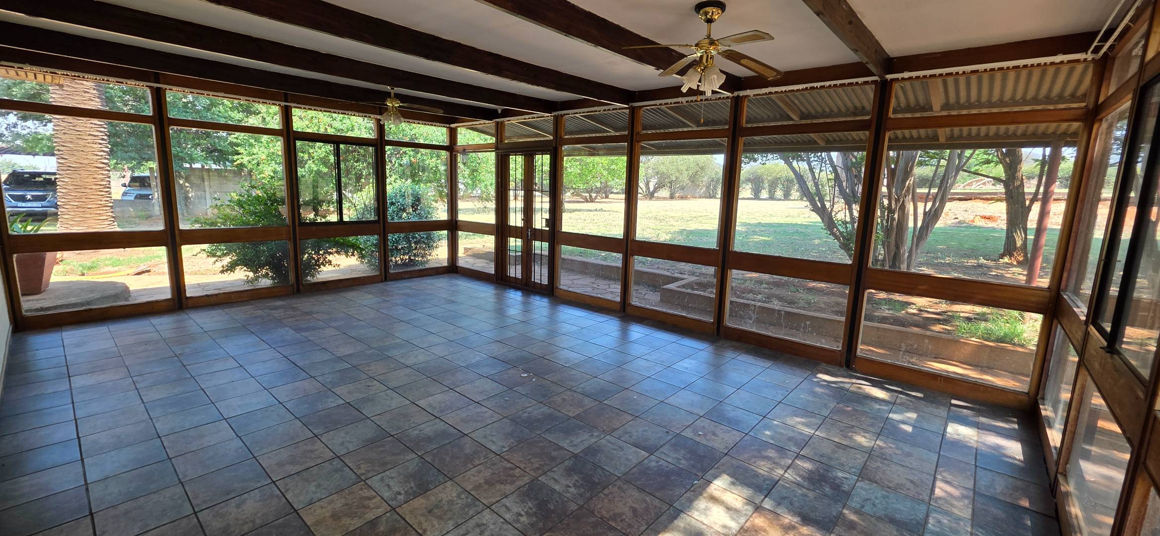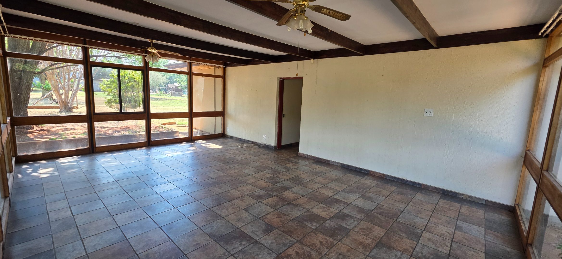 This spacious 115 sqm rental unit offers a comfortable living experience with 2 bedrooms and 1 bathroom, ideal for individuals or a small family. The property features a well-appointed kitchen, a dedicated lounge area, and two convenient open parking spaces. A standout feature is the expansive sunroom or enclosed patio, boasting abundant natural light through large windows, durable tiled flooring, and characterful exposed wooden ceiling beams. This versatile space provides panoramic garden views and is equipped with ceiling fans for comfort, creating an inviting area for relaxation or entertaining.