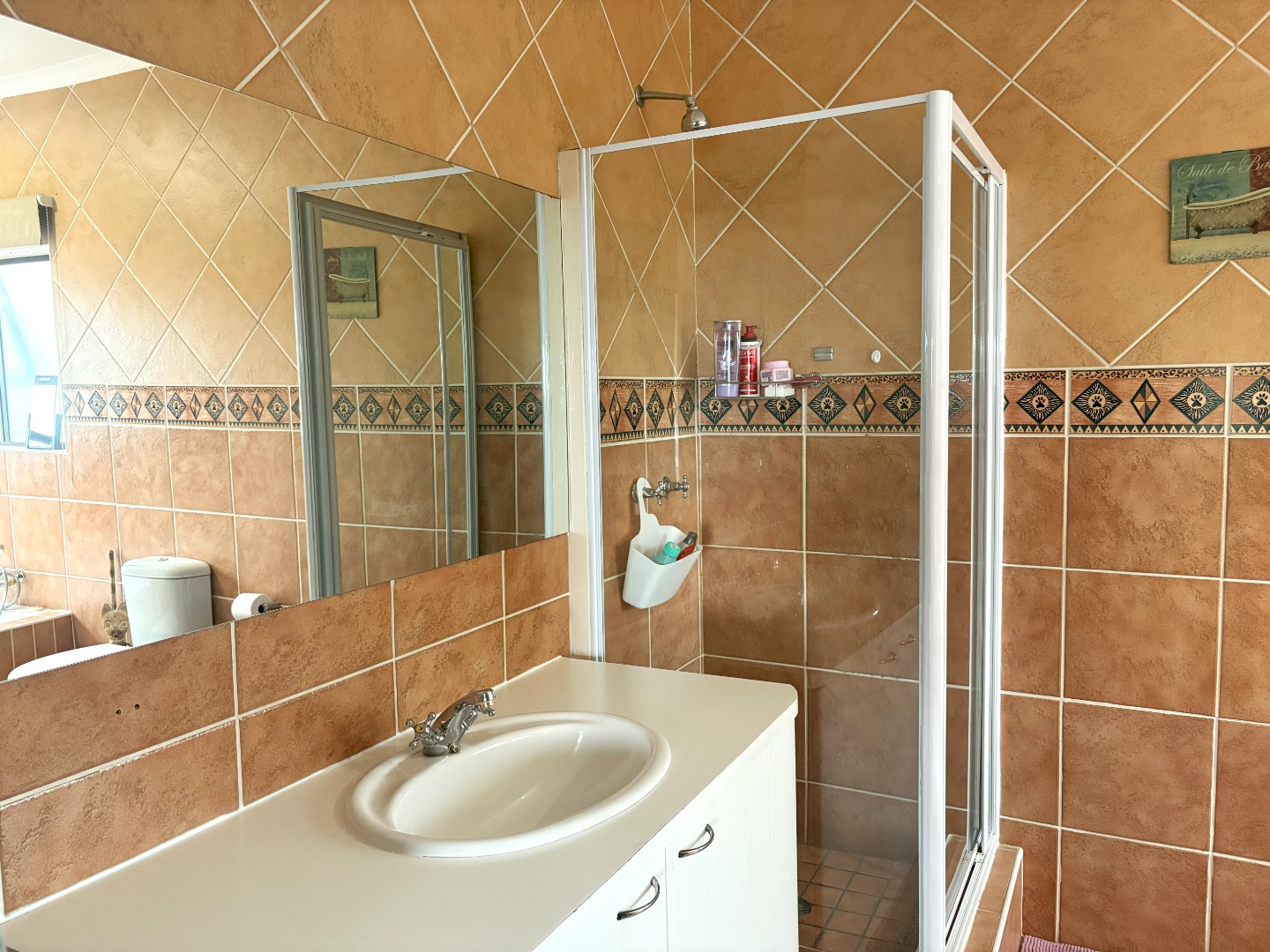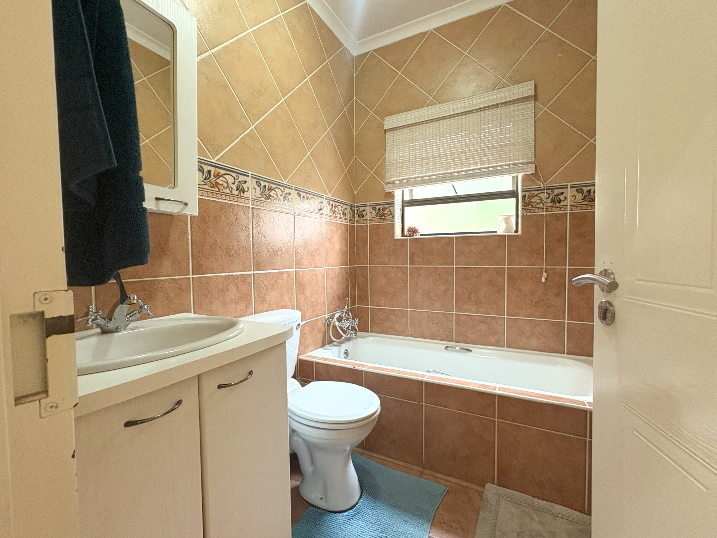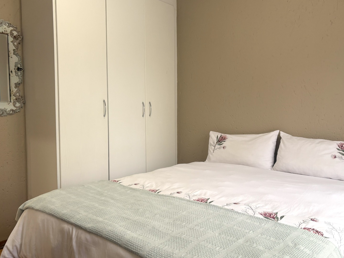 As you walk through the double wooden doors, you’re welcomed by a light-filled open-plan design that flows from the dining area into the lounge and kitchen. The spacious kitchen offers a separate scullery, room for a double fridge, and everything you need for effortless family living. Two well-sized bedrooms and a full bathroom are tucked away at the end of the home; ideal for children, guests, or even a home office.