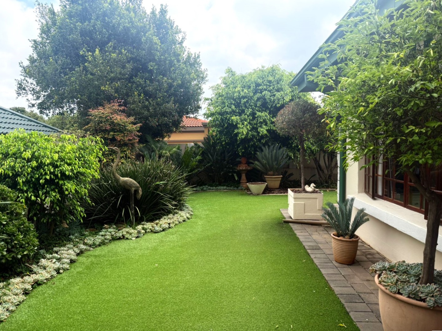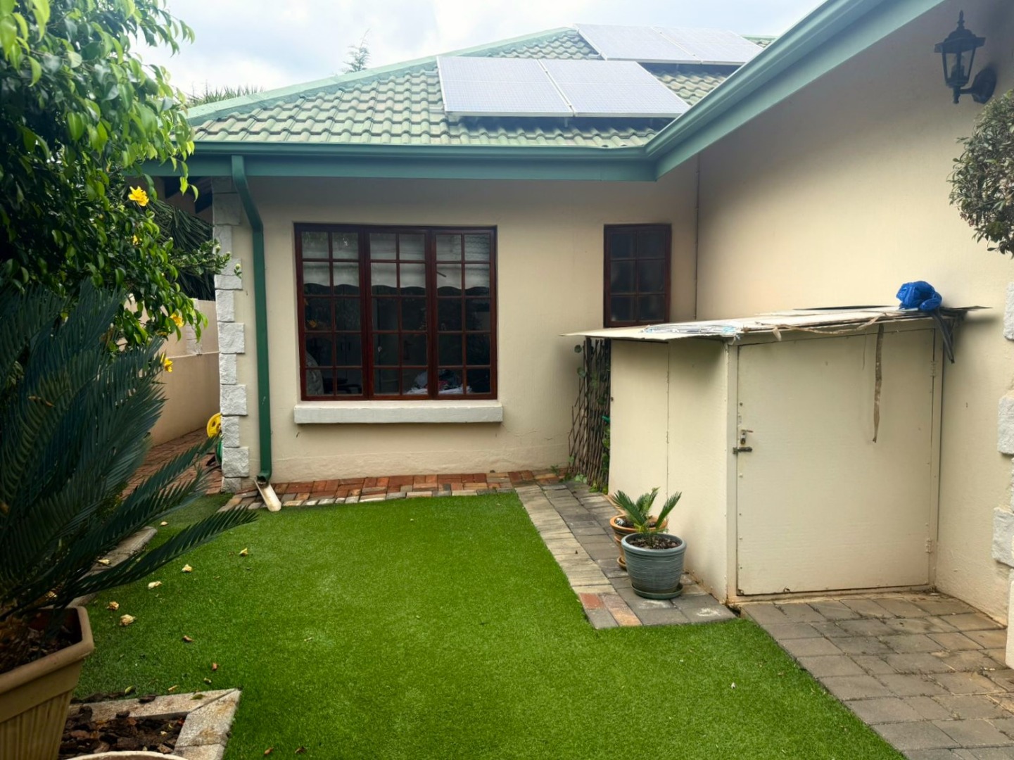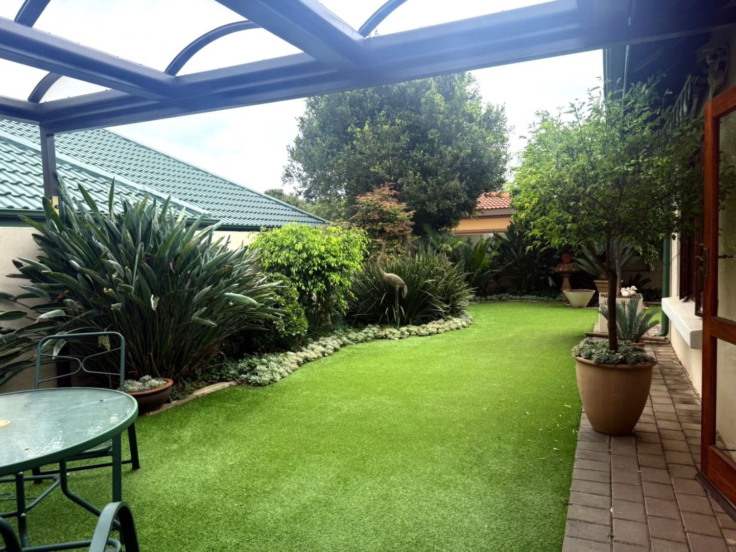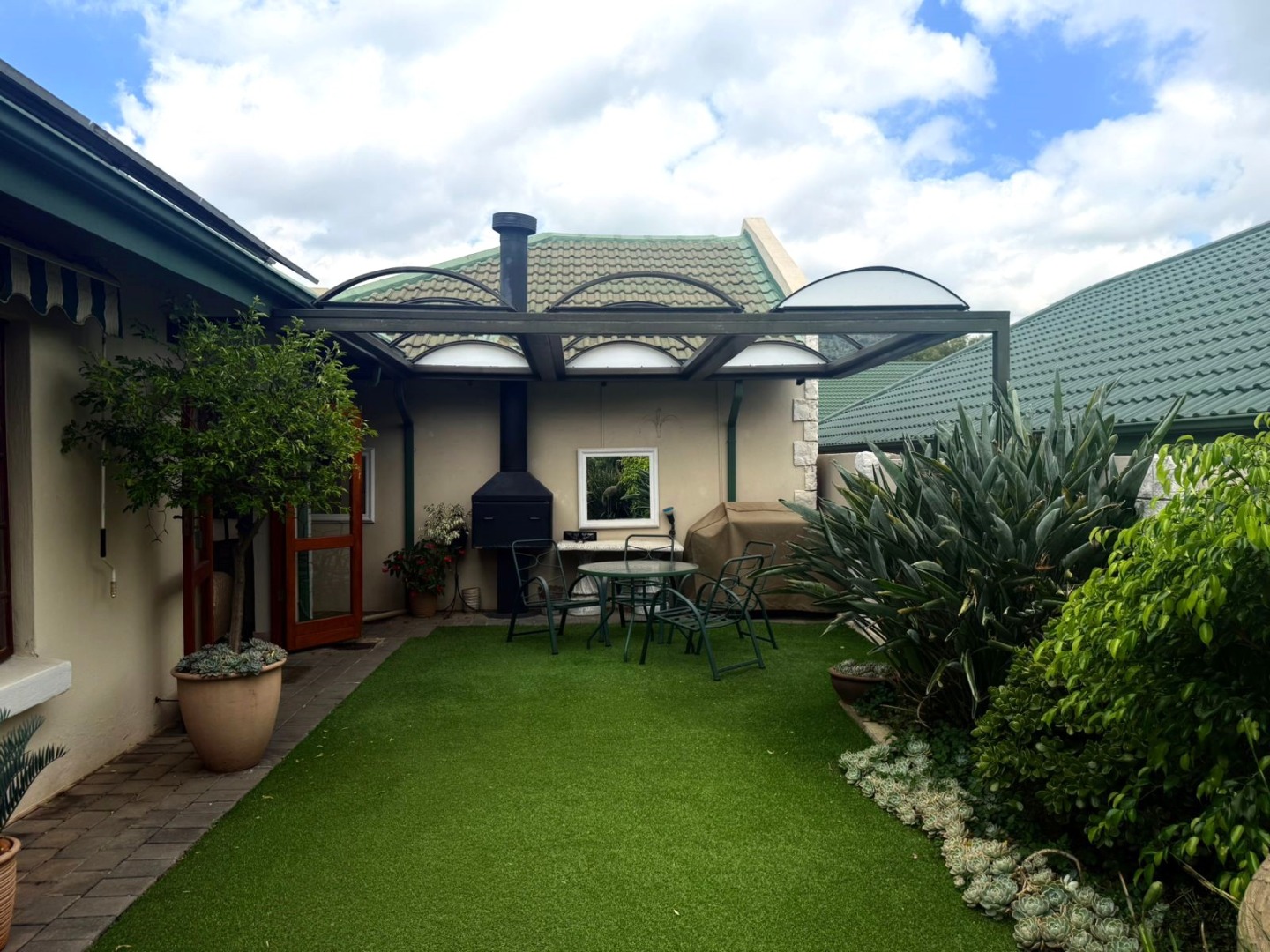 Step outside to a beautifully maintained, low maintenance garden with astroturf grass, perfect for easy living, morning coffees or relaxed family braais around the built in braai area.