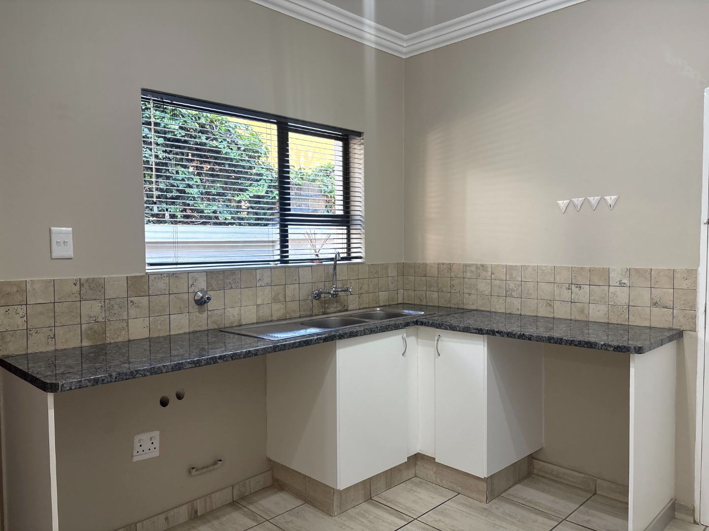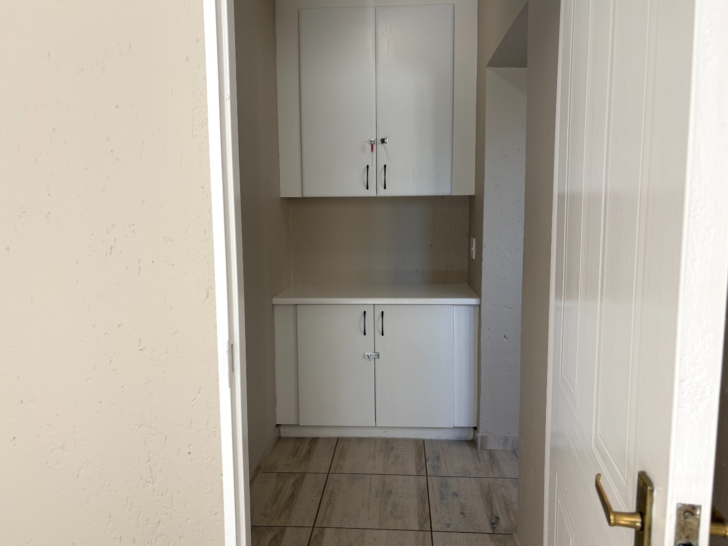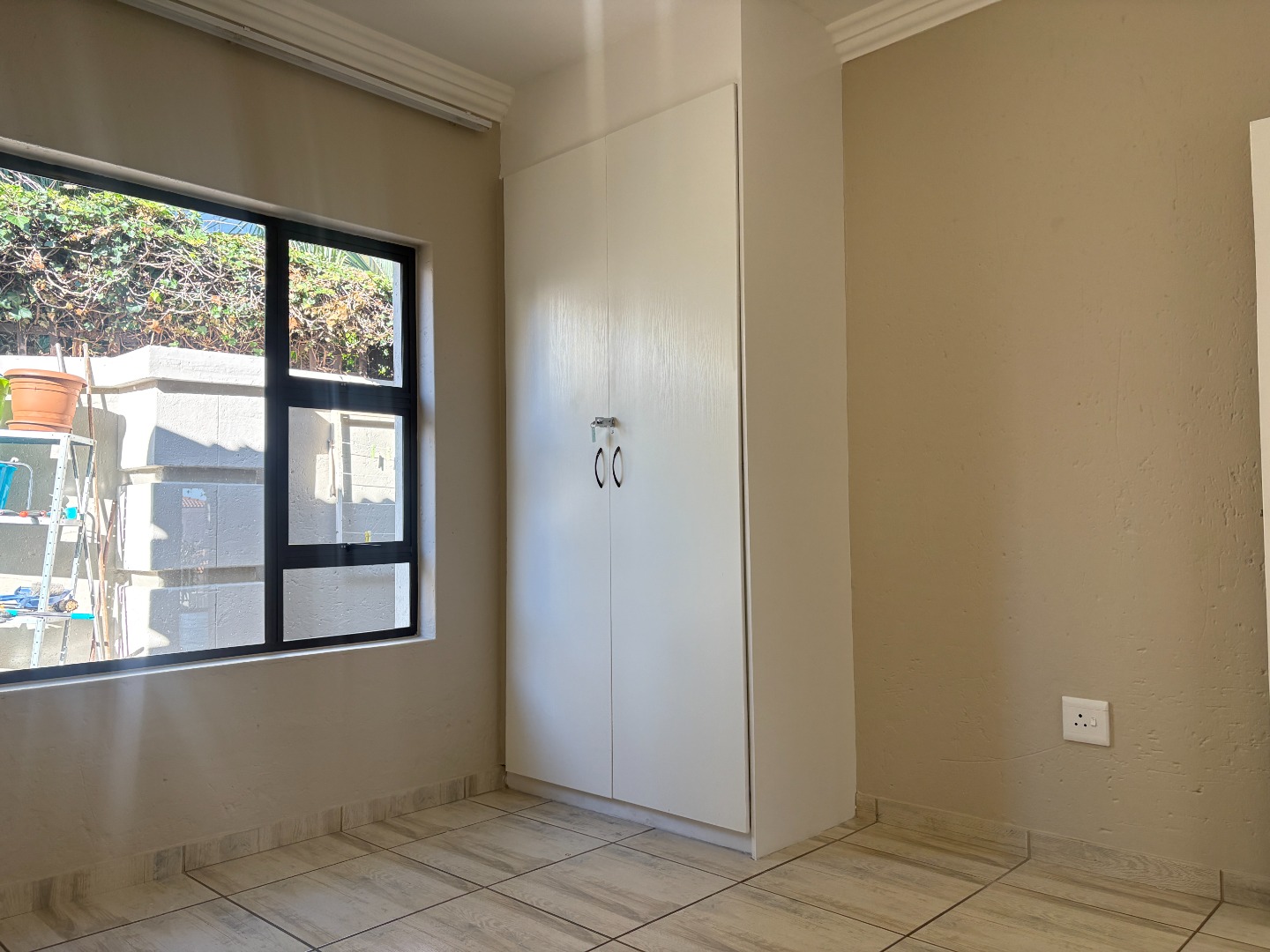 Step outside to a covered patio that’s ideal for hosting family braais or enjoying quiet evenings, overlooking a lush, private garden that invites relaxation and outdoor fun.