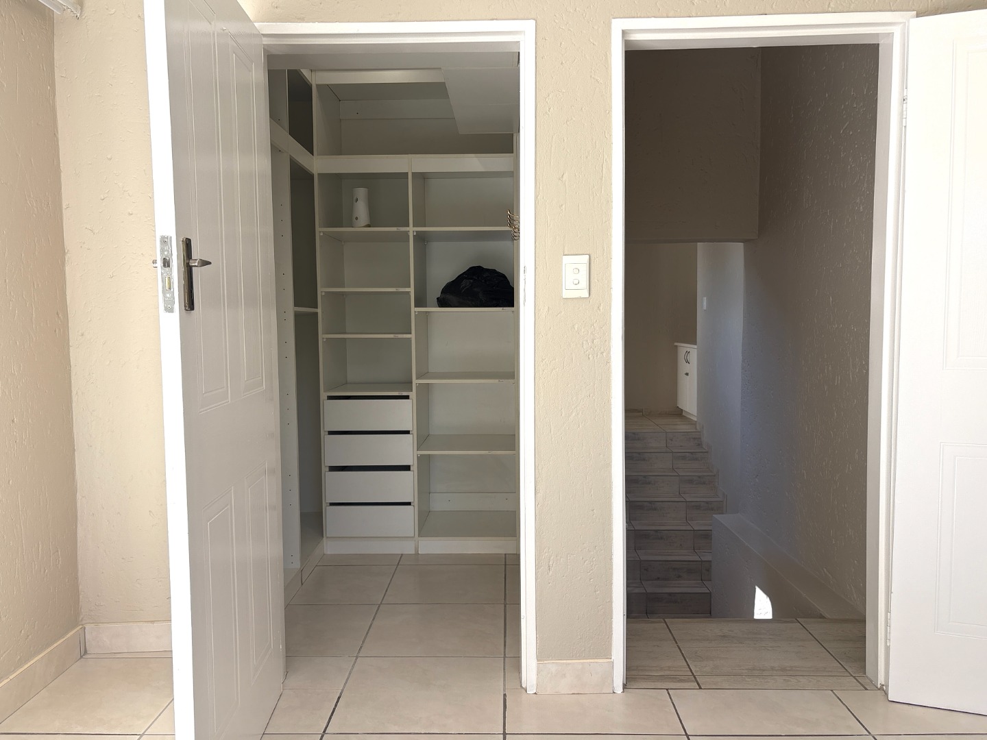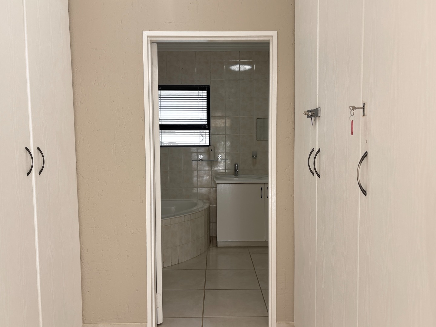 Step outside to a covered patio that’s ideal for hosting family braais or enjoying quiet evenings, overlooking a lush, private garden that invites relaxation and outdoor fun.