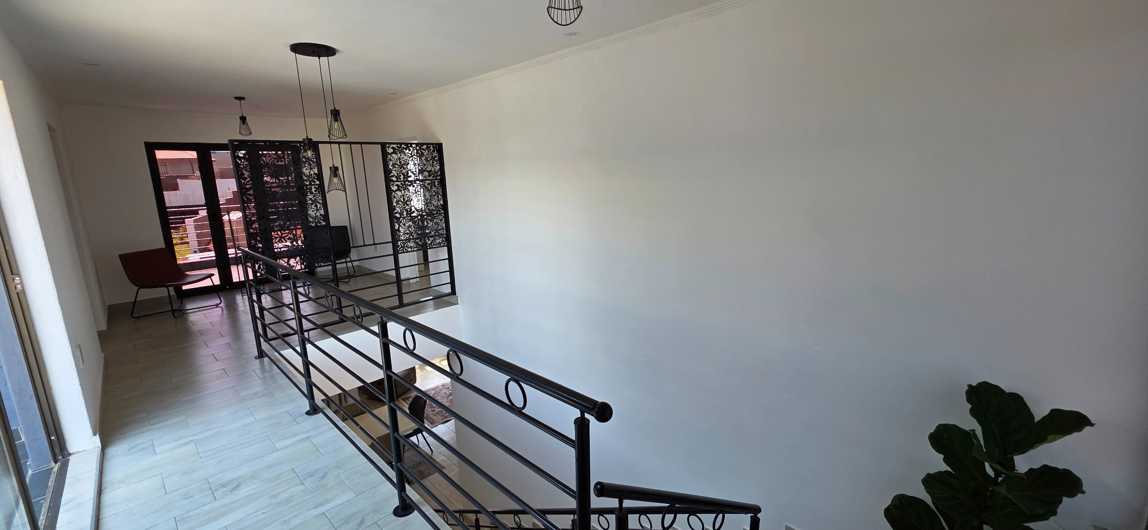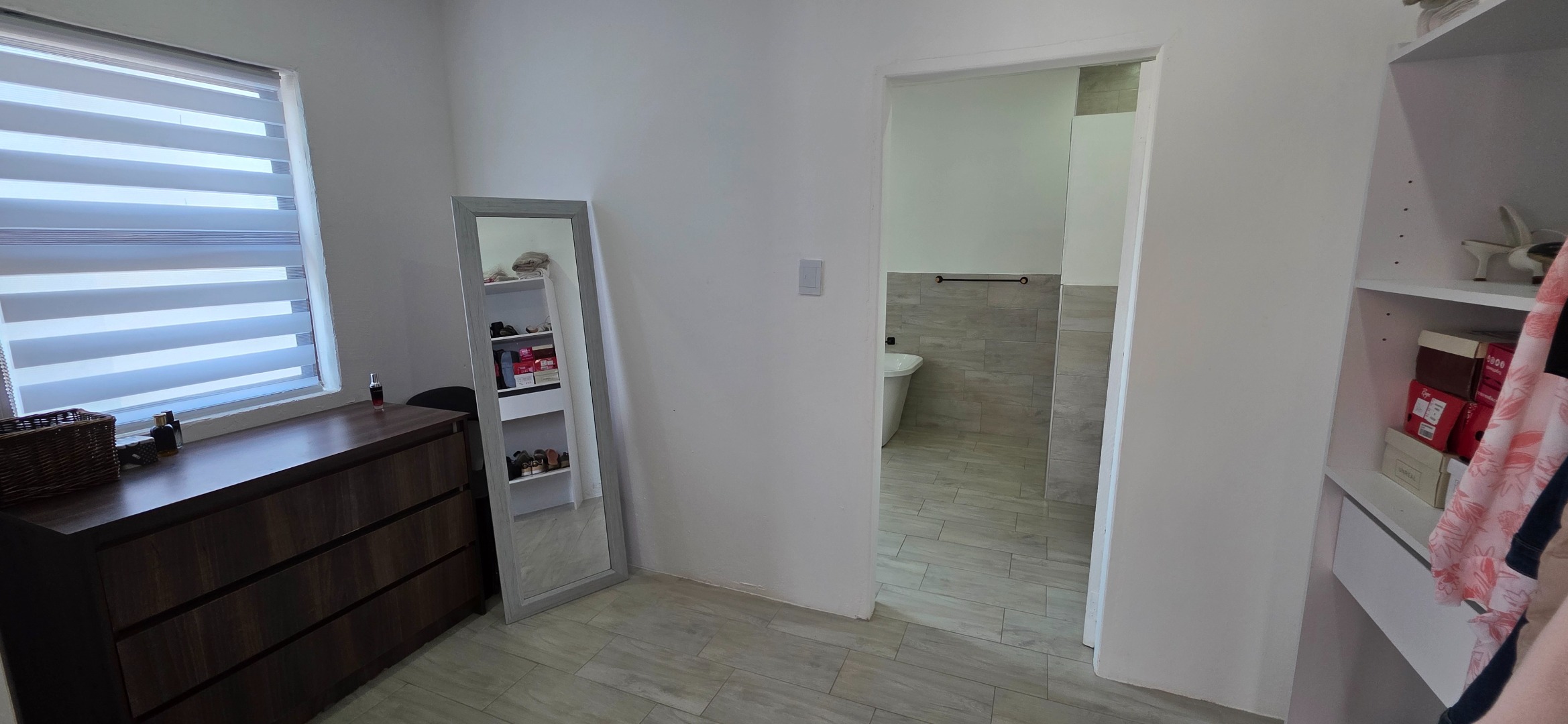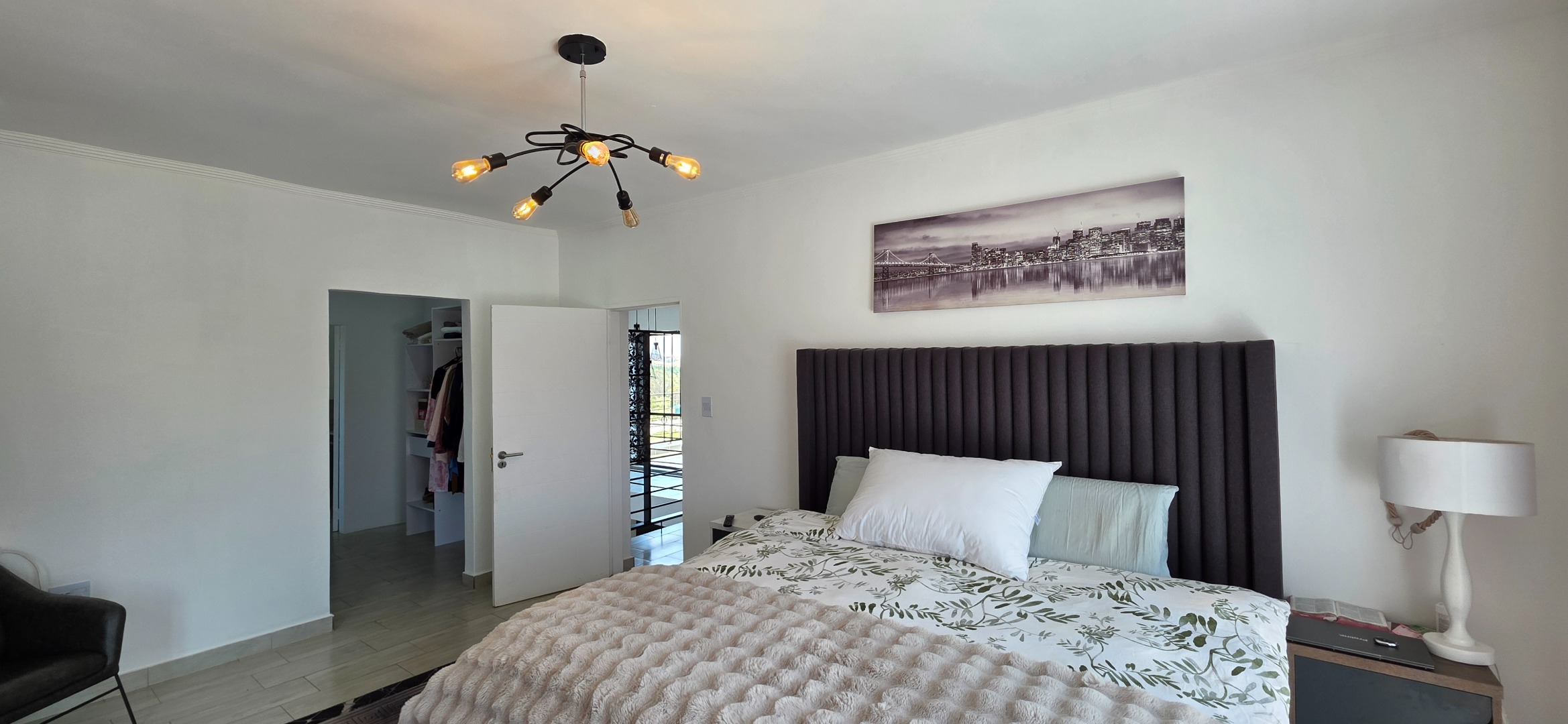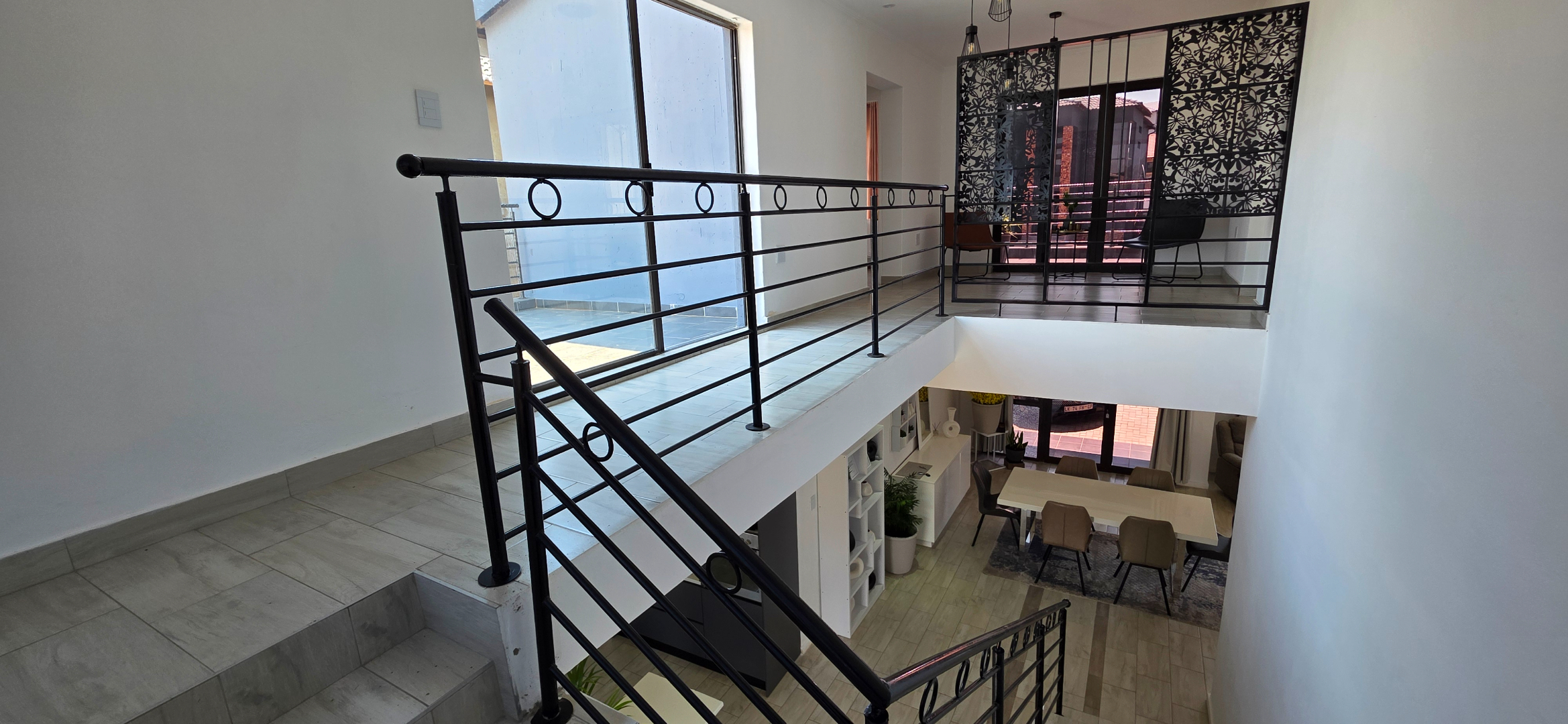 Discover modern living in this spacious 3-bedroom, 3-bathroom rental property located within a secure estate in Krugersdorp Central. Boasting a generous 240 sqm floor size, this home features an inviting open-plan layout that seamlessly connects the contemporary kitchen, dining area, and lounge. The kitchen is a highlight, equipped with sleek dark grey cabinetry, light countertops, and integrated appliances including a hob, oven, microwave, extractor fan, and dishwasher, all complemented by stylish tiled flooring and a stone-effect backsplash. Large windows and sliding doors ensure abundant natural light throughout the living spaces, enhancing the modern aesthetic.