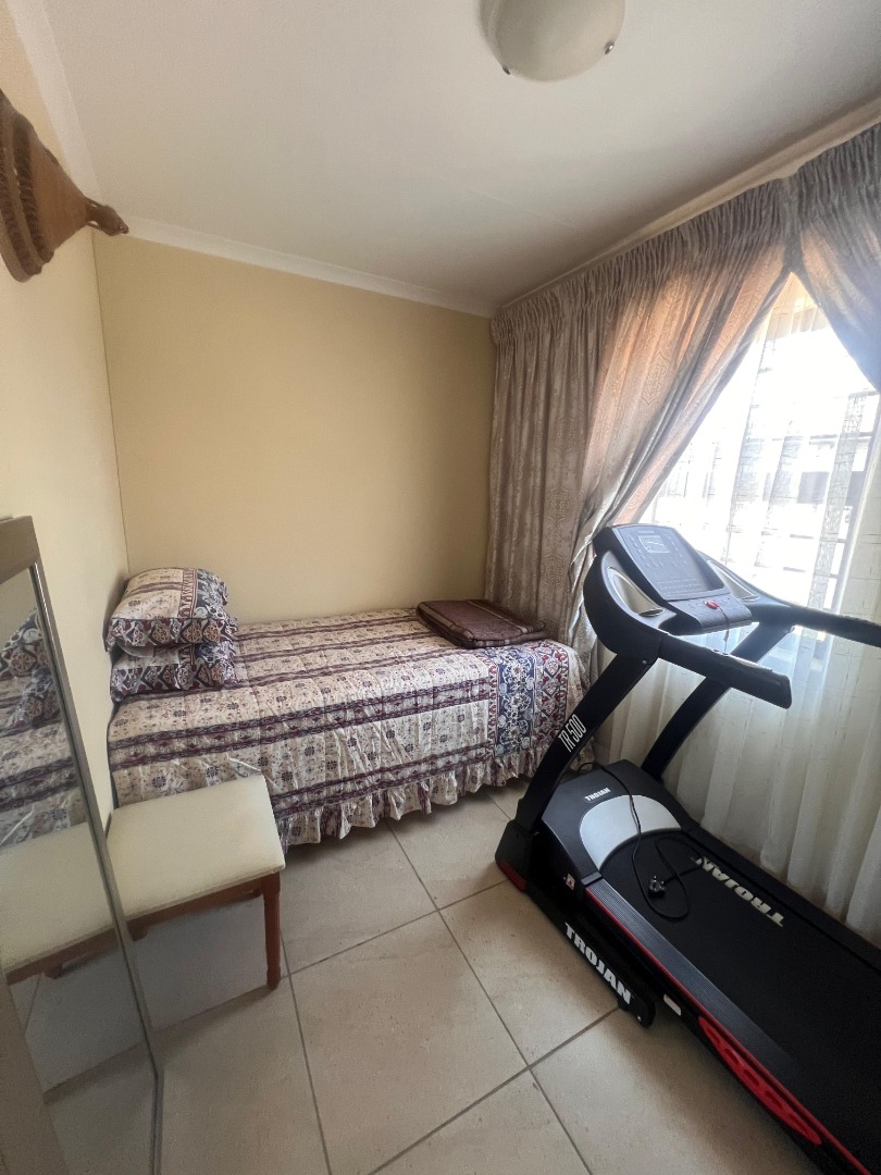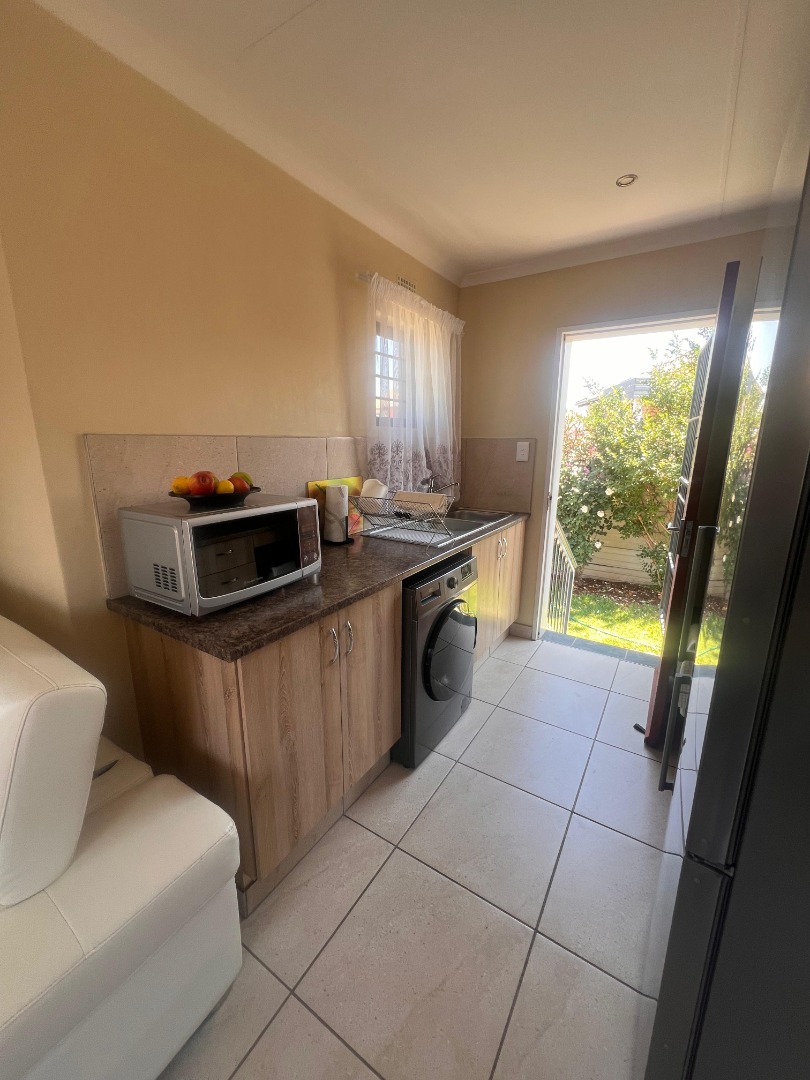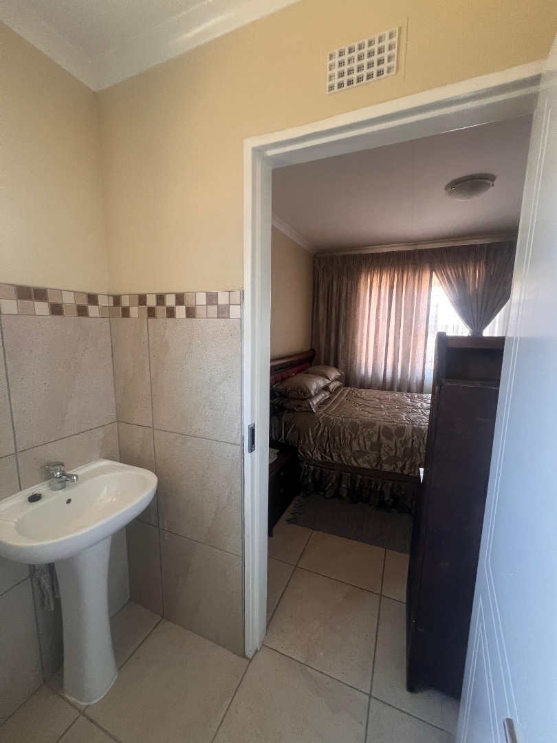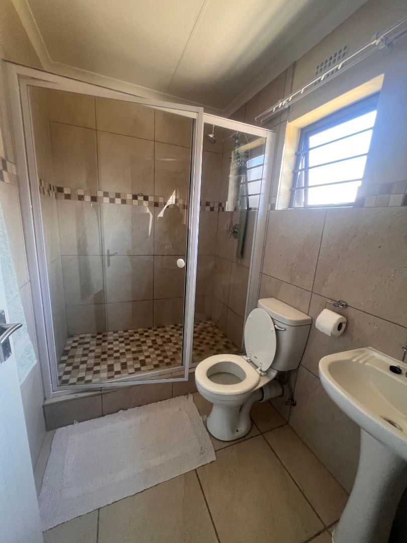 Discover this inviting 3-bedroom, 2-bathroom rental property situated within a secure estate in Mindalore, Krugersdorp. This home offers a practical layout designed for comfortable living, featuring a dedicated lounge area and a functional kitchen. The bedrooms are equipped with built-in wooden wardrobes, providing ample storage solutions, and benefit from tiled flooring for easy maintenance. The two bathrooms, including one en-suite, are compact yet functional, each fitted with a walk-in shower, pedestal sink, and natural light from a window. This property is ideal for families or professionals seeking a secure and convenient living space in Krugersdorp. The tiled interiors throughout ensure durability and ease of cleaning, while the presence of a garden and paved areas offers outdoor enjoyment and practicality. With two dedicated parking spaces, convenience is further enhanced for residents. Security is a key feature of this rental, being part of a gated community and estate, providing peace of mind. The property is also equipped with fibre connectivity, catering to modern communication needs, and includes a solar geyser, contributing to energy efficiency and reduced utility costs. Mindalore, located in Krugersdorp, South Africa, offers a suburban lifestyle with access to local amenities and transport routes, making it a desirable area for residents. Key Features: * 3 Bedrooms * 2 Bathrooms (1 En-suite) * 1 Lounge * 1 Kitchen * 2 Parking Spaces * Private Garden * Paved Areas * Fibre Ready * Solar Geyser * Gated Community Access