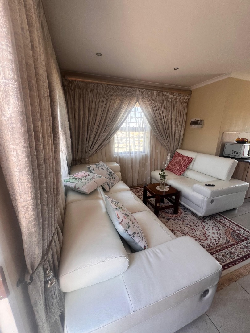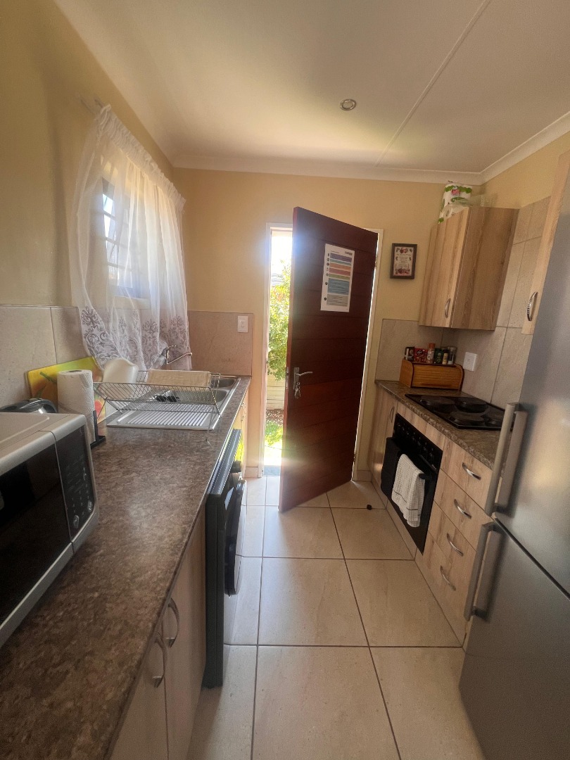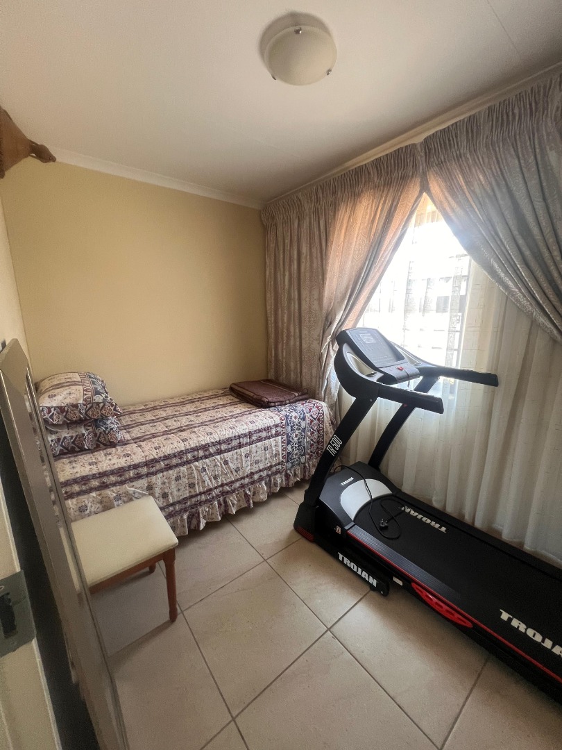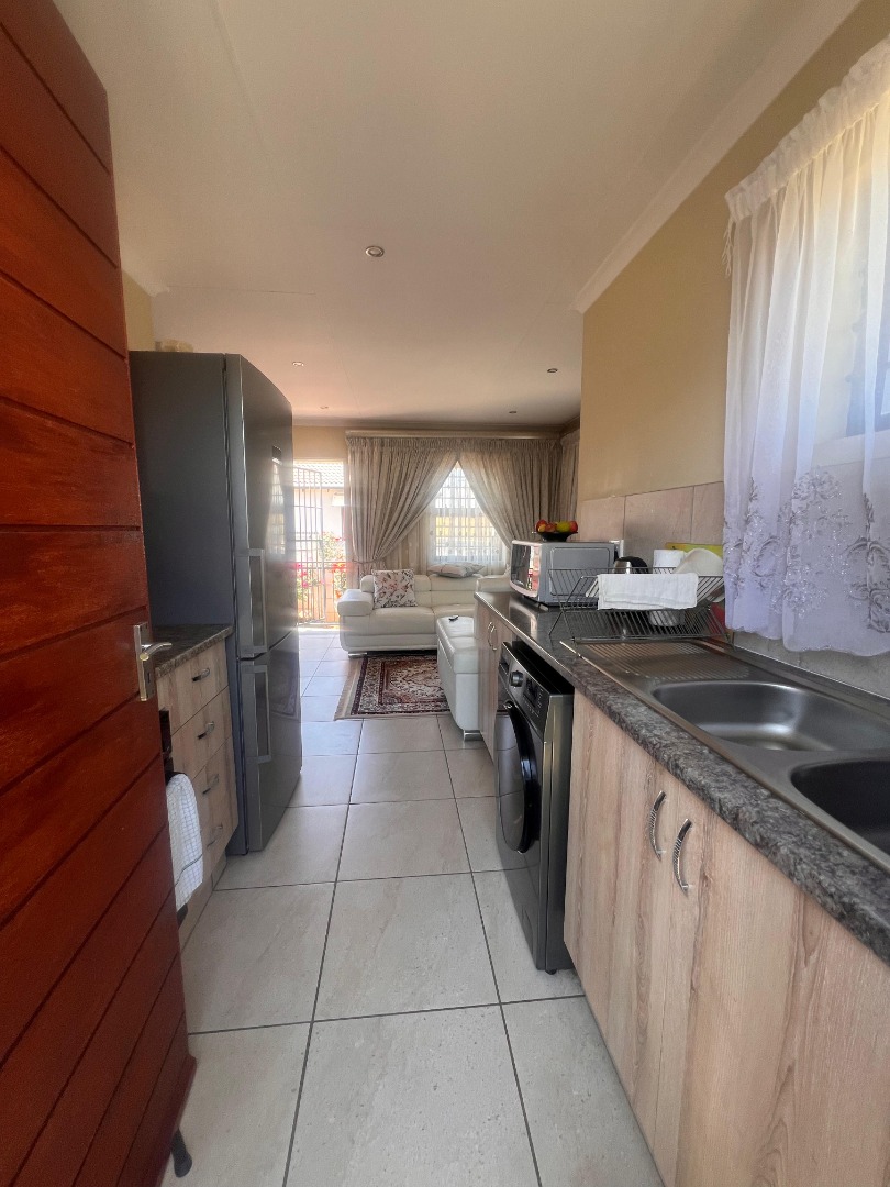 Discover this inviting 3-bedroom, 2-bathroom rental property situated within a secure estate in Mindalore, Krugersdorp. This home offers a practical layout designed for comfortable living, featuring a dedicated lounge area and a functional kitchen. The bedrooms are equipped with built-in wooden wardrobes, providing ample storage solutions, and benefit from tiled flooring for easy maintenance. The two bathrooms, including one en-suite, are compact yet functional, each fitted with a walk-in shower, pedestal sink, and natural light from a window. This property is ideal for families or professionals seeking a secure and convenient living space in Krugersdorp. The tiled interiors throughout ensure durability and ease of cleaning, while the presence of a garden and paved areas offers outdoor enjoyment and practicality. With two dedicated parking spaces, convenience is further enhanced for residents. Security is a key feature of this rental, being part of a gated community and estate, providing peace of mind. The property is also equipped with fibre connectivity, catering to modern communication needs, and includes a solar geyser, contributing to energy efficiency and reduced utility costs. Mindalore, located in Krugersdorp, South Africa, offers a suburban lifestyle with access to local amenities and transport routes, making it a desirable area for residents. Key Features: * 3 Bedrooms * 2 Bathrooms (1 En-suite) * 1 Lounge * 1 Kitchen * 2 Parking Spaces * Private Garden * Paved Areas * Fibre Ready * Solar Geyser * Gated Community Access