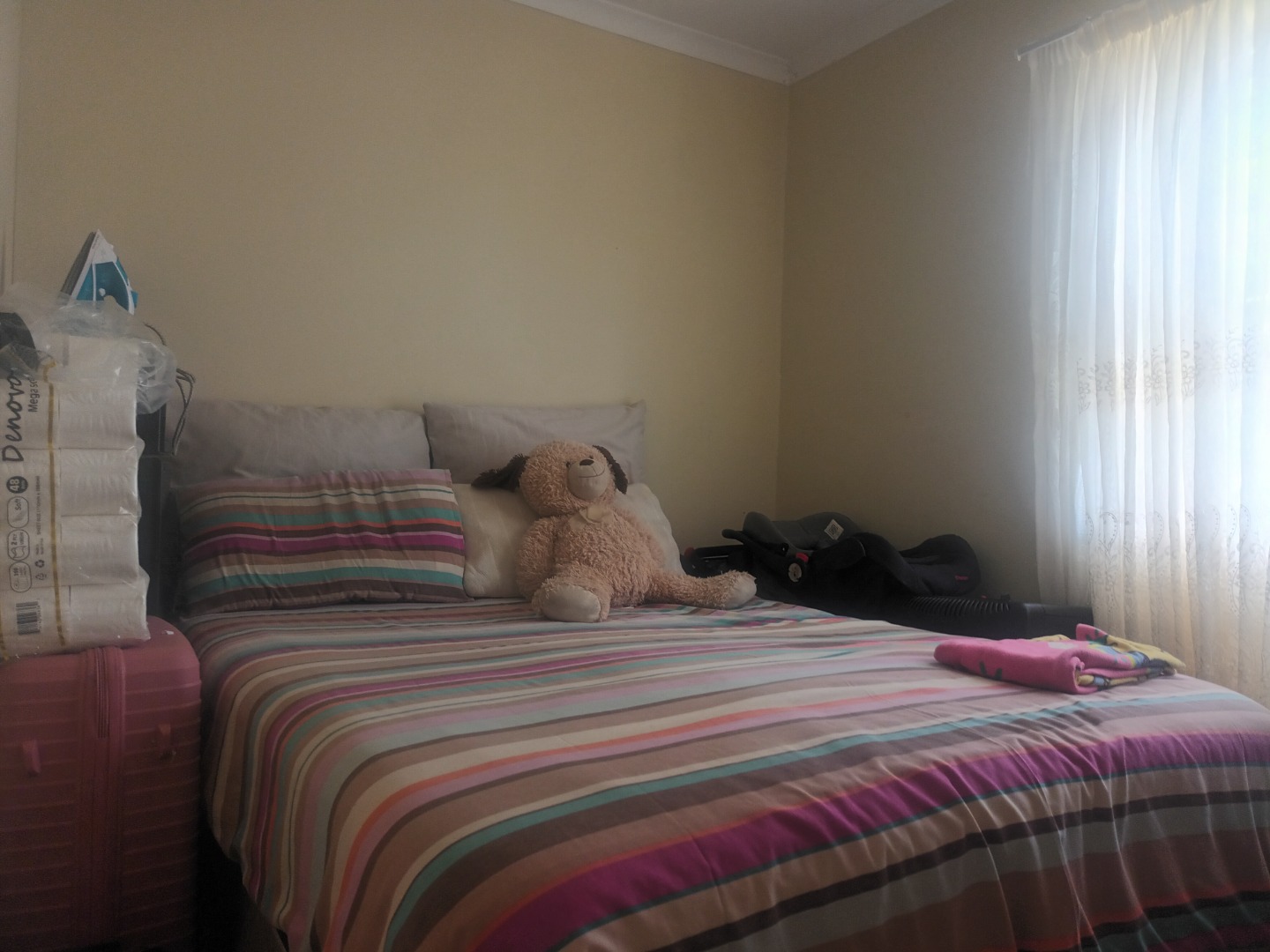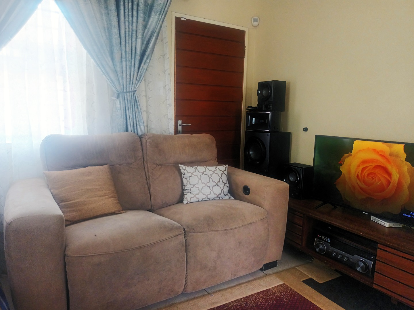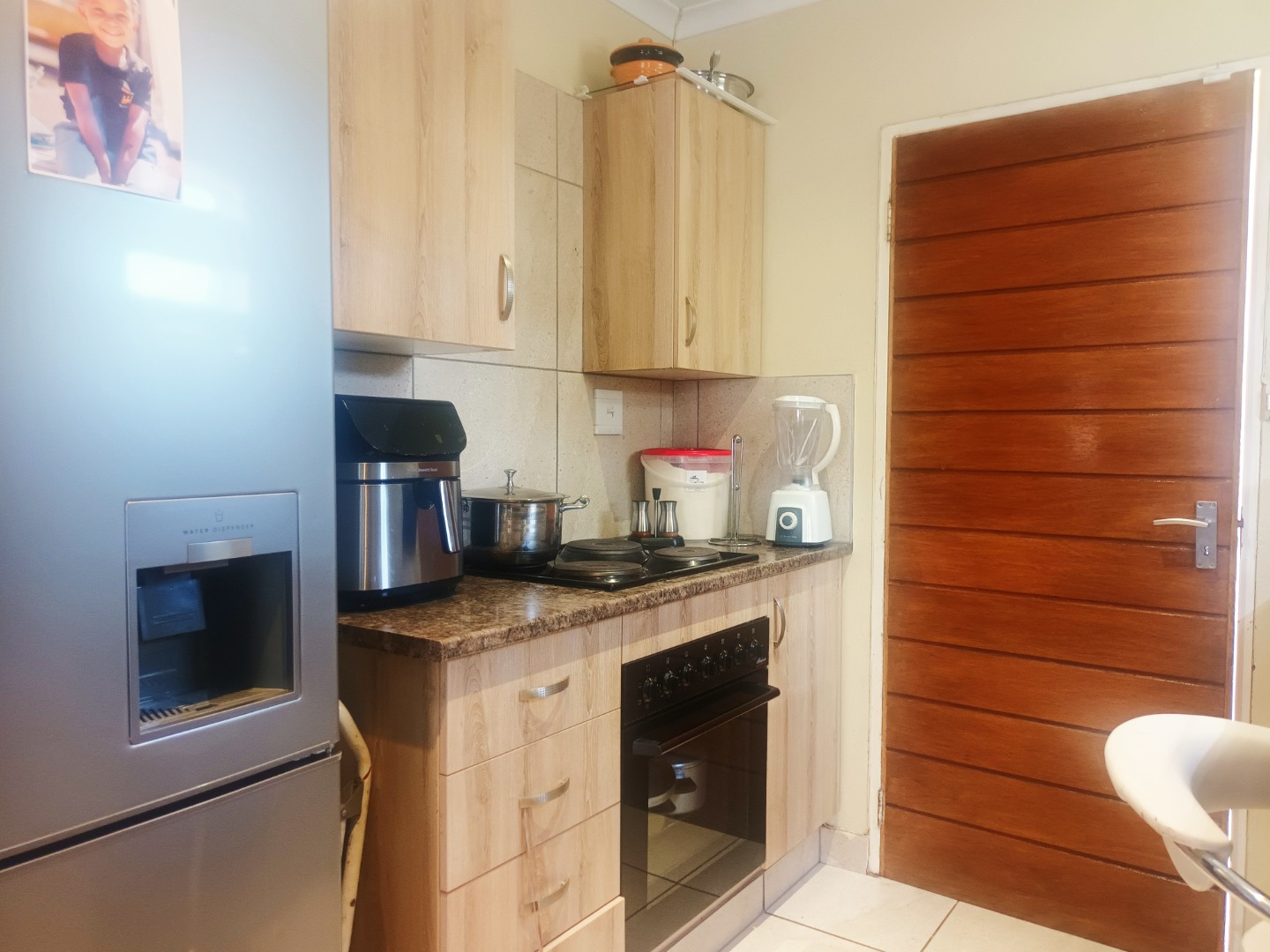 Each of the three bedrooms provides a comfortable retreat, while the two bathrooms, including one en-suite, cater to the household's needs. Security is enhanced with burglar bars on windows, ensuring peace of mind. The property also features a garden and paving, offering outdoor space for enjoyment.