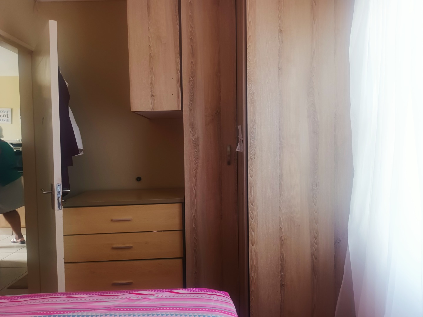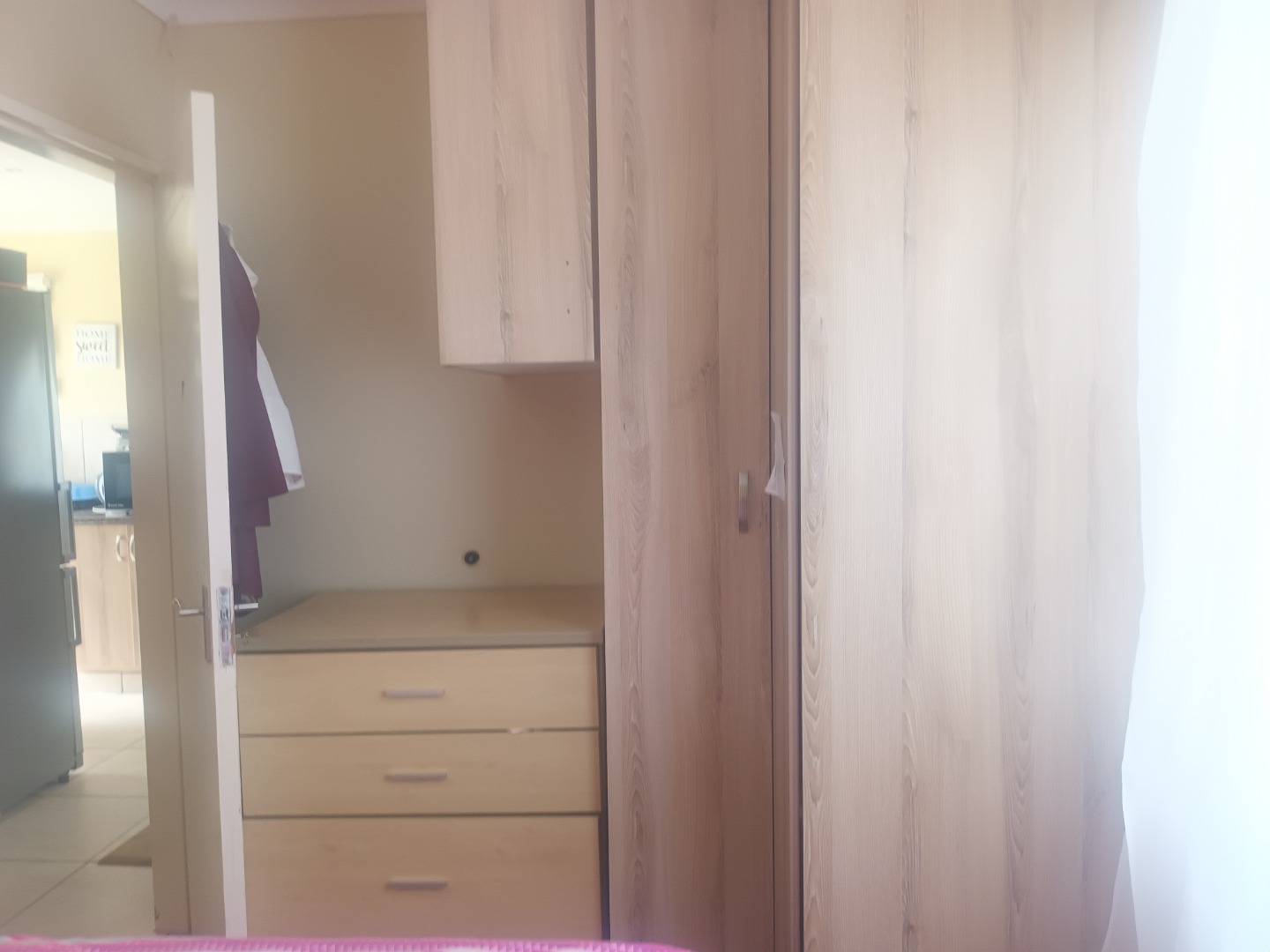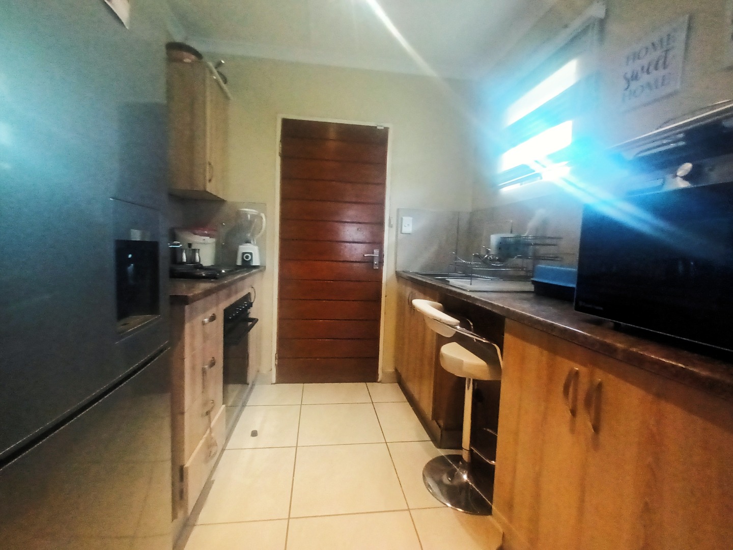 Each of the three bedrooms provides a comfortable retreat, while the two bathrooms, including one en-suite, cater to the household's needs. Security is enhanced with burglar bars on windows, ensuring peace of mind. The property also features a garden and paving, offering outdoor space for enjoyment.