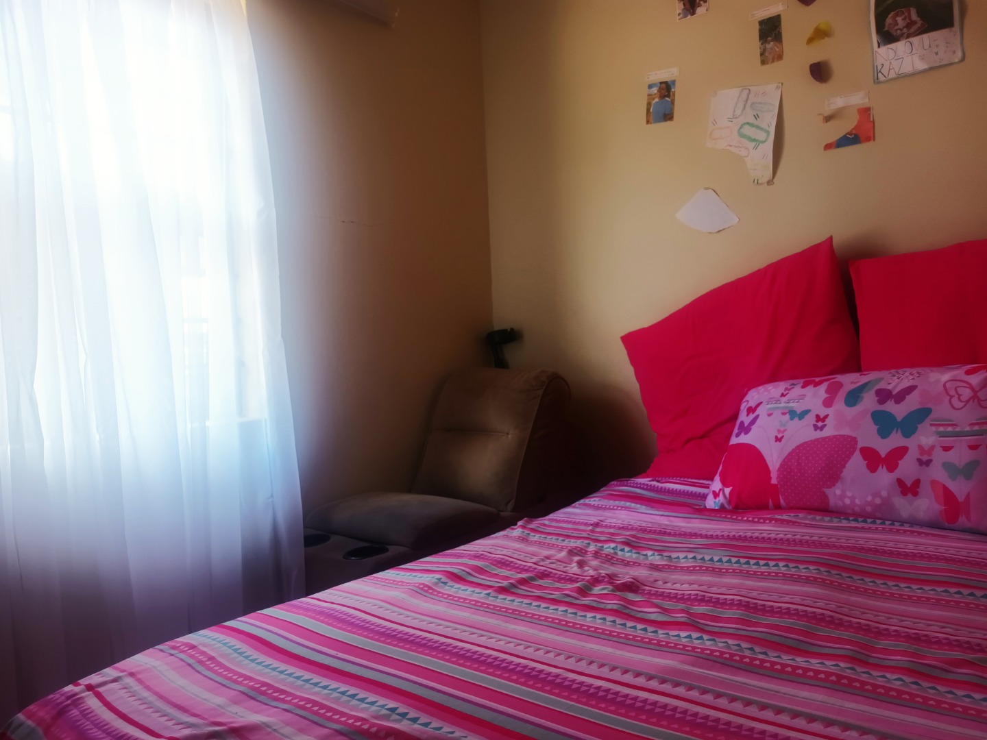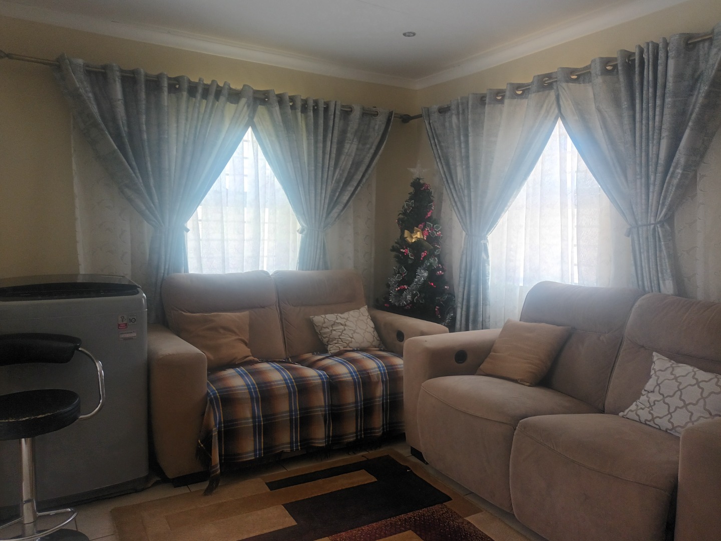 This inviting single-story house, available for rent in the suburban area of Mindalore, Krugersdorp, offers comfortable living across 160 sqm on a 300 sqm erf. The modern brick exterior with a tiled roof presents a neat kerb appeal, complemented by a well-maintained lawn and totally walled perimeter for privacy and security. This residence features three bedrooms and two bathrooms, including a convenient en-suite, making it ideal for families or professionals seeking a functional and welcoming home.