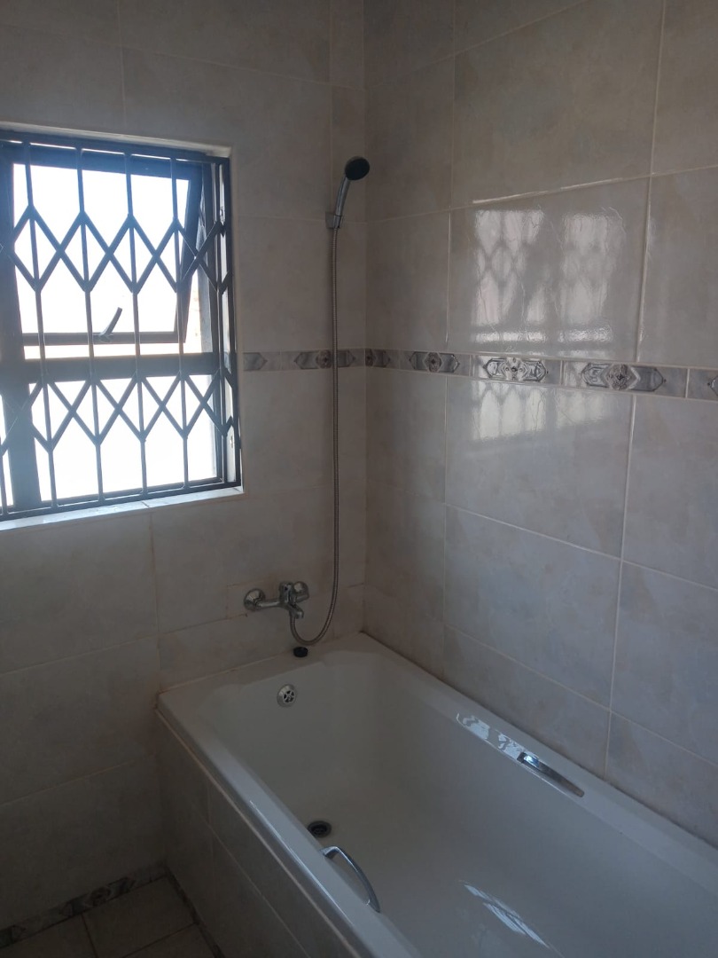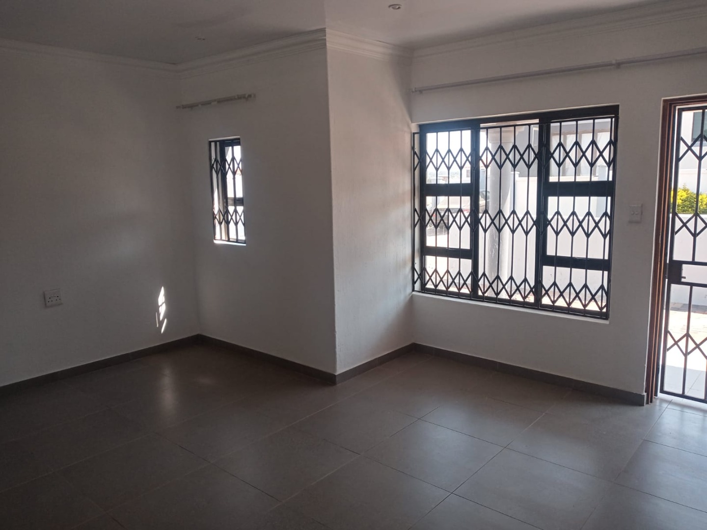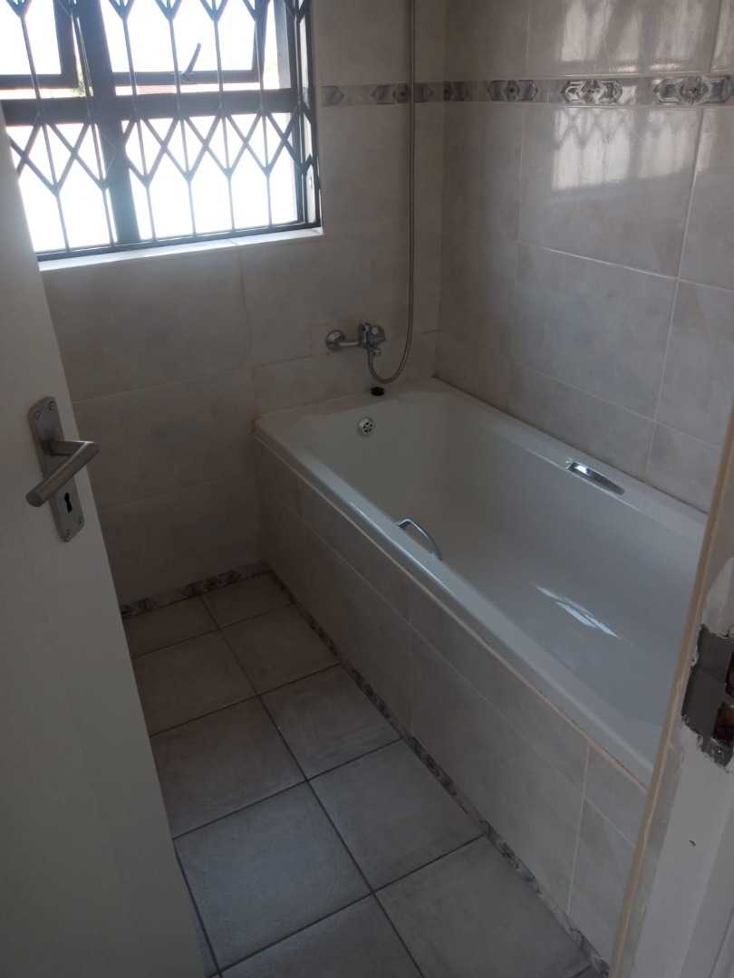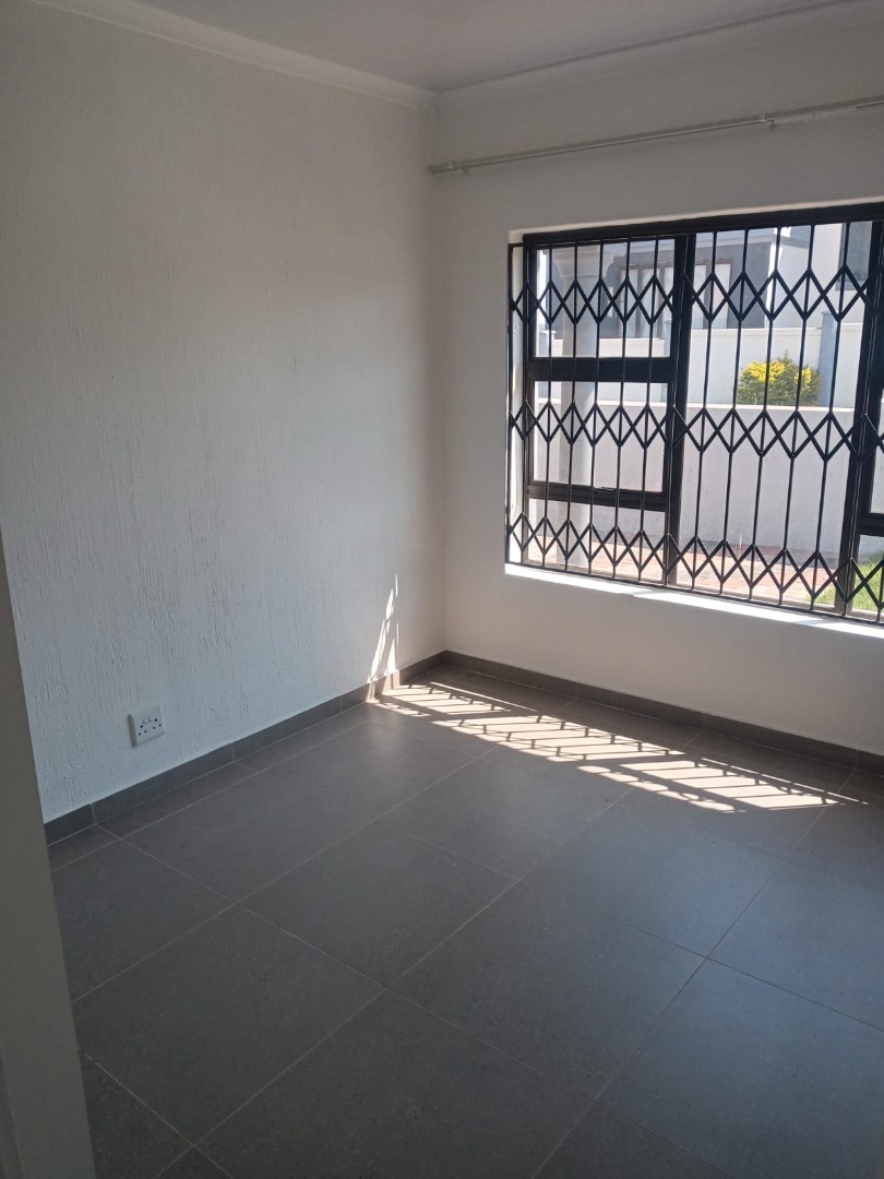The modern tiled kitchen is equipped with ample cupboard space, room for one appliance, and a double-door fridge. The small wrap-around garden adds a touch of greenery and outdoor space, ideal for relaxing or light gardening. With a single garage and additional open parking available, this home offers practical living with the following utilities excluded from the rent: pre-paid electricity, water, sewerage and refuse. Don’t miss out—call or WhatsApp today to schedule your viewing!