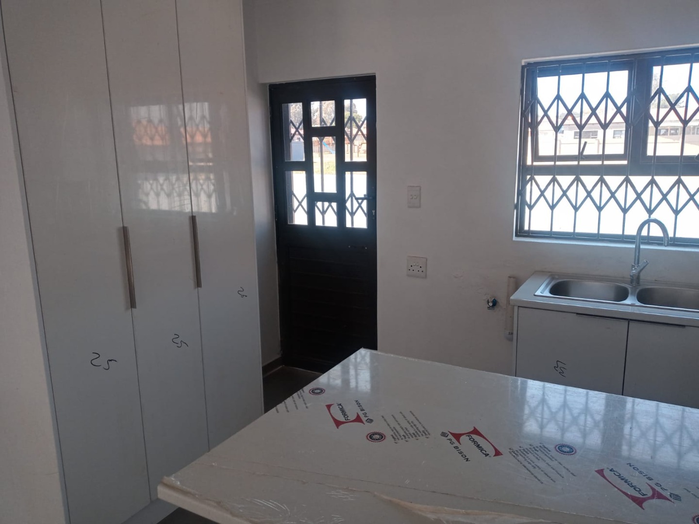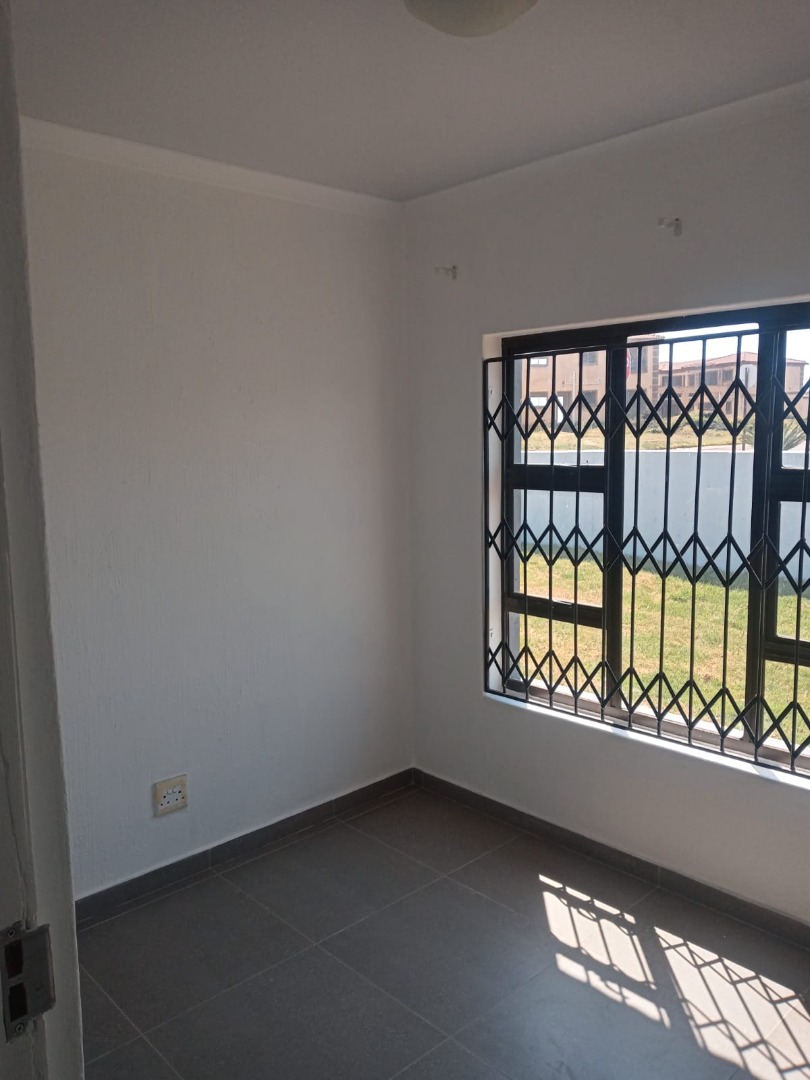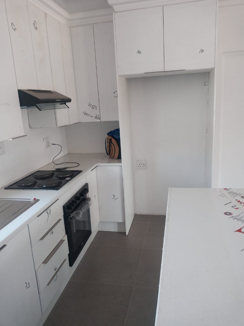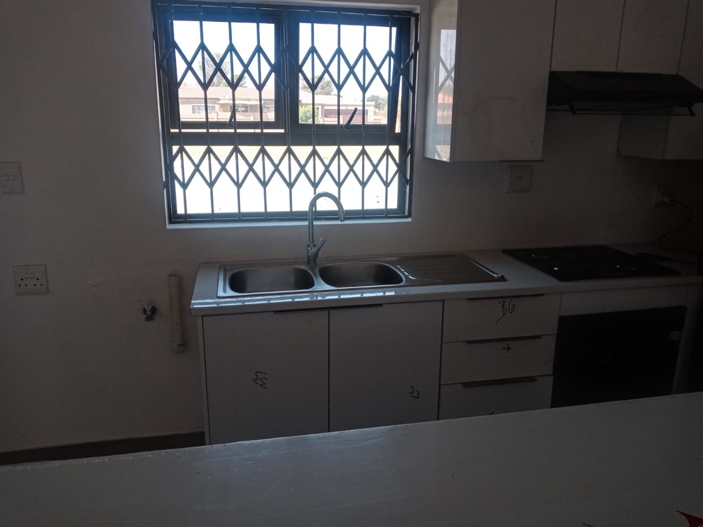 The modern tiled kitchen is equipped with ample cupboard space, room for one appliance, and a double-door fridge. The small wrap-around garden adds a touch of greenery and outdoor space, ideal for relaxing or light gardening. With a single garage and additional open parking available, this home offers practical living with the following utilities excluded from the rent: pre-paid electricity, water, sewerage and refuse. Don’t miss out—call or WhatsApp today to schedule your viewing!