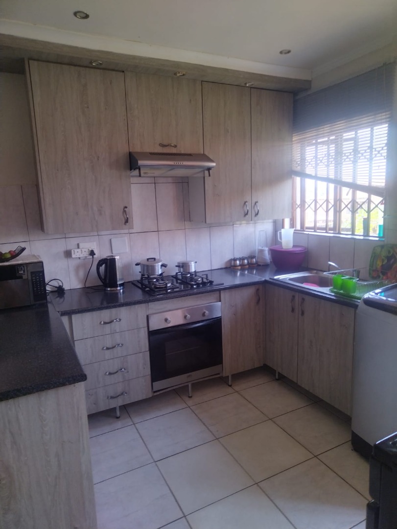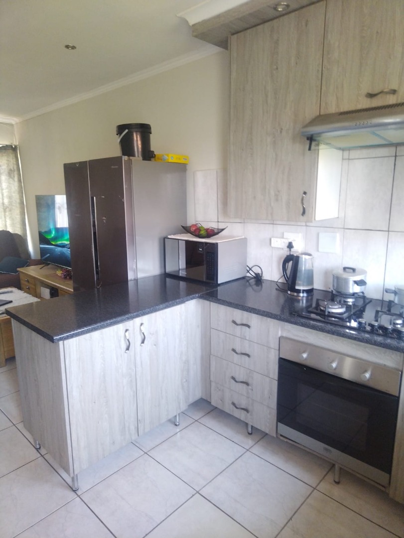 This contemporary residence offers a refined rental opportunity within the established suburban estate of Quellerie Park, Krugersdorp. Spanning a generous 375.00 square metres, this property is meticulously designed for comfortable living, featuring three well-proportioned bedrooms and two bathrooms, including a private en-suite for the main bedroom. The interior boasts an inviting open-plan layout, seamlessly connecting the lounge area with a modern kitchen, ideal for both daily living and entertaining. The kitchen is a focal point, equipped with sleek light wood-grain cabinetry, durable dark granite-style countertops, and integrated appliances including a built-in oven, gas hob, and extractor fan. Tiled flooring extends throughout the entire home, ensuring both aesthetic appeal and ease of maintenance. Recessed ceiling lighting enhances the contemporary ambiance, while security bars on windows and a security gate provide peace of mind. The property further benefits from a gas geyser, contributing to energy efficiency. Externally, the residence provides practical amenities including a double garage and two additional parking spaces, catering to multiple vehicles. A private garden offers a tranquil outdoor space, ideal for relaxation or recreation, and the property is pet-friendly, accommodating furry companions. Situated within a suburban estate, residents benefit from a secure environment with controlled access. Quellerie Park is a desirable residential area in Krugersdorp, offering convenient access to local amenities and transport links, making it an excellent choice for families or professionals seeking a well-appointed home. Key Features: * Three Bedrooms, Two Bathrooms (One En-suite) * Modern Open-Plan Kitchen with Gas Hob * Tiled Flooring Throughout * Double Garage and Two Parking Spaces * Private Garden * Pet-Friendly * Enhanced Security with Burglar Bars and Security Gate * Gas Geyser