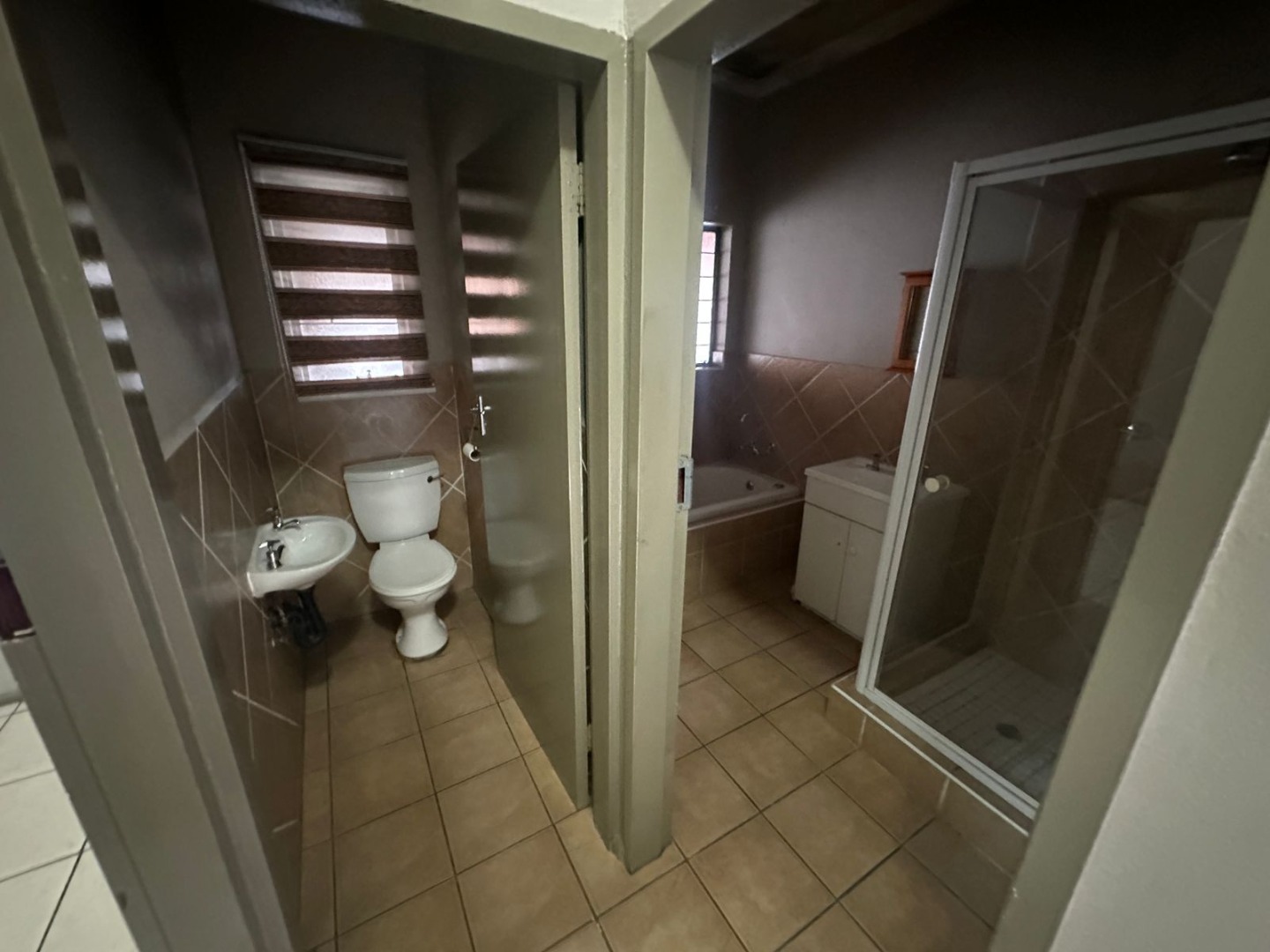 The unit offers two well-sized bedrooms, both fitted with large built-in cupboards, providing ample storage and comfortable accommodation. The bedrooms are neatly tiled and benefit from good natural light, making them practical and easy to maintain.