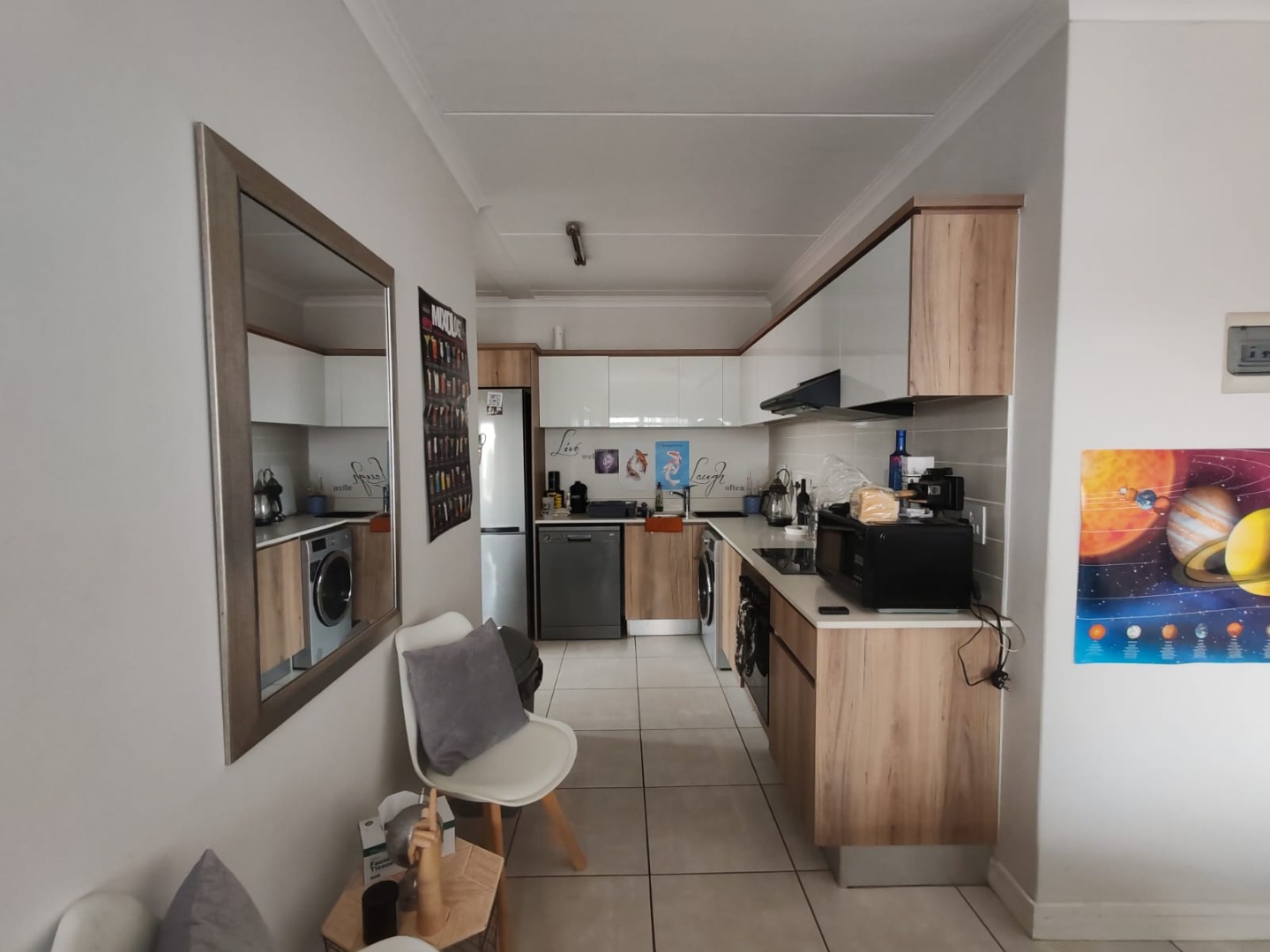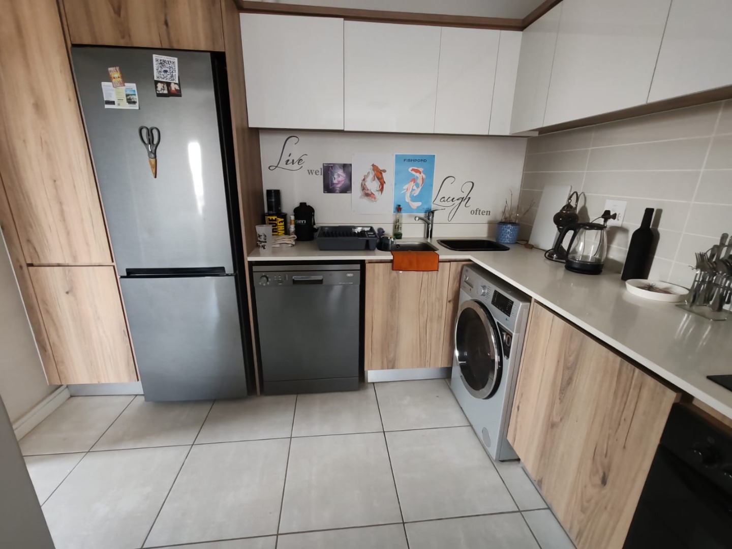 Discover modern living in this furnished 1-bedroom, 1-bathroom apartment, perfectly situated within the secure Blyde Riverwalk Estate in Pretoria. Spanning 48 square metres, this contemporary unit offers an open-plan layout that seamlessly integrates the living area with a sleek kitchen. The kitchen boasts stylish two-tone cabinetry, light countertops, and is fully equipped with integrated appliances including a dishwasher, full-sized refrigerator, and a washing machine, ensuring convenience and functionality. Tiled flooring extends throughout the apartment, providing a clean and low-maintenance finish. The bedroom features a large built-in wardrobe for ample storage and direct access to a private balcony, offering an ideal spot for relaxation. The modern bathroom is appointed with light grey tiled walls and floor, a glass-enclosed shower, and a wall-mounted vanity. This apartment is designed for a lock-up-and-go lifestyle, appealing to professionals or individuals seeking a comfortable and amenity-rich environment. Residents benefit from the estate's exceptional lifestyle offerings, including a resort-like artificial lagoon for aquatic activities, a well-equipped gym, and a swimming pool. The property ensures peace of mind with 24-hour security, an access gate, and electric fencing. Connectivity is enhanced with fibre readiness, and the unit features a solar geyser for energy efficiency. One dedicated parking bay is included. Blyde Riverwalk Estate is renowned for its unique crystal-clear lagoon and resort-style amenities, providing an unparalleled living experience in Pretoria, South Africa. This secure estate offers a vibrant community atmosphere with a focus on leisure and convenience.