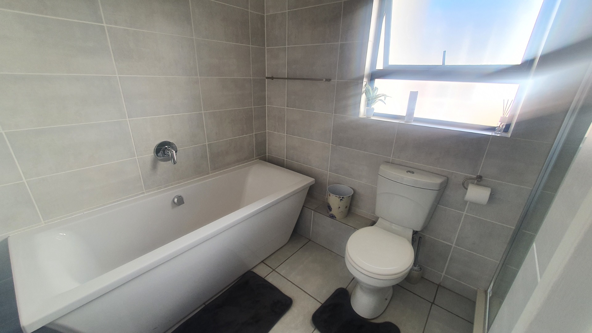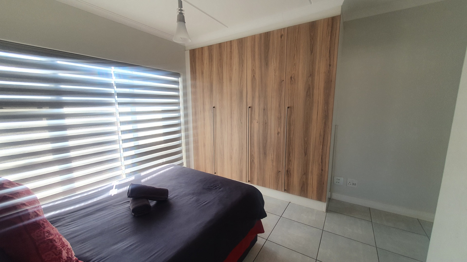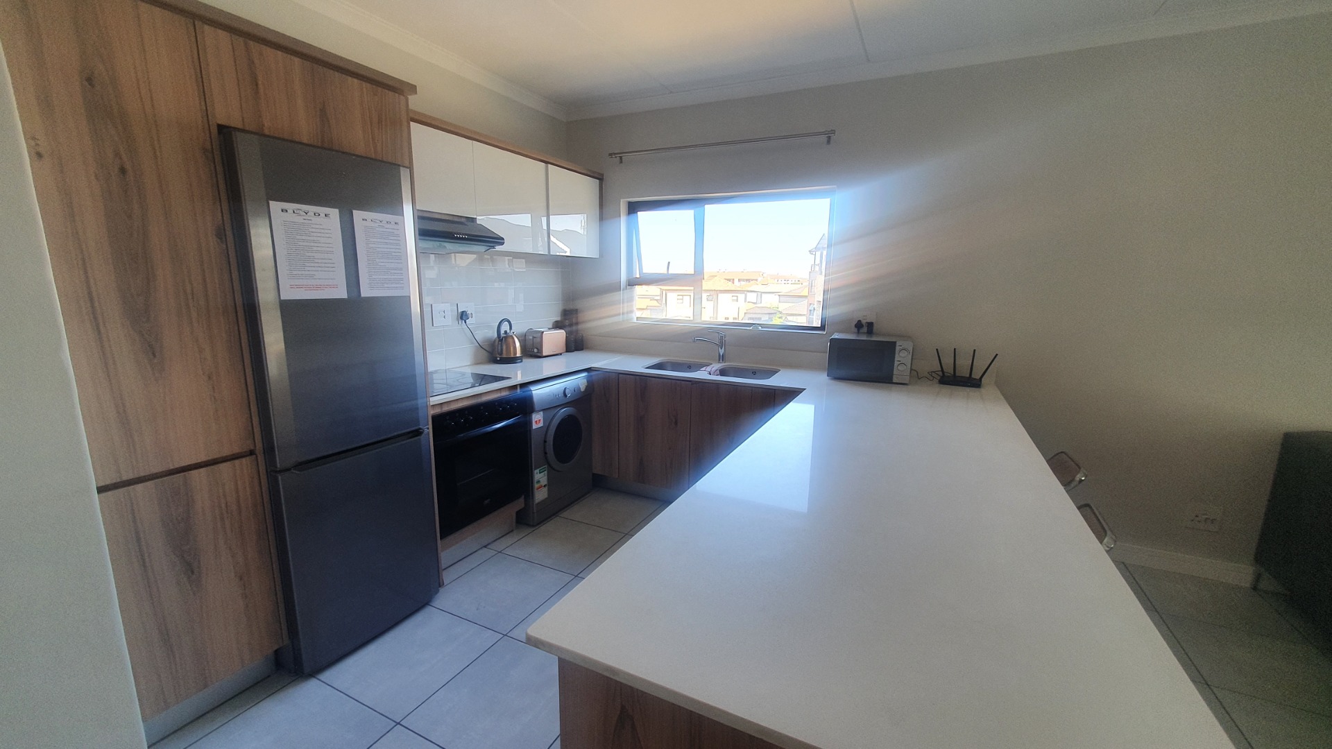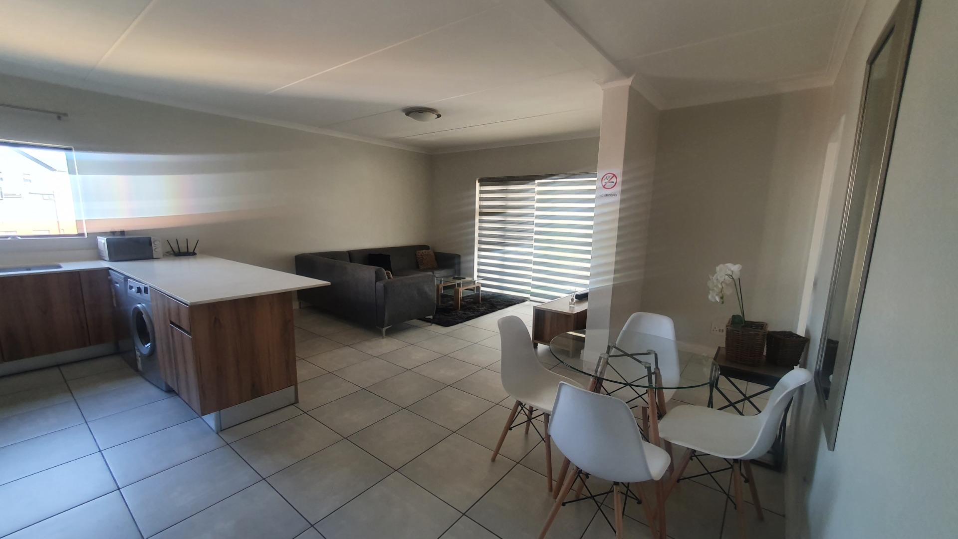 Discover contemporary living in this stylish 102 sqm apartment within a secure complex. The inviting open-plan living area features modern, neutral decor and tiled flooring, bathed in natural light from a large sliding door with elegant blinds, leading to a private balcony. The compact, U-shaped kitchen boasts modern two-tone cabinetry, light countertops, and essential integrated appliances including a washing machine, fridge, and oven. This residence offers two comfortable bedrooms, each with tiled flooring, neutral walls, built-in wooden wardrobes, and modern zebra blinds. The apartment includes two modern bathrooms; one is an en-suite with a glass-enclosed shower, while the second features a clean white bathtub. Ideal for professionals or small families, this apartment offers a secure, amenity-rich lifestyle. Residents benefit from two dedicated parking bays and exclusive access to the estate's impressive man-made lagoon, complete with an inflatable obstacle course and fountain. A well-equipped gym is also available. Security is paramount, with 24-hour security and controlled access gates. The property is fibre-ready for high-speed internet and includes a solar geyser for energy efficiency. Located in the sought-after Blyde Riverwalk Estate in Pretoria, this property offers a vibrant community setting. Key Features: * 2 Bedrooms, 2 Bathrooms (1 en-suite) * Modern Open-Plan Living & Kitchen * Integrated Washing Machine, Fridge, Oven * Private Balcony * Two Dedicated Parking Bays * Access to Man-Made Lagoon & Gym * Fibre-Ready & Solar Geyser * 24-Hour Security Estate