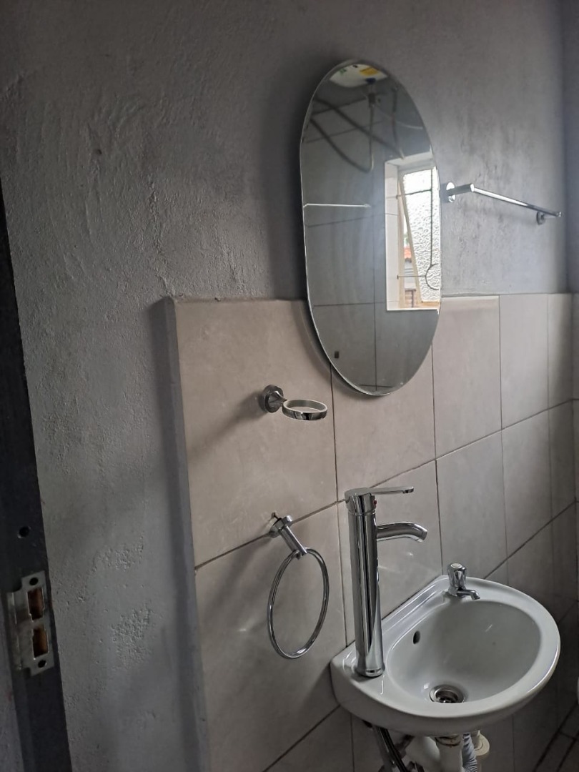 Discover this practical 1-bedroom, 1-bathroom rental unit located in the established suburban area of Booysens, Pretoria. Designed for convenient living, this compact studio-style property offers essential amenities within a well-organised layout, ideal for individuals seeking an affordable and functional space. The unit features a combined living and sleeping area with durable tiled flooring throughout, ensuring easy maintenance. Walls are finished in neutral light grey tones, with some areas recently painted, providing a clean canvas for personal touches. Natural light streams in through windows, all fitted with security bars for enhanced safety and peace of mind. A standalone wardrobe or cabinet is included in some rooms, offering immediate storage solutions. The compact kitchenette is equipped with a single sink, base cabinets, and open wall shelving, catering to basic culinary needs. While counter space is limited, the setup is efficient. The private bathroom includes a modern wall-mounted sink, an oval mirror, a toilet, and a shower area with a curtain. Burglar bars are a confirmed security feature throughout the property. Outside, the property benefits from paved parking, providing a dedicated space for one vehicle. The overall design prioritises functionality and security, making it a suitable option for a single occupant or a couple. Booysens offers a suburban environment within Pretoria, providing access to local amenities and transport routes. Key Features: * 1 Bedroom * 1 Bathroom * 1 Kitchenette * 1 Parking Bay * Tiled Flooring * Natural Light * Burglar Bars * Suburban Location