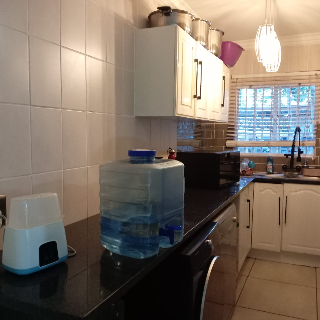 Step outside to enjoy the private patio, an ideal space for outdoor dining or quiet contemplation. The property benefits from robust security measures, including 24-hour security, an access gate, a comprehensive alarm system, burglar bars, and a security gate, ensuring complete peace of mind. Practical features include a double garage and a total of four dedicated parking spaces. Pets are also welcome, making this an ideal home for animal lovers.