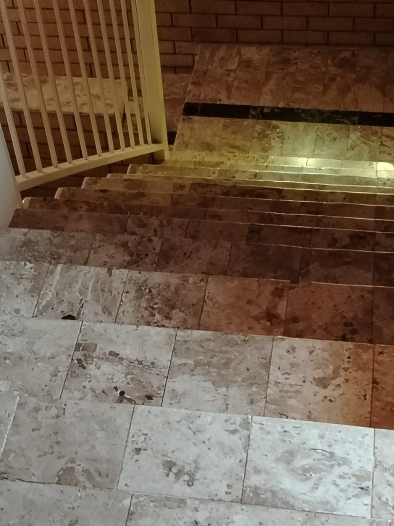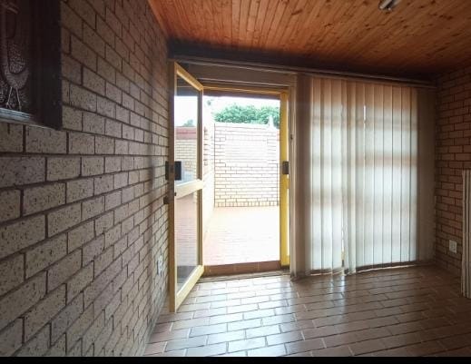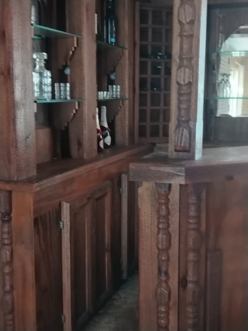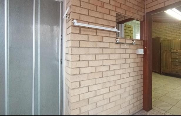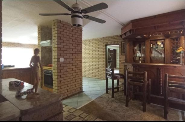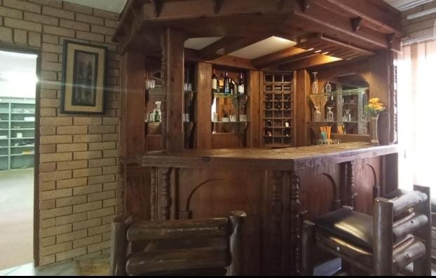 This spacious 5-bedroom rental property offers comfortable living with practical features. The interior boasts durable tiled flooring throughout, complemented by unique exposed brick walls that add character to the living spaces. The layout includes a dedicated lounge, a dining room, and a functional kitchen. A notable feature is the built-in bar area, complete with a wine rack and glass shelving, perfect for entertaining or relaxing after a long day.