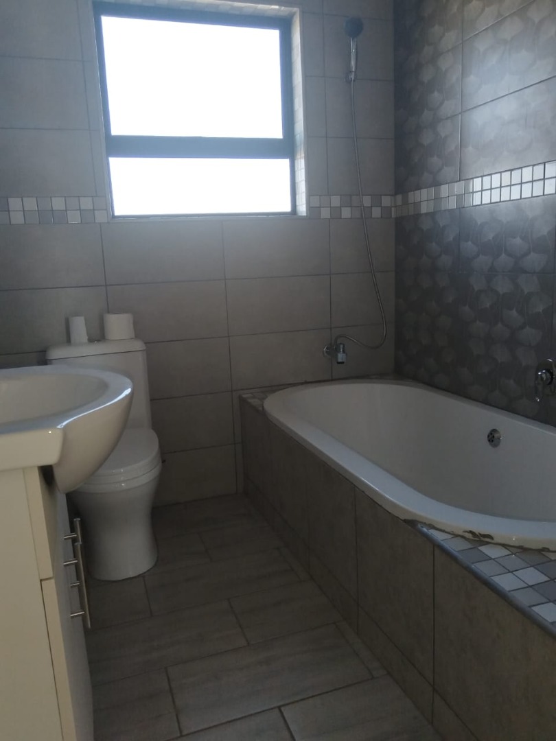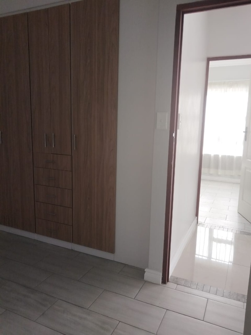 This modern two-story residence in Eersterust, Pretoria, presents a durable brick exterior and a paved driveway leading to a covered entrance. Inside, discover a bright, open-plan living area featuring clean, reflective tiled flooring that extends throughout the home, creating a seamless and low-maintenance environment. The contemporary kitchen is a highlight, boasting elegant two-tone cabinetry in dark grey and white, perfectly complemented by a vibrant red subway tile backsplash. Large glass doors connect the interior to a private patio, complete with a built-in braai for outdoor entertaining, and a stylish balcony offering additional outdoor space. The property comprises two comfortable bedrooms, each fitted with practical built-in cupboards for ample storage, and is serviced by one well-appointed bathroom. Convenience is further enhanced with a dedicated parking space. Offered unfurnished, this home provides a blank canvas for tenants to personalise. Situated in the suburban area of Eersterust, this property offers a balanced and modern lifestyle within the vibrant city of Pretoria, ideal for those seeking comfort and accessibility. Key Features: * Modern Two-Story Design * 2 Bedrooms with Built-in Cupboards * 1 Bathroom * Open-Plan Living Area * Contemporary Kitchen with Two-Tone Cabinetry * Private Patio with Built-in Braai * Private Balcony * 1 Parking Space * Tiled Flooring Throughout * Unfurnished