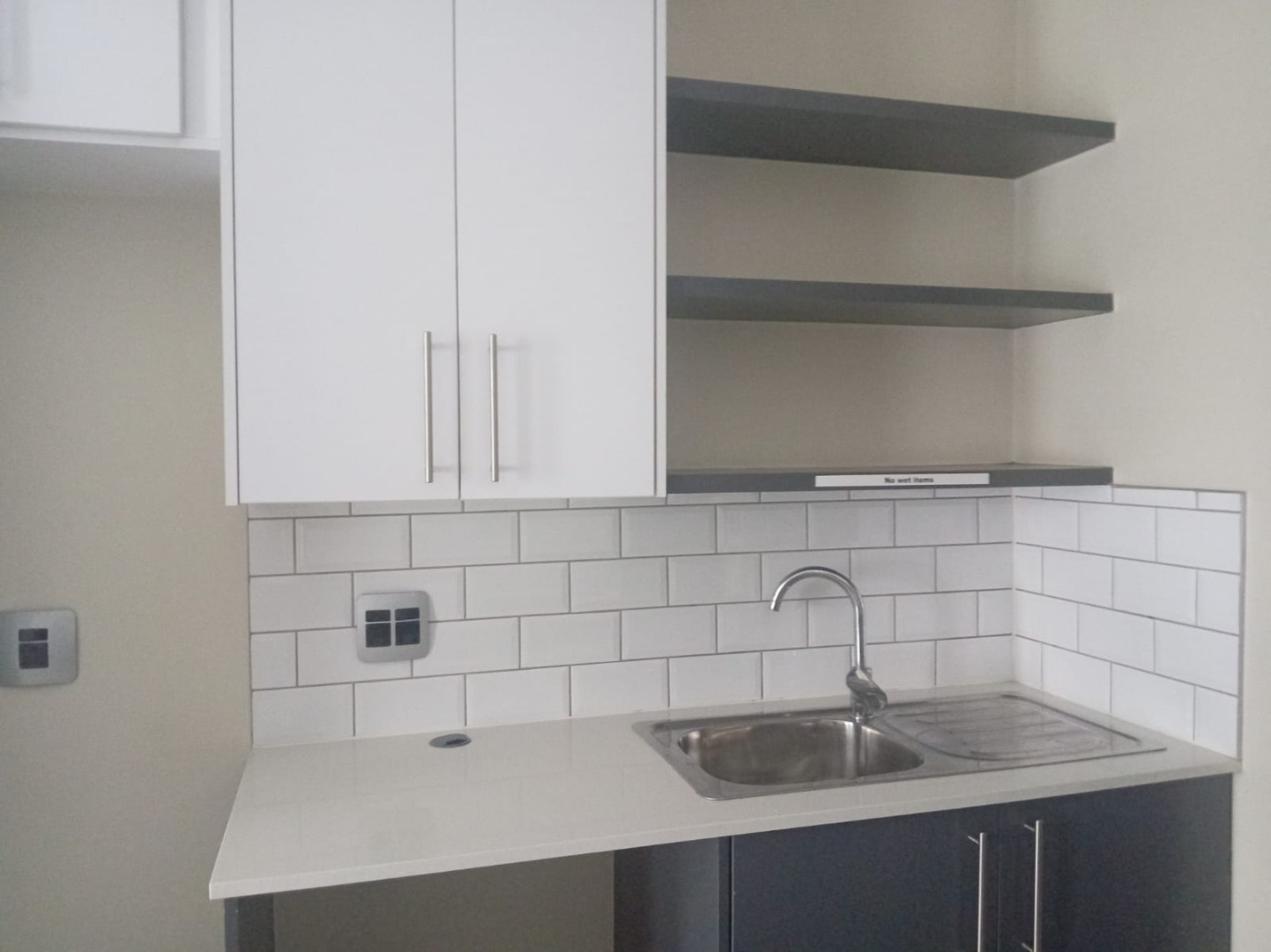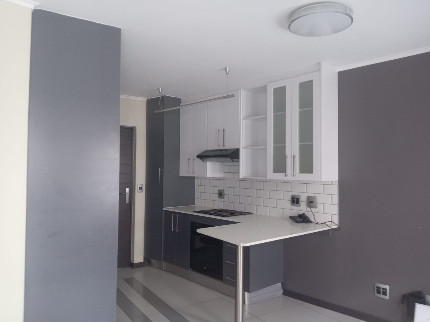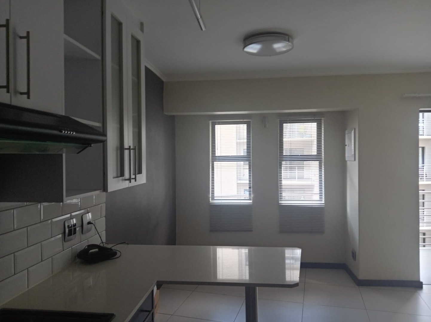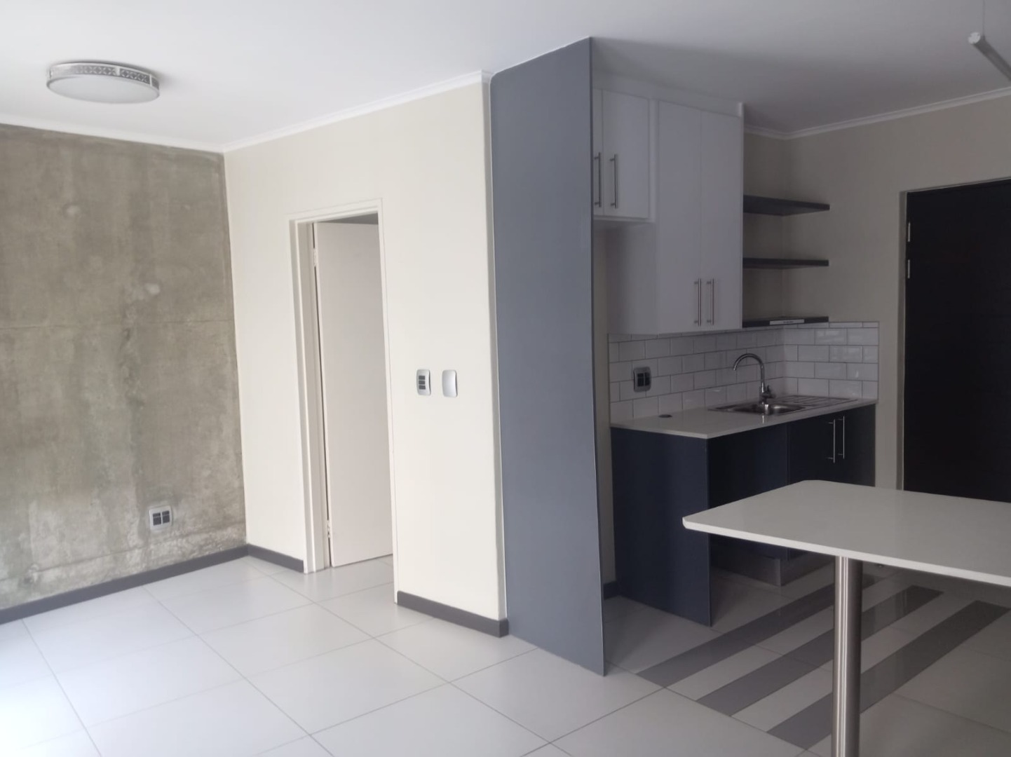 The unit features a stylish open-plan layout with a modern kitchen offering ample cupboard space. The bedroom area opens onto a private balcony, allowing for natural light and fresh air. Enough space for study/lounge area as well. The bathroom is fitted with a shower, toilet, and basin.