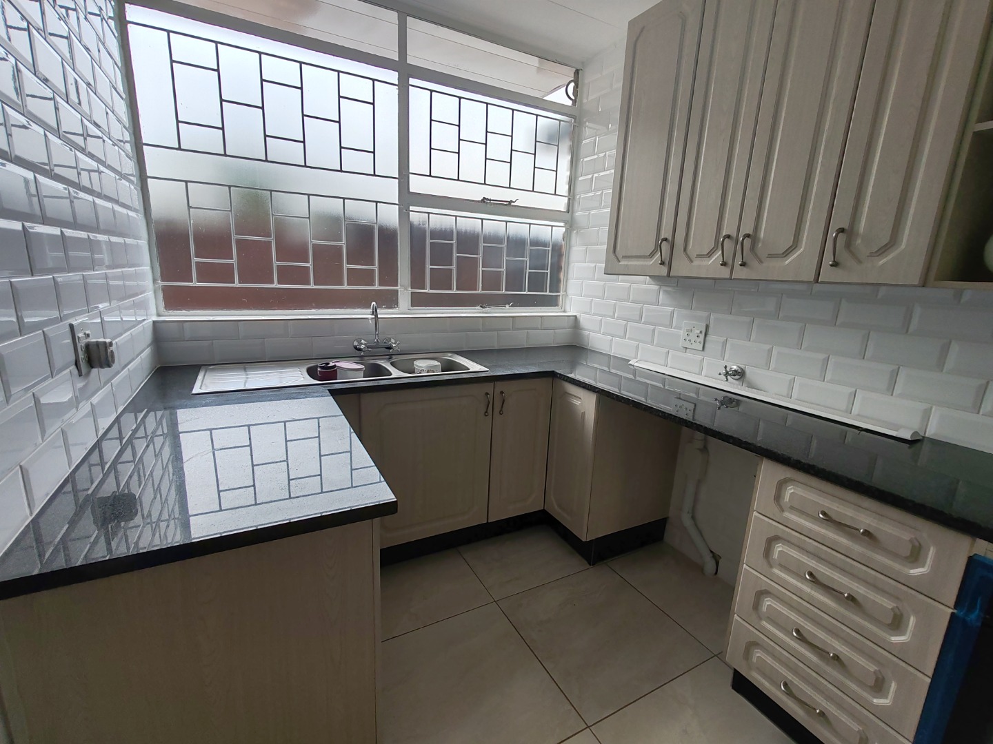 * Durable tiled flooring throughout