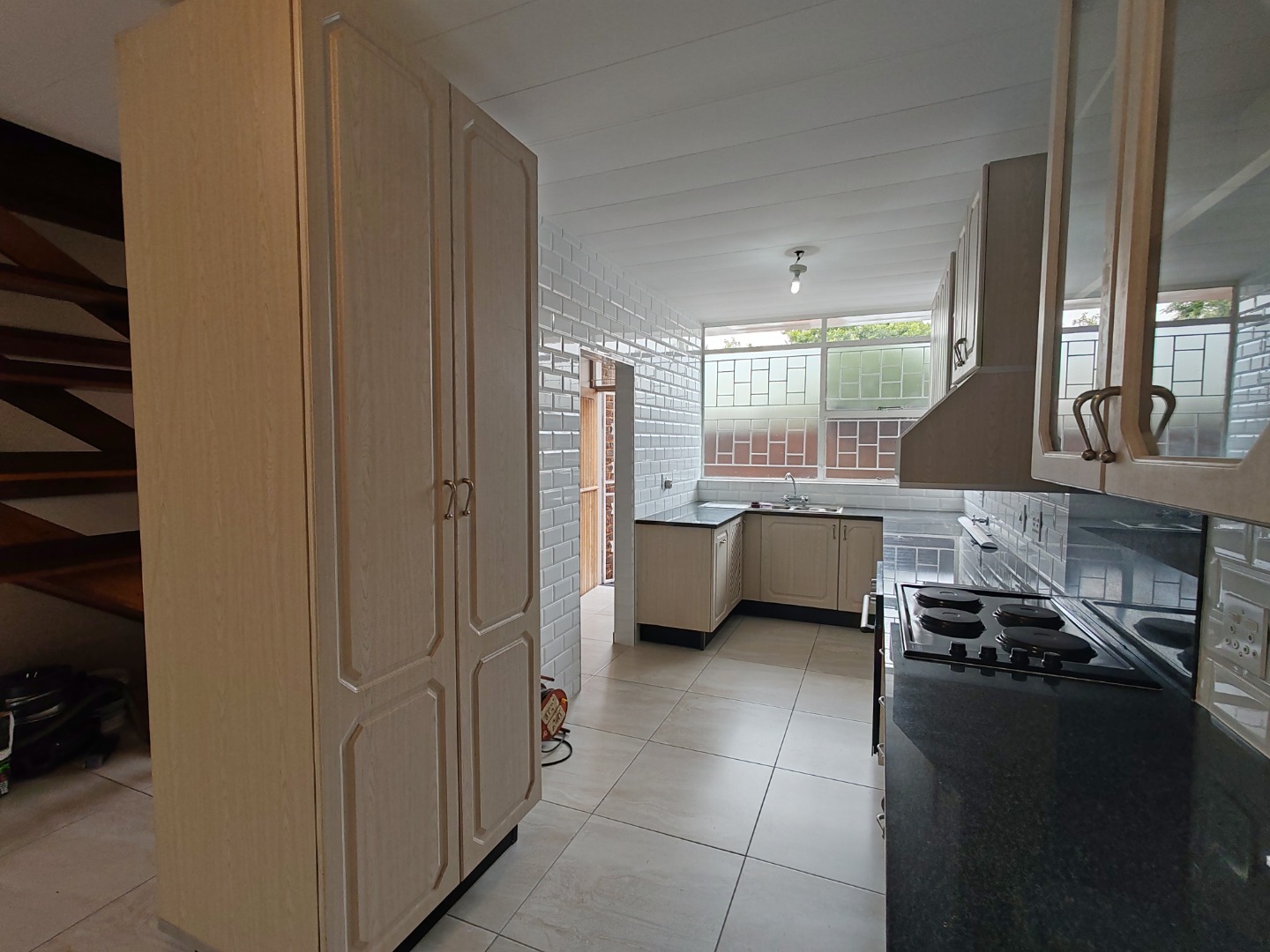 Discover modern living in this inviting 2-bedroom, 2.5-bathroom rental property situated within a secure estate in Lynnwood Ridge, Pretoria. This residence offers a contemporary open-plan layout, seamlessly connecting the living area with a stylish kitchen. The kitchen is a highlight, featuring modern tiled flooring, light-coloured cabinetry, dark granite countertops, and a crisp white subway tile backsplash. It comes equipped with an integrated oven, hob, providing both functionality and aesthetic appeal. Abundant natural light fills the living spaces, complemented by neutral-toned walls and durable tiled flooring throughout.