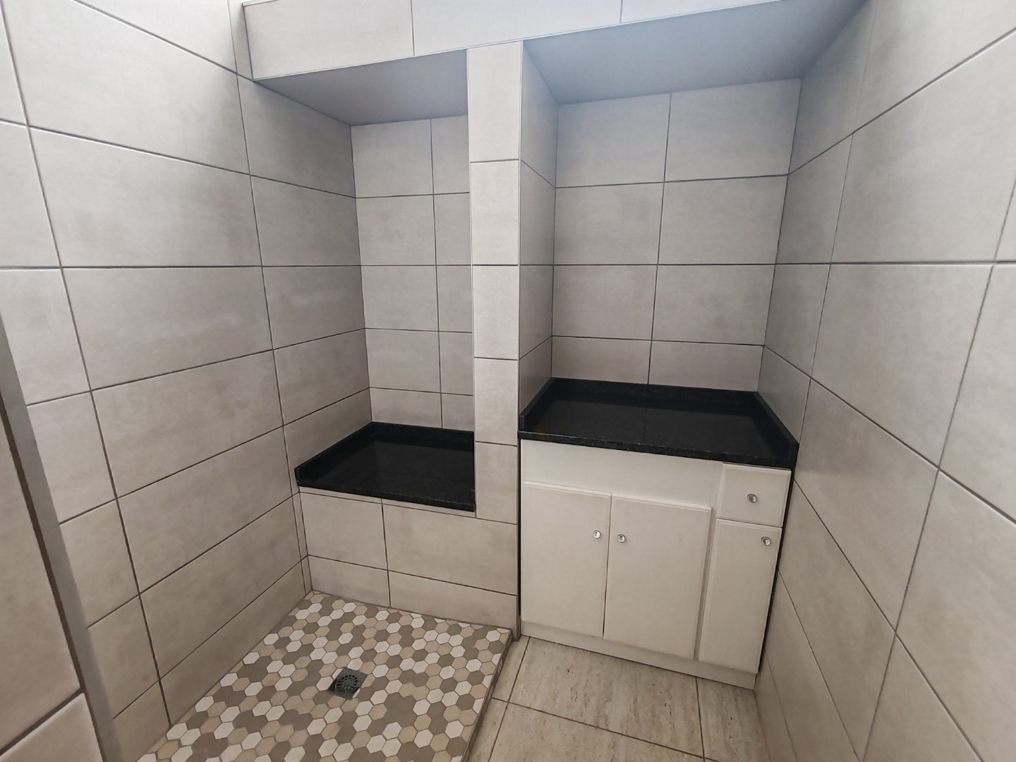 * Durable tiled flooring throughout