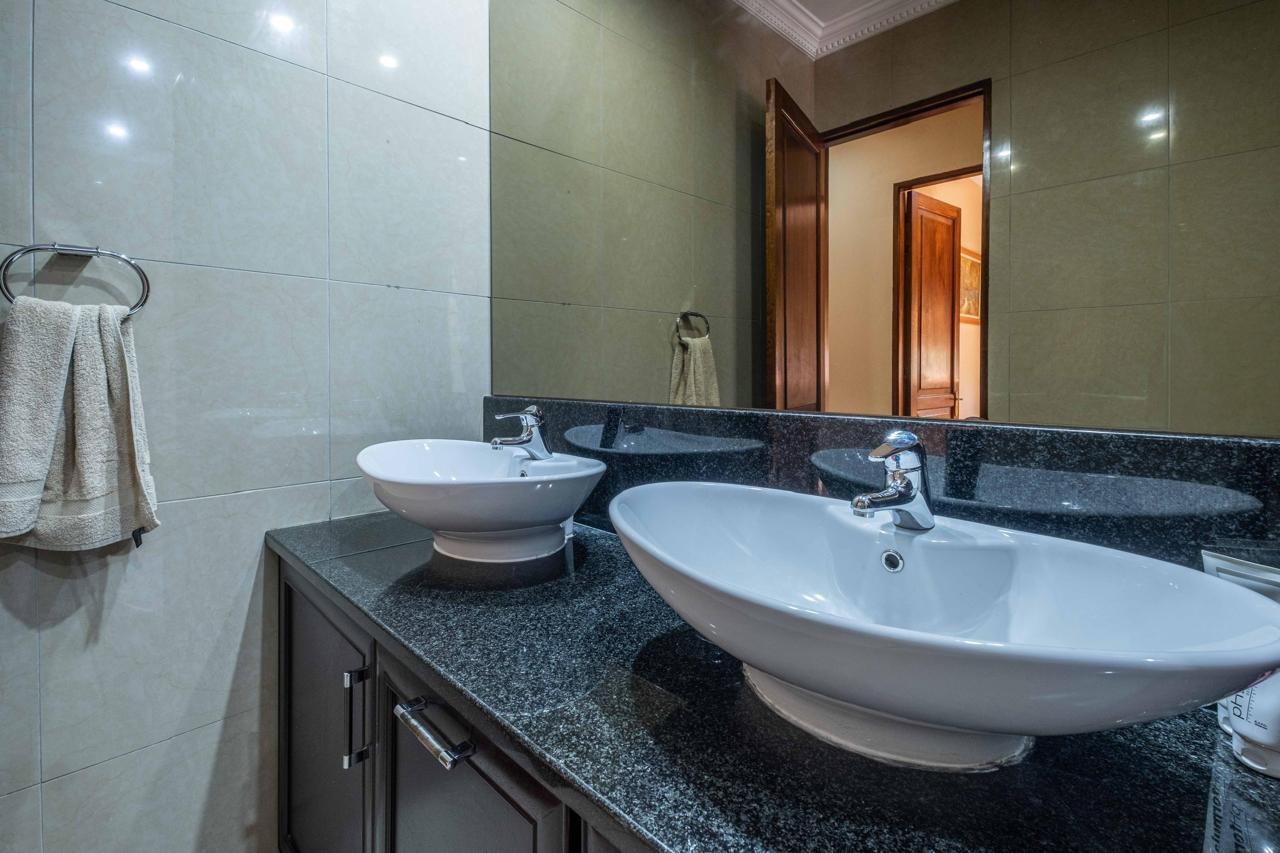 4 Bedrooms with the option of using the study as a 5th bedroom. For a main bedroom, you can choose between the downstairs bedroom with en-suite bathroom (if you want to be closer to the kids) or use the large upstairs bedroom with walk in closet, en-suite bathroom and balcony with adjacent study as a main bedroom suite!