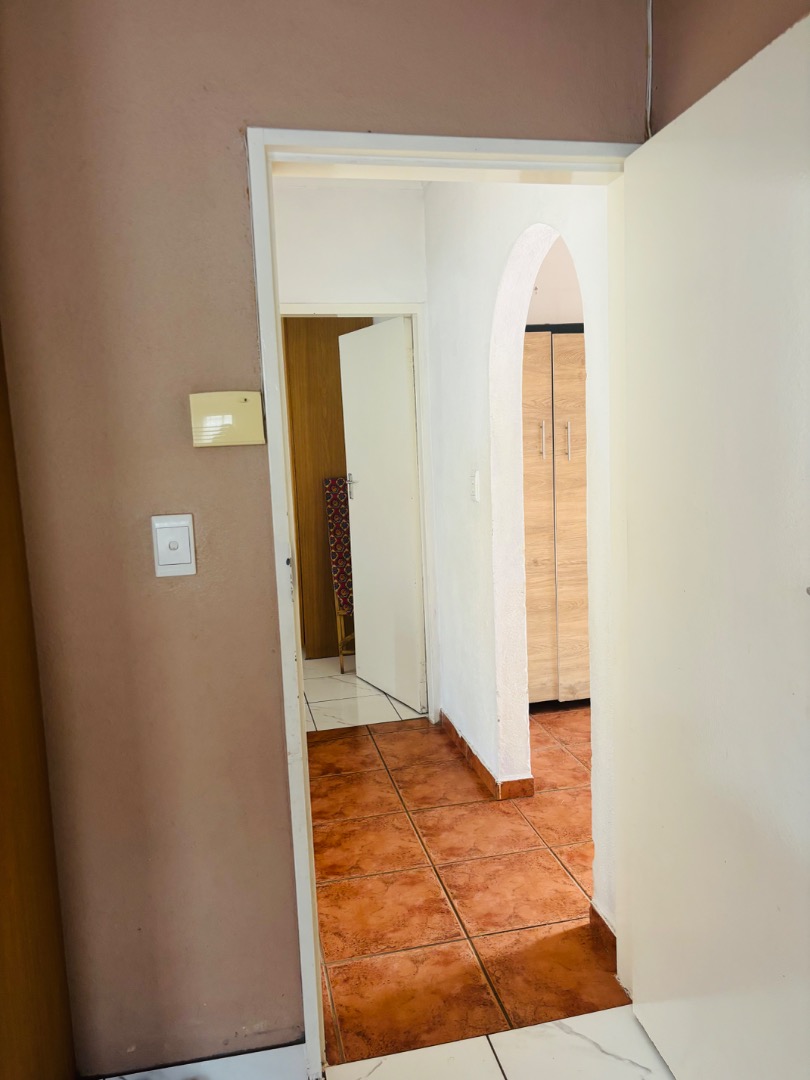 Discover this inviting 2-bedroom, 1-bathroom rental property located in the established suburban area of Mayville, Pretoria. The home features practical tiled flooring throughout, ensuring easy maintenance and a clean aesthetic. An arched doorway adds a touch of character to the interior flow, connecting various living spaces. The functional kitchen is equipped with wood-look cabinetry, tiled floors and backsplash, an integrated oven and hob, and an extractor fan, providing essential amenities for daily living. Natural light streams in through windows, enhancing the bright and airy feel of the rooms. Step outside to a property designed for comfortable outdoor enjoyment. A highlight is the charming thatched lapa, perfect for entertaining guests or enjoying quiet moments outdoors. The exterior boasts neat brick accents and a tiled roof, contributing to its kerb appeal. A paved patio area offers additional space for relaxation, while a stepping stone path leads to the entrance. The property includes a single garage and an additional parking space, providing convenient and secure accommodation for vehicles. Security is a key consideration, with burglar bars on windows and a security gate providing peace of mind. While the yard currently presents an opportunity for landscaping, it offers ample space for future development into a lush garden. This property offers a practical and secure living environment for individuals or small families seeking a well-located rental home. This property is situated in a well-regarded suburban neighbourhood in Pretoria, known for its accessibility and community atmosphere. Residents benefit from proximity to local amenities, schools, and transport routes, making it a convenient choice for those working or studying in the city. Key Features: * 2 Bedrooms, 1 Bathroom * 1 Garage, 1 Parking * Functional Kitchen with Integrated Oven & Hob * Thatched Lapa for Entertainment * Tiled Flooring Throughout * Security Features: Burglar Bars & Security Gate * Paved Patio Area * Suburban Location
